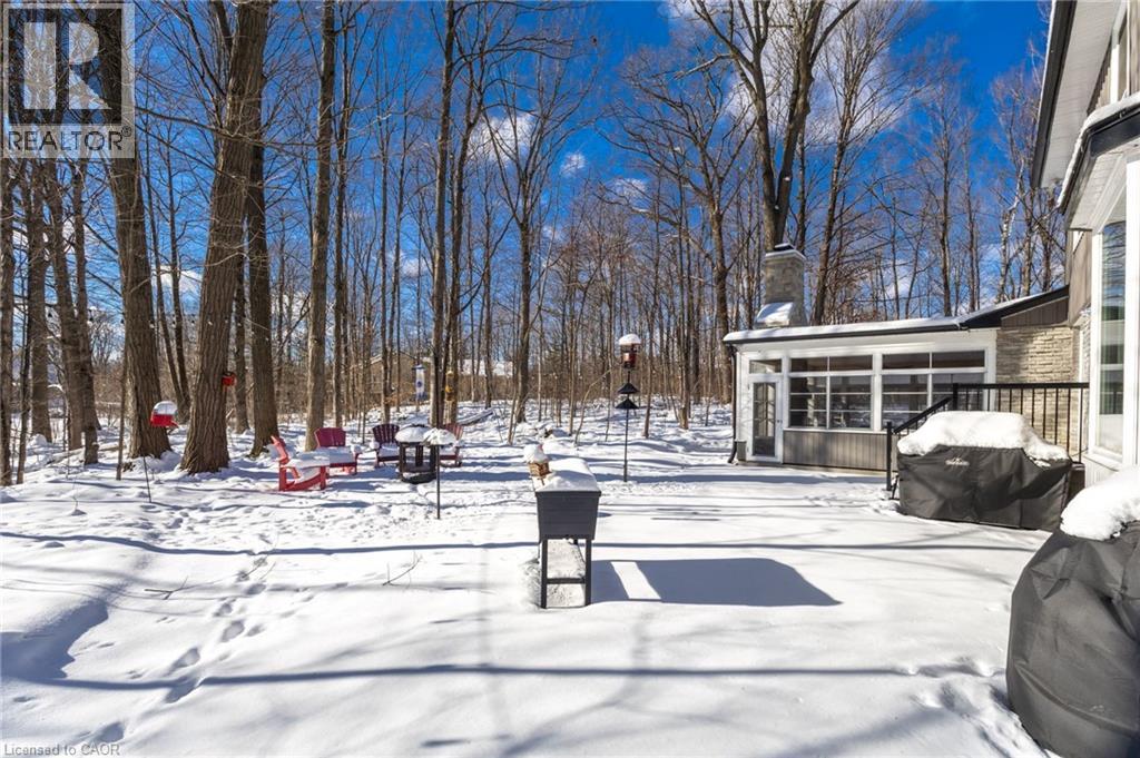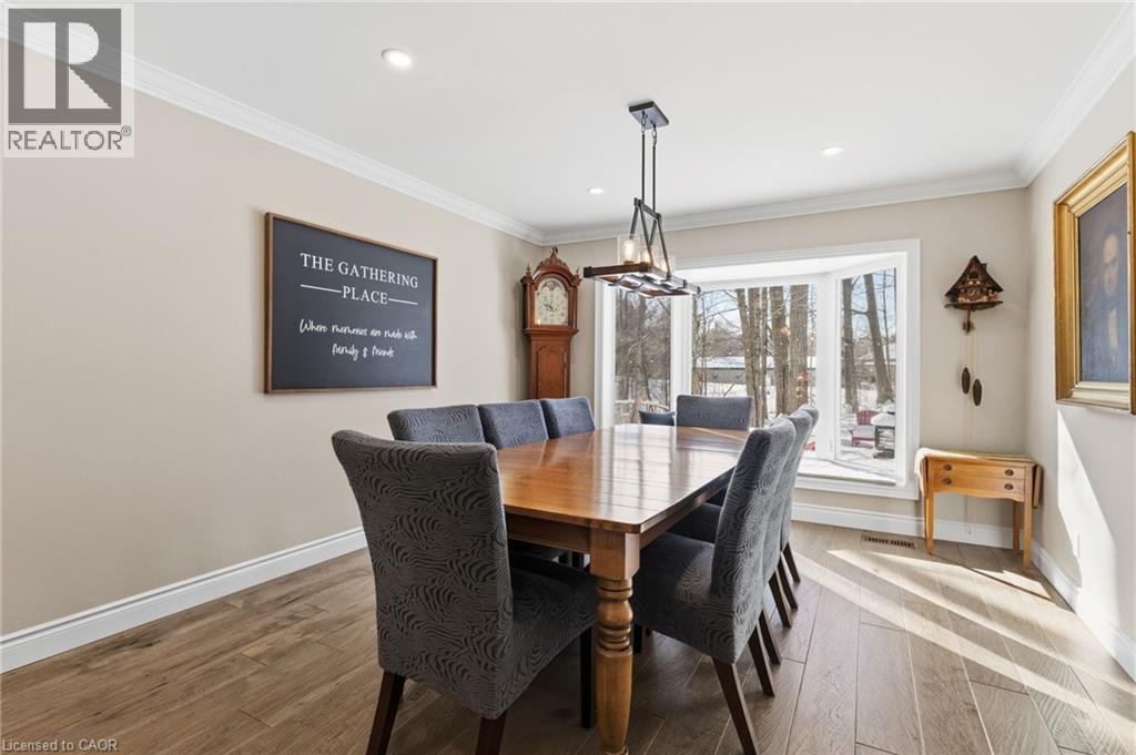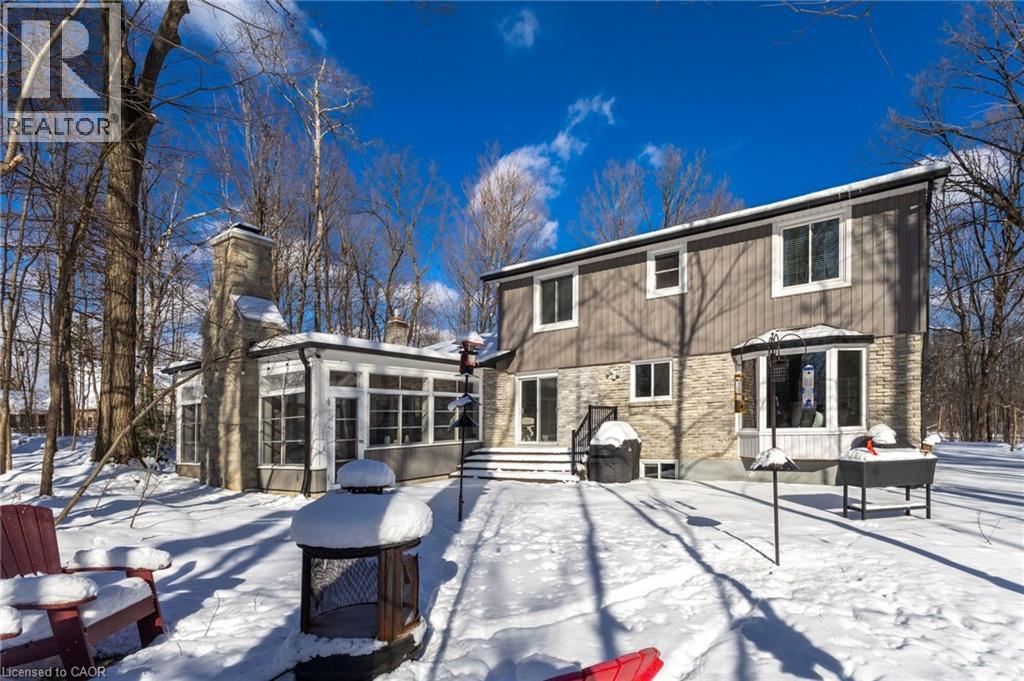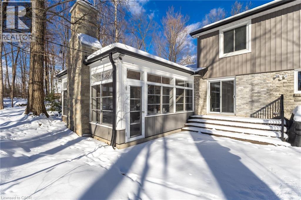 A hidden Gem - Two-storey home in the Best Location on this Sought-After street in North Burlington. Set back via the long private driveway on 0.95 of an acre in a very Quiet and Tranquil environment. Welcome to this beautiful 4-Bedroom; 3 Bathroom Family home in the Desirable Kilbride neighbourhood of Burlington. Enjoy the comfortable living space in this central hall plan. The spacious & bright foyer leads to: the open concept living/dining room with large windows, hardwood flooring, pot lighting & crown moulding; the large, updated eat-in Kitchen with quality cabinetry, granite countertops & stainless-steel appliances. Relax & watch your favourite shows in the main-level family room offering a gas fireplace. A highlight & Unique Feature in this home is the 3-season sunroom addition, overlooking the garden paradise. Main level Laundry & convenient mudroom area is adjacent to the large double-car garage. Escape through the slider door walk-out onto the Trex composite deck which leads to the private garden oasis, beautifully landscaped, where you can entertain beside the firepit and enjoy that feeling of being at the cottage! Unwind in the Privacy of your large primary bedroom retreat with two (2) double closets & a 3-piece renovated ensuite with glass-enclosed spa-like shower. On this level you also find three (3) additional large bedrooms and a renovated family bathroom. Nicely finished lower-level recreation room with high-quality laminate flooring & large windows for great natural lighting. Cool Room for additional Pantry items. Lots of storage here and throughout the home, including a cold storage area for additional pantry items. This is Truly a Move-In Ready Home with over $450,000. Invested in renovations & upgrades; a list of which are found in the attached Feature Brochure. Only a few minutes drive to city amenities & public transit and commuter routes. No disappointments here…book your viewing today! (id:51158)