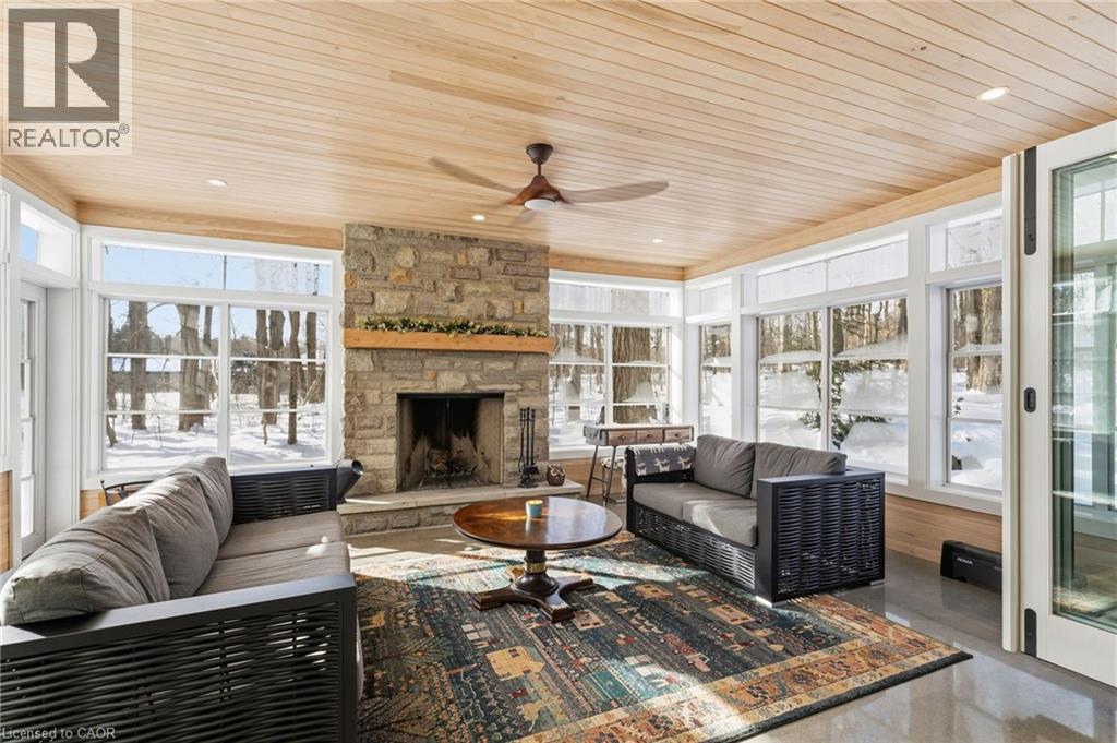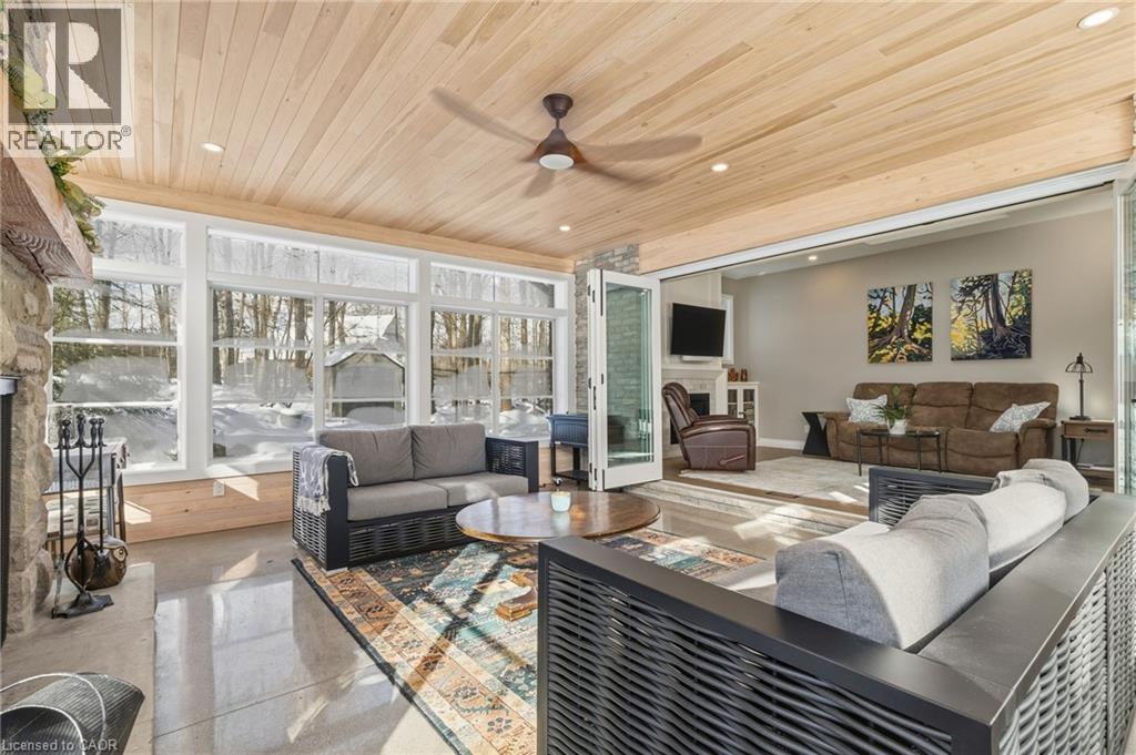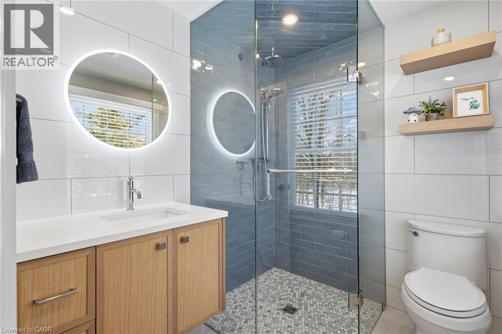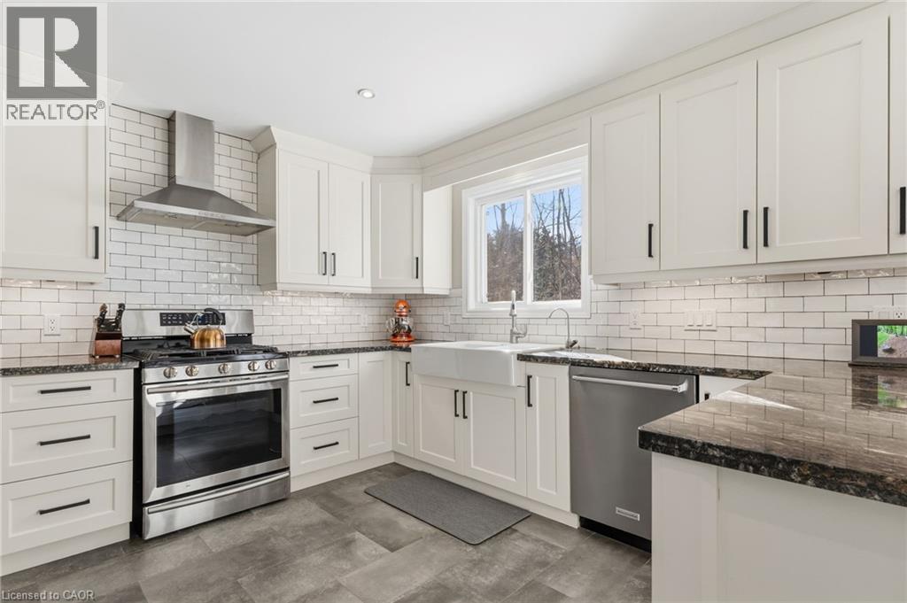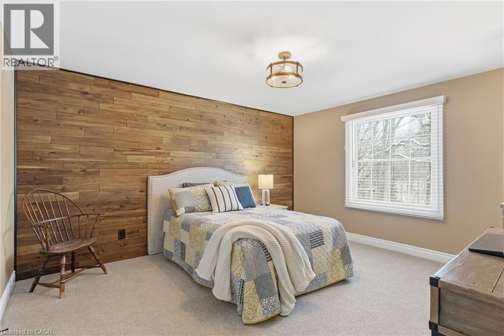 A hidden Gem - Two-storey home in the Best Location on this Sought-After street in North Burlington. Set back via the long private driveway on 0.95 of an acre in a very Quiet and Tranquil environment. Welcome to this beautiful 4-Bedroom; 3 Bathroom Family home in the Desirable Kilbride neighbourhood of Burlington. Enjoy the comfortable living space in this central hall plan. The spacious & bright foyer leads to: the open concept living/dining room with large windows, hardwood flooring, pot lighting & crown moulding; the large, updated eat-in Kitchen with quality cabinetry, granite countertops & stainless-steel appliances. Relax & watch your favourite shows in the main-level family room offering a gas fireplace. A highlight & Unique Feature in this home is the 3-season sunroom addition, overlooking the garden paradise. Main level Laundry & convenient mudroom area is adjacent to the large double-car garage. Escape through the slider door walk-out onto the Trex composite deck which leads to the private garden oasis, beautifully landscaped, where you can entertain beside the firepit and enjoy that feeling of being at the cottage! Unwind in the Privacy of your large primary bedroom retreat with two (2) double closets & a 3-piece renovated ensuite with glass-enclosed spa-like shower. On this level you also find three (3) additional large bedrooms and a renovated family bathroom. Nicely finished lower-level recreation room with high-quality laminate flooring & large windows for great natural lighting. Cool Room for additional Pantry items. Lots of storage here and throughout the home, including a cold storage area for additional pantry items. This is Truly a Move-In Ready Home with over $450,000. Invested in renovations & upgrades; a list of which are found in the attached Feature Brochure. Only a few minutes drive to city amenities & public transit and commuter routes. No disappointments here…book your viewing today! (id:51158)