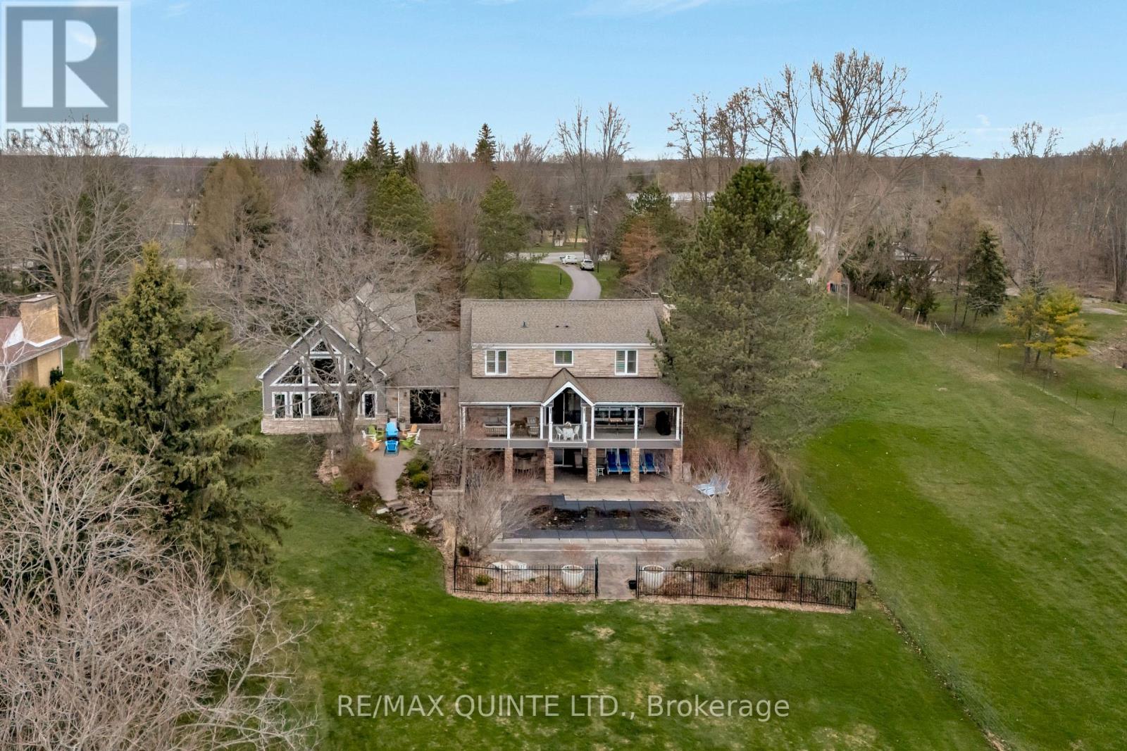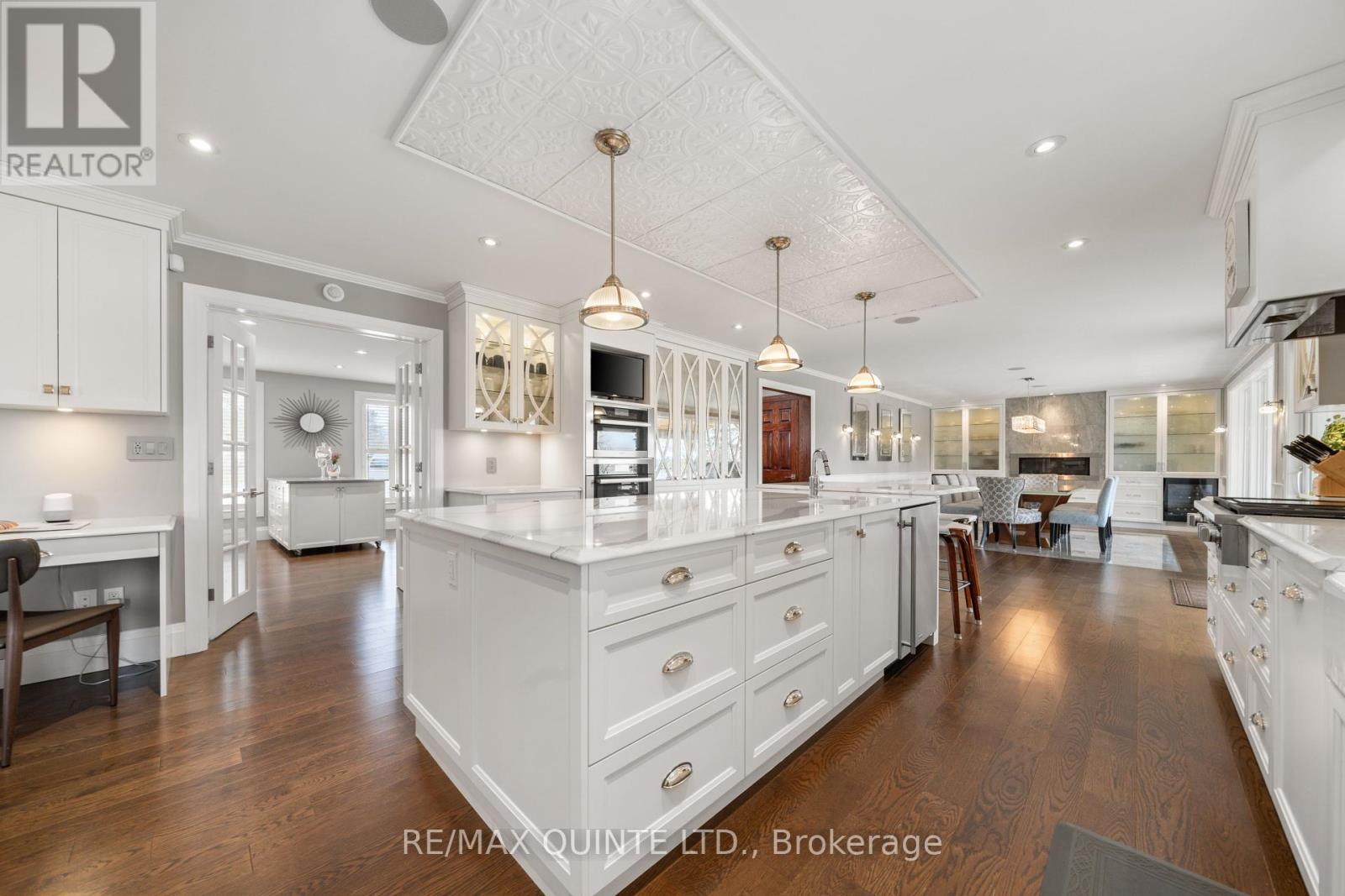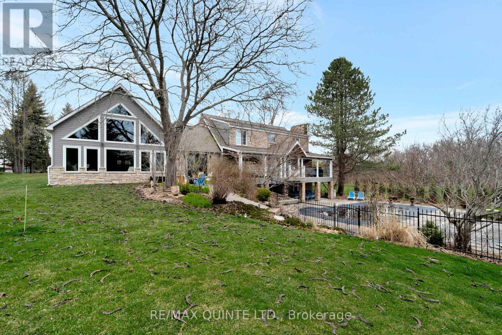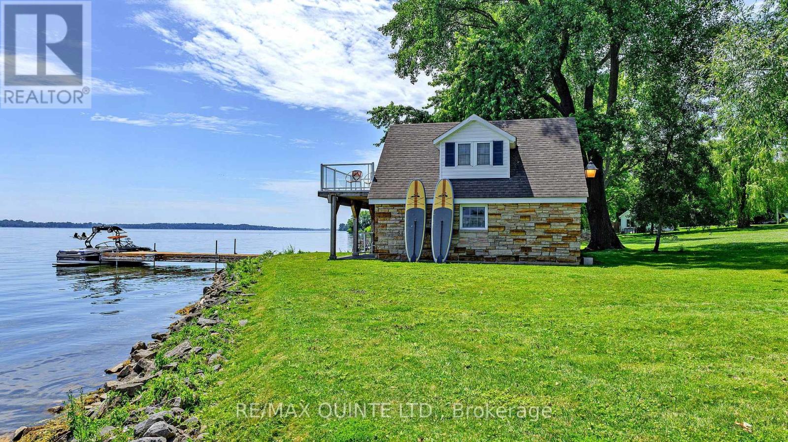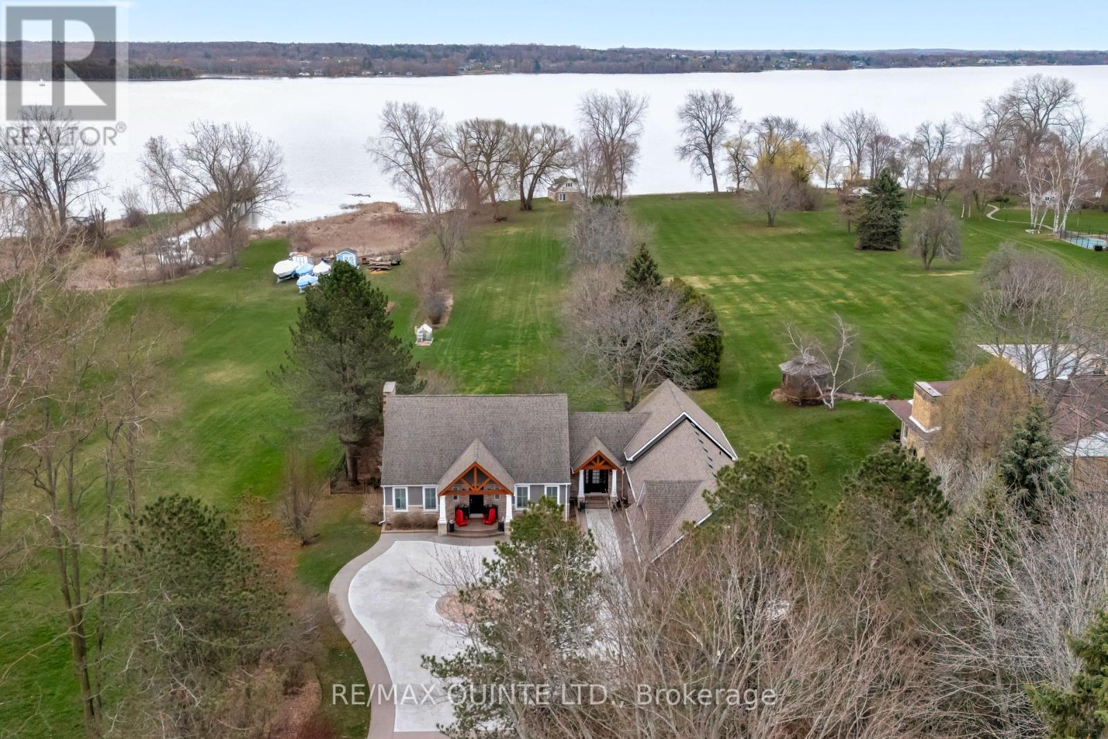 Welcome to your dream waterfront oasis on the beautiful Bay of Quinte. Combining timeless craftsmanship with modern luxury, this impeccably renovated and expanded home offers a quiet luxurious lifestyle in a prime central location. Completed in 2017, every detail of this exquisite property has been thoughtfully re-designed for comfort, function, and elegance. From the moment you arrive, you'll notice the impeccable curb appeal, featuring a new asphalt driveway complemented by custom concrete detailing and an impressive compass inlay. The exterior showcases original brickwork, meticulously removed and reinstalled to preserve the homes character, enhanced by new windows, doors, gutters, and downspouts. Heated floors warm all four washrooms on the main and upper levels, while quartz countertops elevate the kitchen, washrooms, and laundry room. The heart of the home, the kitchen, is a showstopper with modern quartz surfaces, stylish cabinetry, and premium appliances. Relax by any of the three gas fireplaces, including a stunning soapstone feature in the bar area, perfect for entertaining guests year-round. The oversized three-car garage, complete with a convenient drive-through bay, offers ample space for vehicles and storage. Above the garage, a fully insulated and drywalled loft provides endless possibilities. Step outside to your personal resort-like backyard, where a saltwater concrete pool with a natural gas heater awaits. At the waterfront, a 35ft dock and a lift dock system offers direct access to the Bay, ideal for boating and swimming with a bonus bunkie with a spacious living room and 2nd storey bunk room on the waters edge. This rare waterfront estate offers the perfect blend of luxury, privacy, and convenience close to all amenities, yet feeling like a true retreat. Whether you're enjoying a sunset swim, entertaining by the pool, or simply soaking in the peaceful bay views, this property provides an unmatched living experience. (id:51158)