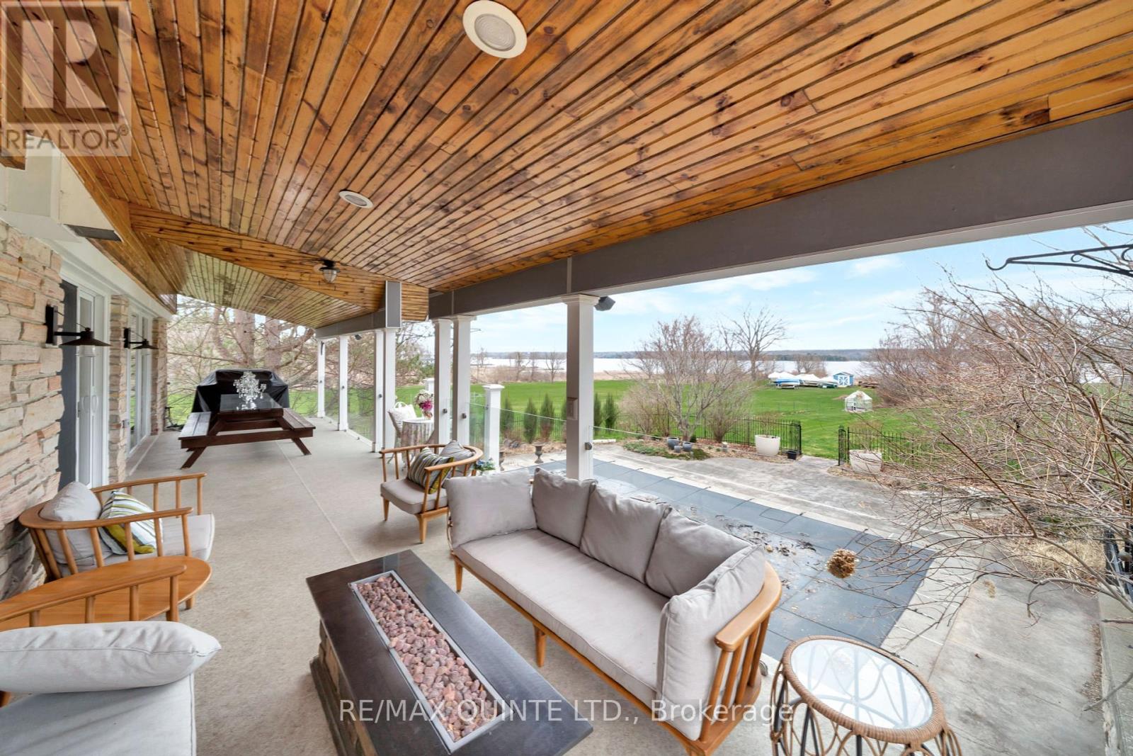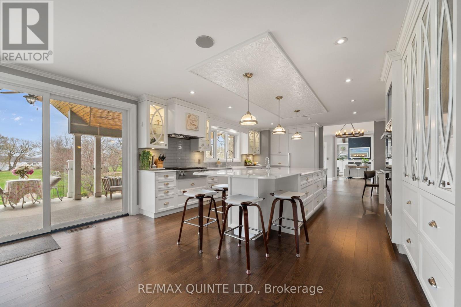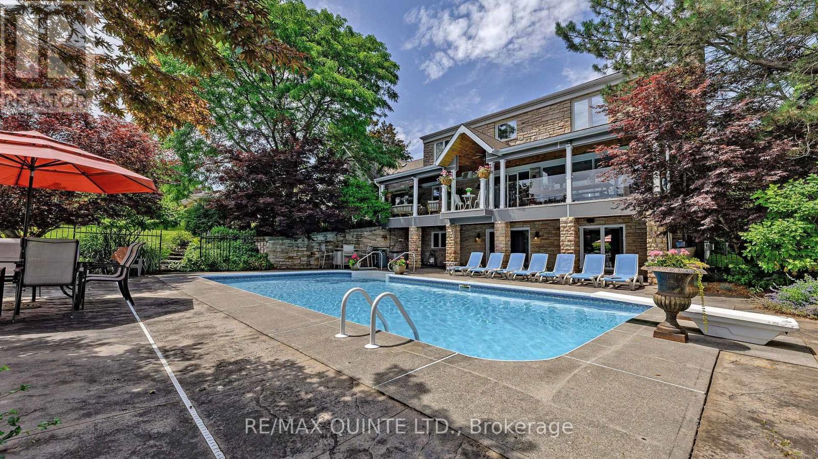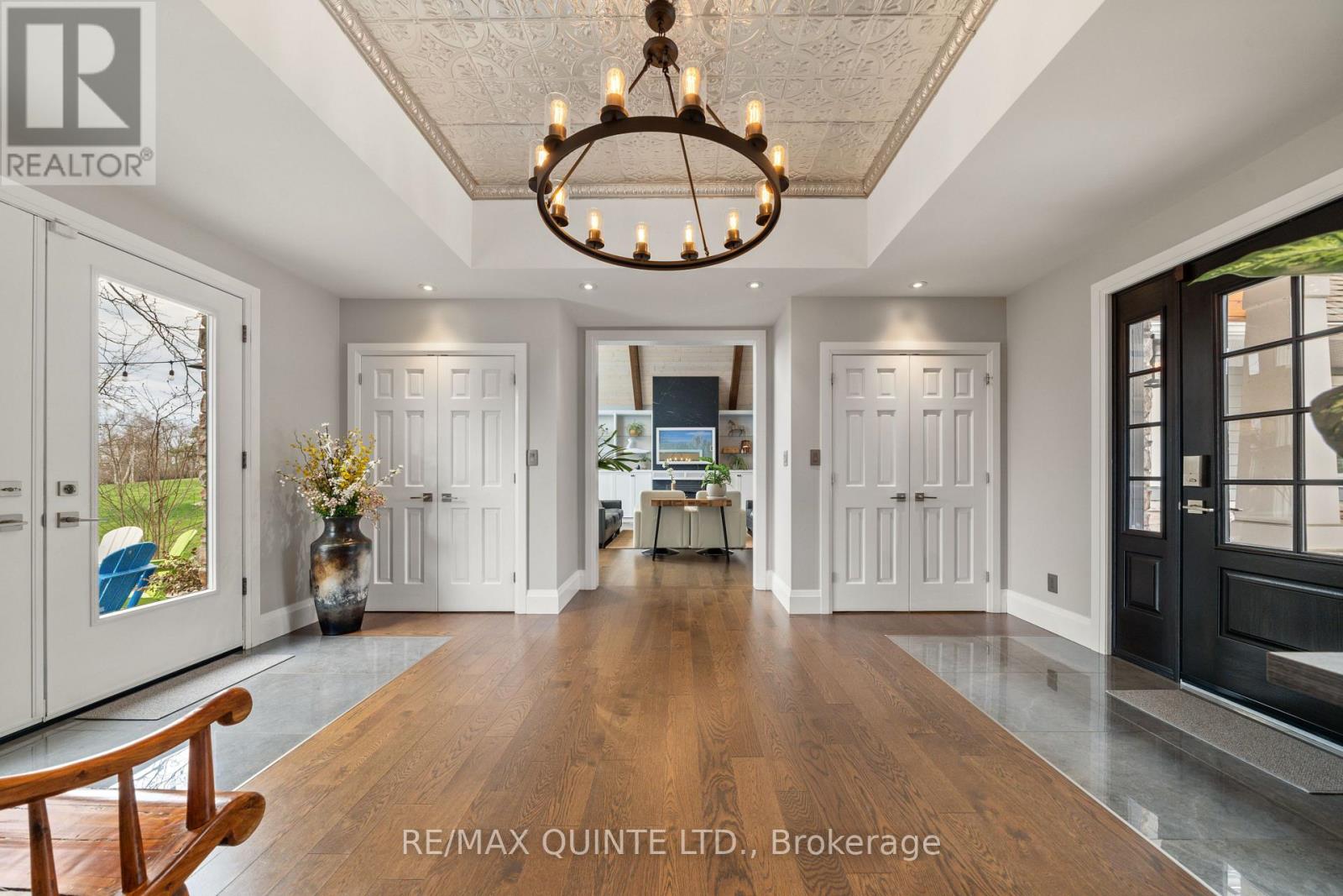 Welcome to your dream waterfront oasis on the beautiful Bay of Quinte. Combining timeless craftsmanship with modern luxury, this impeccably renovated and expanded home offers a quiet luxurious lifestyle in a prime central location. Completed in 2017, every detail of this exquisite property has been thoughtfully re-designed for comfort, function, and elegance. From the moment you arrive, you'll notice the impeccable curb appeal, featuring a new asphalt driveway complemented by custom concrete detailing and an impressive compass inlay. The exterior showcases original brickwork, meticulously removed and reinstalled to preserve the homes character, enhanced by new windows, doors, gutters, and downspouts. Heated floors warm all four washrooms on the main and upper levels, while quartz countertops elevate the kitchen, washrooms, and laundry room. The heart of the home, the kitchen, is a showstopper with modern quartz surfaces, stylish cabinetry, and premium appliances. Relax by any of the three gas fireplaces, including a stunning soapstone feature in the bar area, perfect for entertaining guests year-round. The oversized three-car garage, complete with a convenient drive-through bay, offers ample space for vehicles and storage. Above the garage, a fully insulated and drywalled loft provides endless possibilities. Step outside to your personal resort-like backyard, where a saltwater concrete pool with a natural gas heater awaits. At the waterfront, a 35ft dock and a lift dock system offers direct access to the Bay, ideal for boating and swimming with a bonus bunkie with a spacious living room and 2nd storey bunk room on the waters edge. This rare waterfront estate offers the perfect blend of luxury, privacy, and convenience close to all amenities, yet feeling like a true retreat. Whether you're enjoying a sunset swim, entertaining by the pool, or simply soaking in the peaceful bay views, this property provides an unmatched living experience. (id:51158)