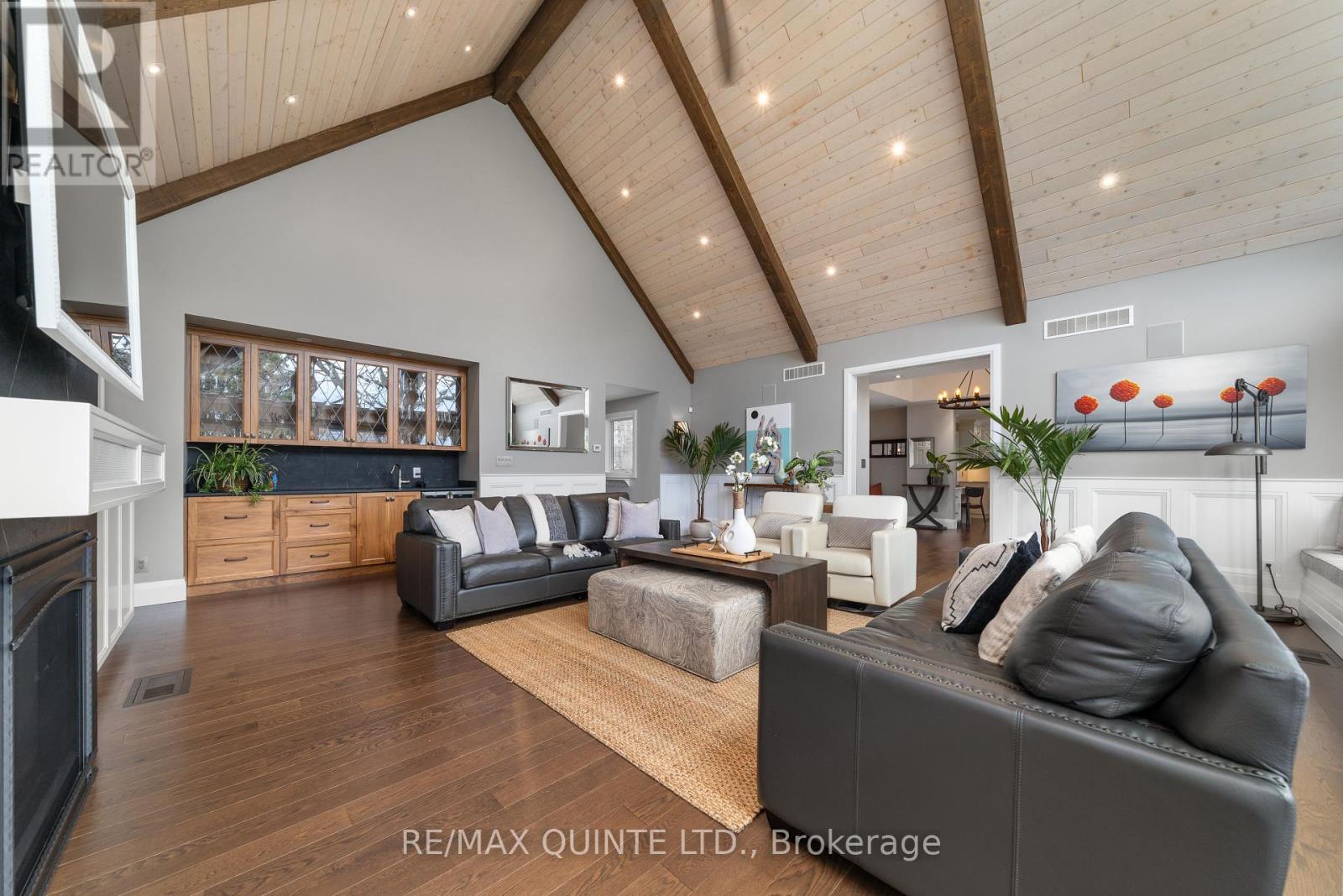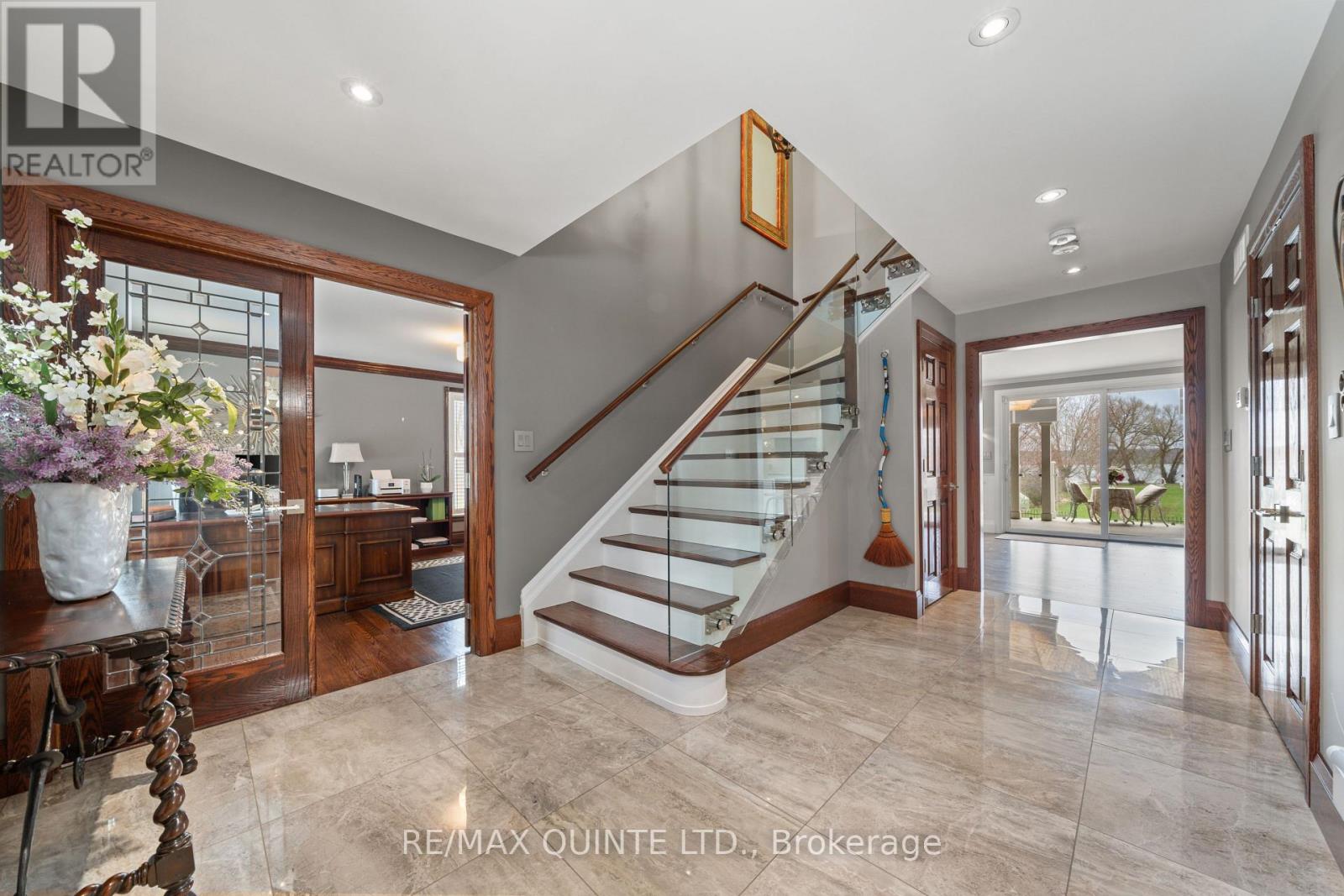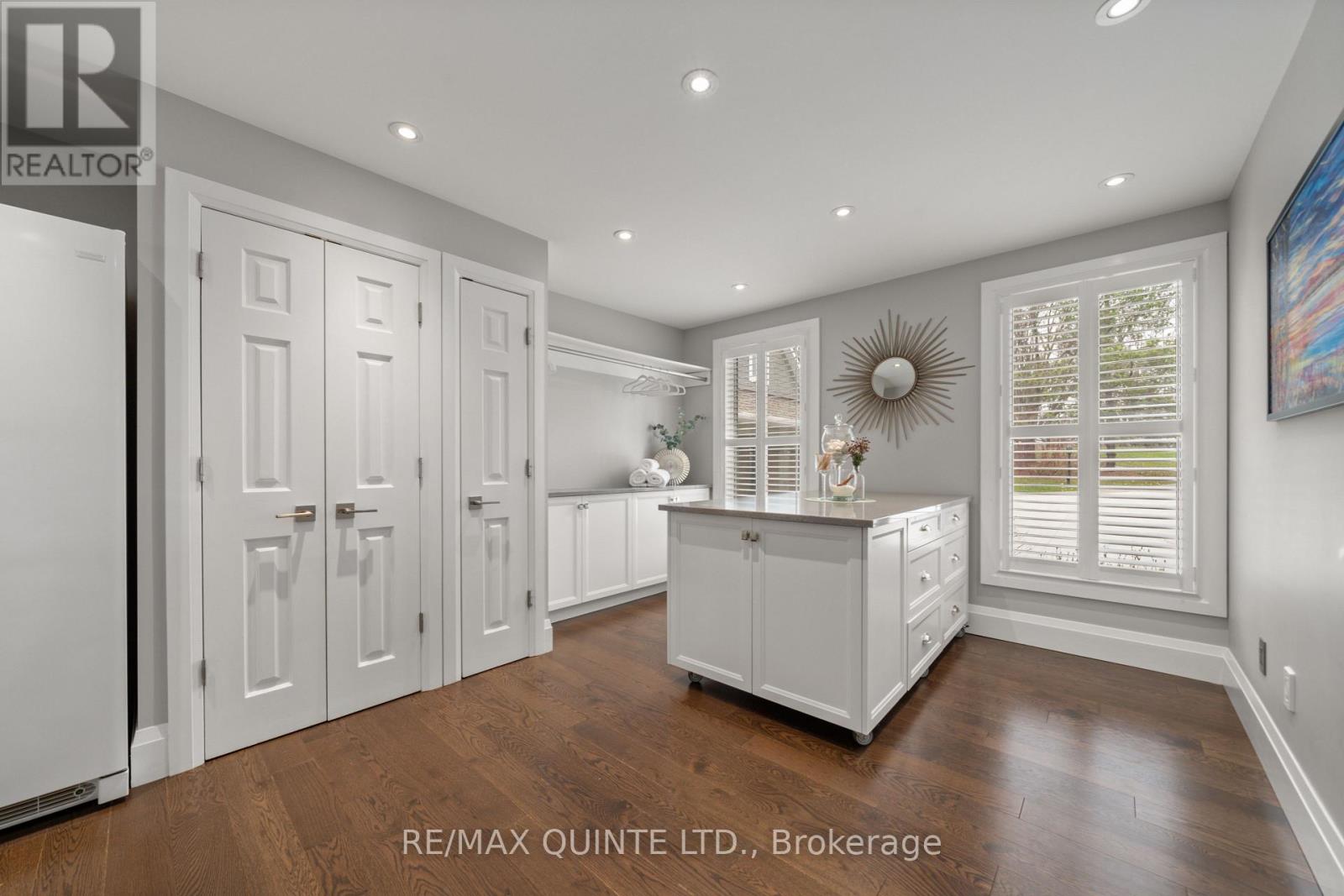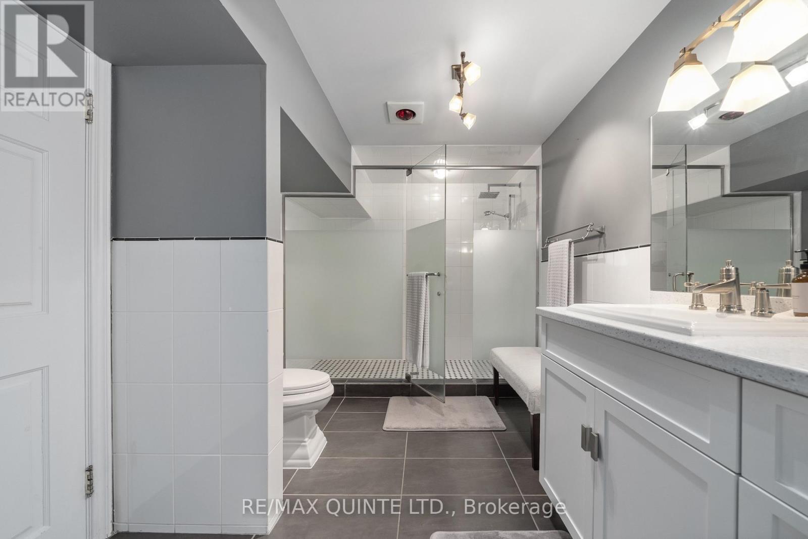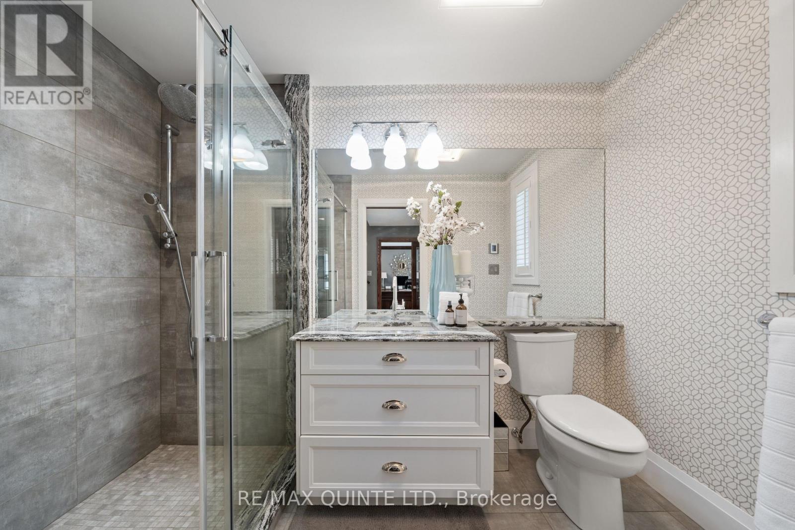 Welcome to your dream waterfront oasis on the beautiful Bay of Quinte. Combining timeless craftsmanship with modern luxury, this impeccably renovated and expanded home offers a quiet luxurious lifestyle in a prime central location. Completed in 2017, every detail of this exquisite property has been thoughtfully re-designed for comfort, function, and elegance. From the moment you arrive, you'll notice the impeccable curb appeal, featuring a new asphalt driveway complemented by custom concrete detailing and an impressive compass inlay. The exterior showcases original brickwork, meticulously removed and reinstalled to preserve the homes character, enhanced by new windows, doors, gutters, and downspouts. Heated floors warm all four washrooms on the main and upper levels, while quartz countertops elevate the kitchen, washrooms, and laundry room. The heart of the home, the kitchen, is a showstopper with modern quartz surfaces, stylish cabinetry, and premium appliances. Relax by any of the three gas fireplaces, including a stunning soapstone feature in the bar area, perfect for entertaining guests year-round. The oversized three-car garage, complete with a convenient drive-through bay, offers ample space for vehicles and storage. Above the garage, a fully insulated and drywalled loft provides endless possibilities. Step outside to your personal resort-like backyard, where a saltwater concrete pool with a natural gas heater awaits. At the waterfront, a 35ft dock and a lift dock system offers direct access to the Bay, ideal for boating and swimming with a bonus bunkie with a spacious living room and 2nd storey bunk room on the waters edge. This rare waterfront estate offers the perfect blend of luxury, privacy, and convenience close to all amenities, yet feeling like a true retreat. Whether you're enjoying a sunset swim, entertaining by the pool, or simply soaking in the peaceful bay views, this property provides an unmatched living experience. (id:51158)
