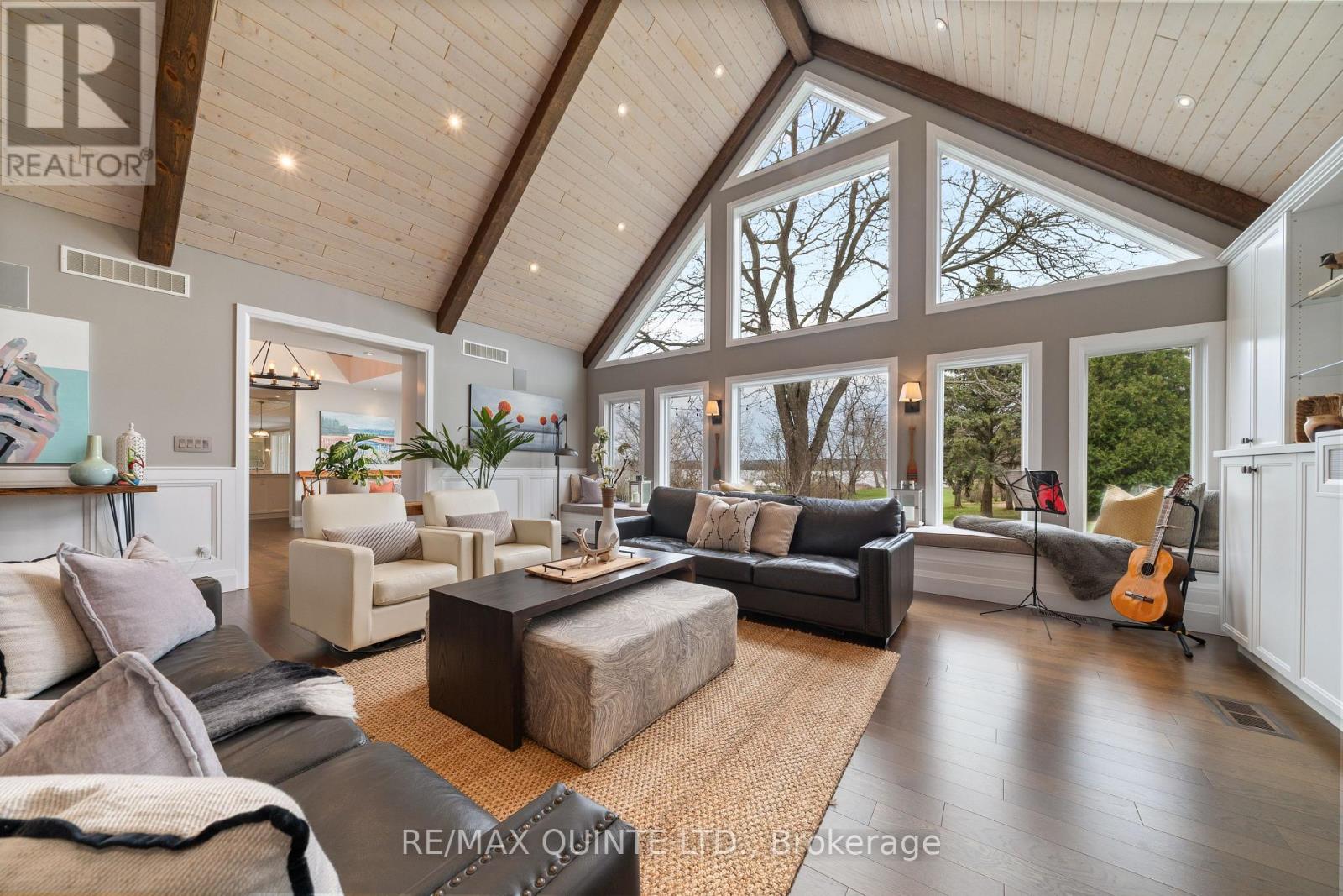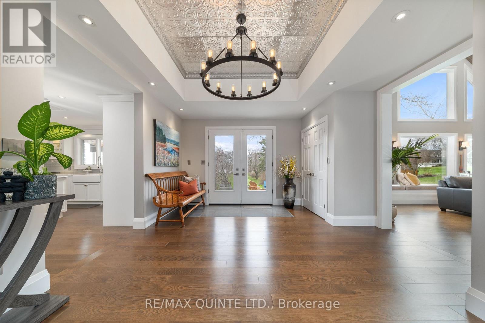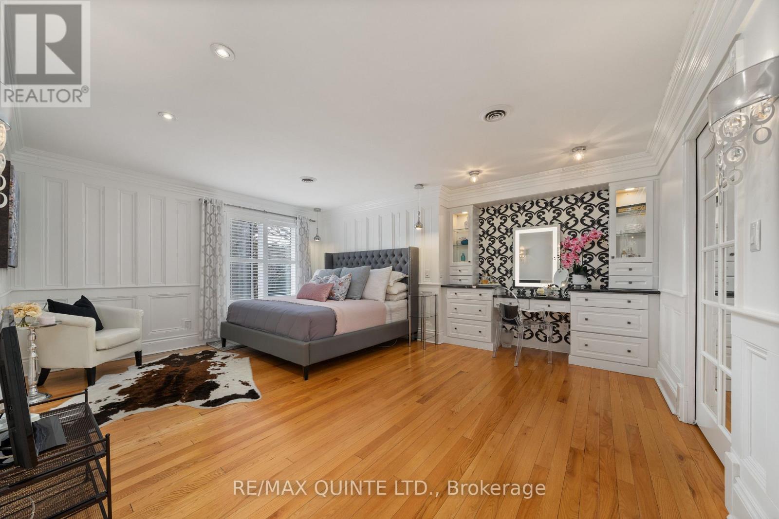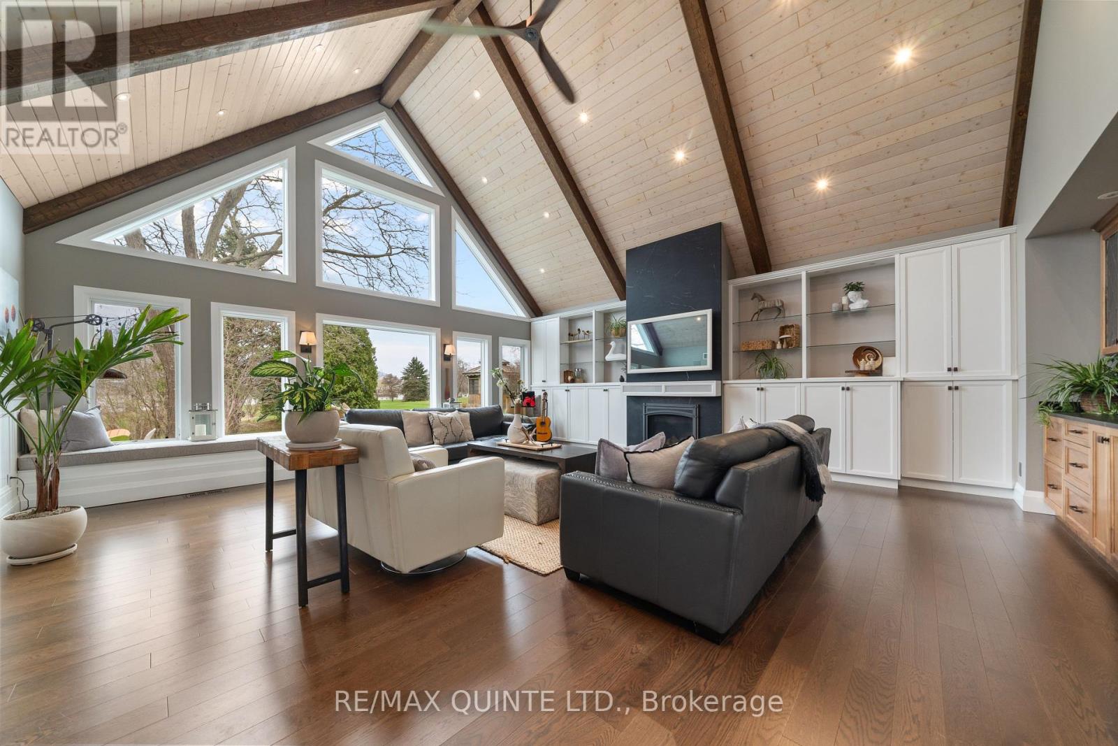 Welcome to your dream waterfront oasis on the beautiful Bay of Quinte. Combining timeless craftsmanship with modern luxury, this impeccably renovated and expanded home offers a quiet luxurious lifestyle in a prime central location. Completed in 2017, every detail of this exquisite property has been thoughtfully re-designed for comfort, function, and elegance. From the moment you arrive, you'll notice the impeccable curb appeal, featuring a new asphalt driveway complemented by custom concrete detailing and an impressive compass inlay. The exterior showcases original brickwork, meticulously removed and reinstalled to preserve the homes character, enhanced by new windows, doors, gutters, and downspouts. Heated floors warm all four washrooms on the main and upper levels, while quartz countertops elevate the kitchen, washrooms, and laundry room. The heart of the home, the kitchen, is a showstopper with modern quartz surfaces, stylish cabinetry, and premium appliances. Relax by any of the three gas fireplaces, including a stunning soapstone feature in the bar area, perfect for entertaining guests year-round. The oversized three-car garage, complete with a convenient drive-through bay, offers ample space for vehicles and storage. Above the garage, a fully insulated and drywalled loft provides endless possibilities. Step outside to your personal resort-like backyard, where a saltwater concrete pool with a natural gas heater awaits. At the waterfront, a 35ft dock and a lift dock system offers direct access to the Bay, ideal for boating and swimming with a bonus bunkie with a spacious living room and 2nd storey bunk room on the waters edge. This rare waterfront estate offers the perfect blend of luxury, privacy, and convenience close to all amenities, yet feeling like a true retreat. Whether you're enjoying a sunset swim, entertaining by the pool, or simply soaking in the peaceful bay views, this property provides an unmatched living experience. (id:51158)