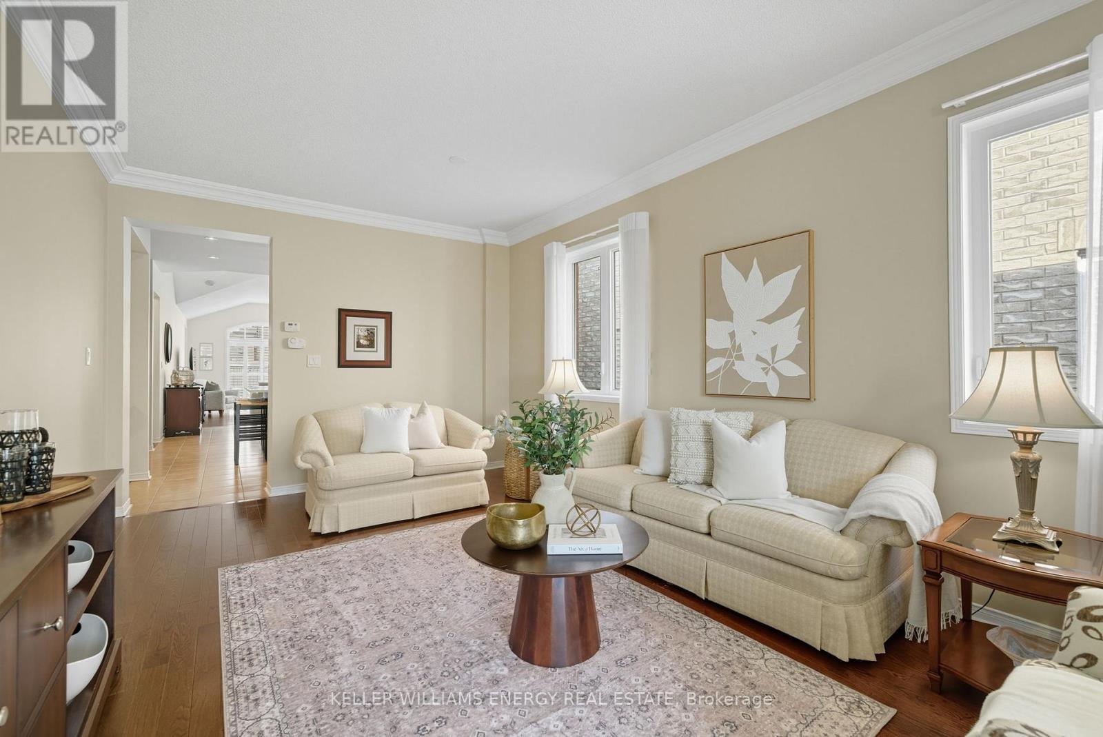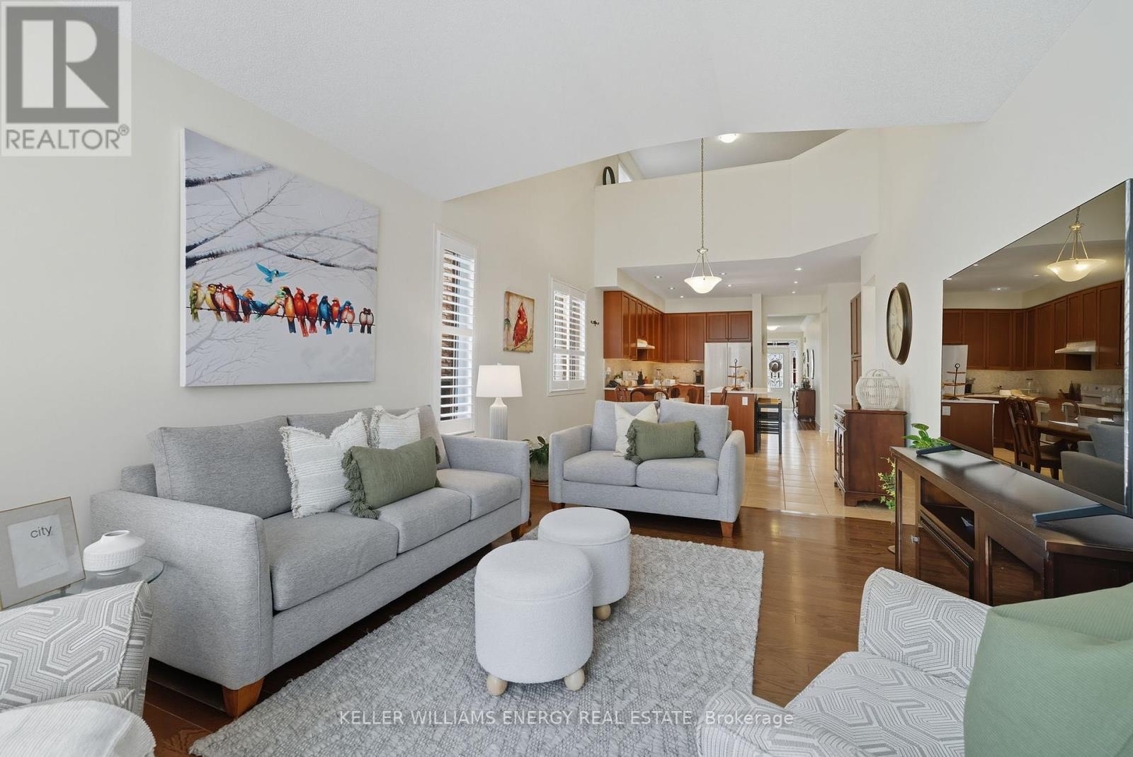 This beautifully designed detached bungaloft offers the perfect blend of space, comfort, and versatility. Featuring 4 bedrooms and 3 full bathrooms, this home is ideal for growing families or multigenerational living. The main floor boasts soaring ceilings and an expansive layout, including a bright and functional kitchen with abundant storage, perfect for the home chef. Enjoy seamless flow through the dining room, living room, and family room, creating a warm and inviting space for everyday living and entertaining. Main floor laundry adds everyday convenience, and the primary bedroom features a private 3-piece ensuite. Upstairs, you'll find two bedrooms and a loft-style sitting area, perfect for a home office, reading nook, or playroom. The large unfinished basement offers endless potential, finish to suit your needs for added living space, a home gym, or media room. Located in a desirable, family-friendly neighbourhood close to parks, and amenities, this home is the perfect place to settle in and make your own. Don't miss this rare bungaloft opportunity in Bowmanville! (id:51158)