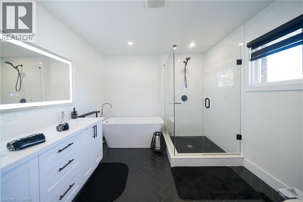 Get ready to move into a spectacular backsplit filled with many updates. Fantastic 3 bedroom and 3 bath home, completely finished from top to bottom. Open space concept on the main floor, perfect for entertaining. Master bedroom includes an oversized luxurious ensuite feeling. Lower family room offers great space for everyone to enjoy lounging around or another entertaining area. Home offers 2 kitchens, laundry room equipped with a separated tub/ shower; great for pet grooming. Moreover, there is a separate entrance into basement for in-law setup or allowing for future income potential. Many updates done in 2020 include: fence, new doors, kitchenette, garage door, garage inside, extended concrete driveway, exposed aggregate, and much more! This is a turn key opportunity that you don't want to miss out on. (id:51158)