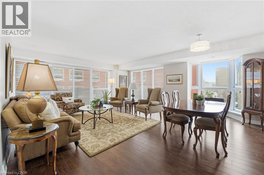 $1,118.02 MonthlyWelcome to Bentley Place in the desirable Durand district of Hamilton. This unit is the epitome of turnkey, maintenance-free living! The expansive corner unit has been meticulously maintained, and offers a great layout with living space filled with natural light from the floor to ceiling newly replaced windows (completed in 2025). Large principal rooms are perfect for both entertaining and everyday living, and the wraparound balcony extends the living space even further. Hardwood flooring continues into the large master bedroom, complete with walk-in closet and a 4pc ensuite with separate tub and stand alone shower. The second bedroom is equally spacious, also featuring a walk-in closet and access to the second bathroom, and its location at the other side of the condo ensures privacy. A full laundry room with newer washer and dryer gives extra storage space. Custom window treatments on all windows allow light to filter through when desired. Residents of Bentley Place enjoy exclusive amenities including an exercise room, media room and underground and visitor parking. This is a highly walkable location, with access to all of the great restaurants, including those on James St N, Locke Street shops, Hess Village, and the Arts and Culture scene of Hamilton. Convenient access to West Harbour Go means it's also an ideal location for commuters. (id:51158)