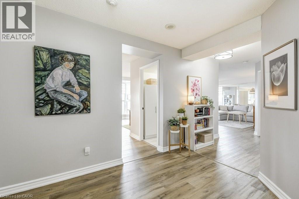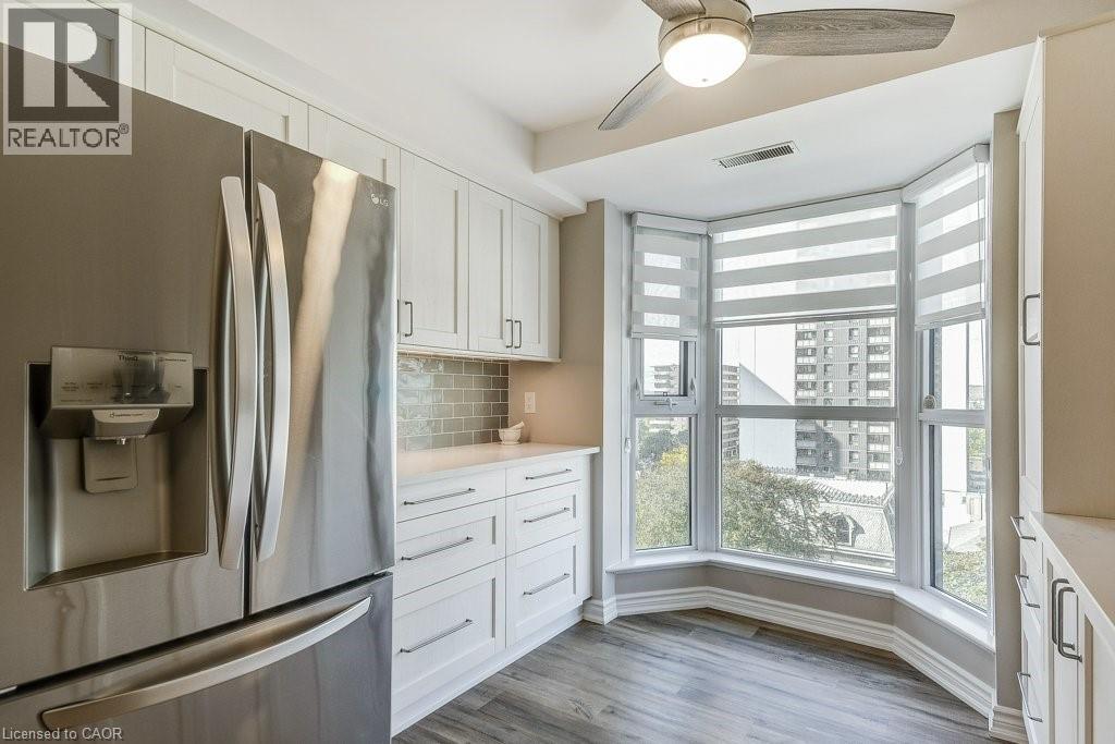 Luxury living meets modern style in this beautifully updated 2-bedroom, 2-bath suite at Bentley Place in the heart of the Durand neighbourhood. This expansive 1500+ sqft corner unit offers a bright, open-concept layout filled with natural light and city views through newly installed windows (2025). The modern white kitchen is a standout feature, showcasing gorgeous Statuario quartz countertops, stainless steel appliances and plenty of cabinetry for the aspiring chef. The spacious dining and living areas have amazing appeal whether it be for entertaining or relaxing. Two large enclosed balconies extend the living space — one off the living room (open and closed) and one private to the primary bedroom — offering an option to enjoy the skyline views year-round, rain or shine. The primary suite includes a spa-inspired 5-piece ensuite with a jetted tub and a generous walk-in closet with closet organizers. The second bedroom is equally spacious, also featuring a walk-in closet and custom storage solutions. Thoughtfully updated throughout with modern flooring, fresh paint and fashionable zebra blinds, every detail reflects care and contemporary taste. Residents of Bentley Place enjoy exclusive amenities including an exercise room, media room and underground parking. Highly walkable location! This wonderful spot will appeal to you if you enjoy walking, cycling or utilize public transit. Convenient proximity to McMaster Hospital/University. Surrounded by the arts, culture, recreation of downtown Hamilton. You will be within walking distance to James Street North, Hess Village, the Farmer’s Market, First Ontario Concert Hall, the Art Gallery of Hamilton, Locke Street, parks, a wide variety of cuisine, fine dining, shopping, West Harbour GO and scenic escarpment trails. One of the building’s larger units, this move-in-ready suite delivers the sophistication, space, and lifestyle you’ve been waiting for. (id:51158)
