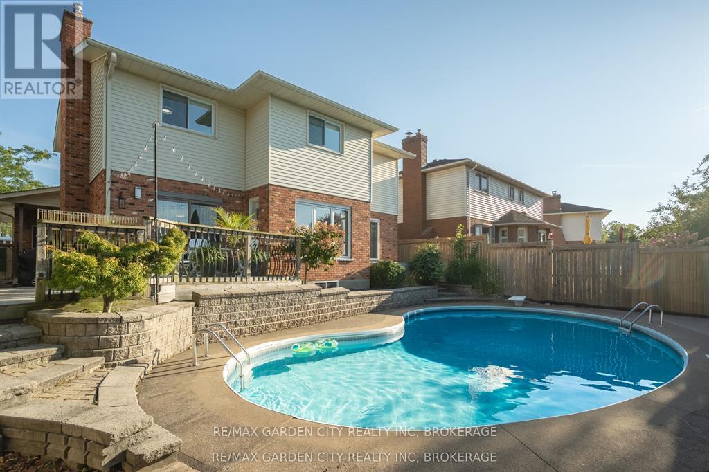 This 4+1 bedroom, 3.5-bathroom family home is tucked into one of the North Ends most desirable neighborhoods, in a highly regarded school district. Designed with families in mind, the upper level features four spacious bedrooms, a layout that is rare and highly sought after. The main floor offers a bright and welcoming living room and dining area, a modern kitchen with quartz countertops and stainless steel appliances, and a family room centered around a wood-burning fireplace. Step outside to your private backyard retreat, where a heated saltwater pool awaits, complete with a pool pump from 2021, filter and liner from 2020, and a heater and salt system updated in 2024. The pool is perfect for summer entertaining or relaxing in privacy. Upstairs, the primary suite features an updated three-piece en-suite and walk-in closet, while the additional three bedrooms share a refreshed five-piece bath and enjoy updated windows throughout the second floor. The lower level includes a game room, a fifth bedroom with en-suite privileges, a three-piece bath, and ample storage, providing flexibility for guests, teens, or home office needs. With thoughtful updates, functional design, and a coveted North End location, this move-in ready home offers a nice style, comfort, and practicality for families looking to settle in a friendly, established neighborhood. (id:51158)