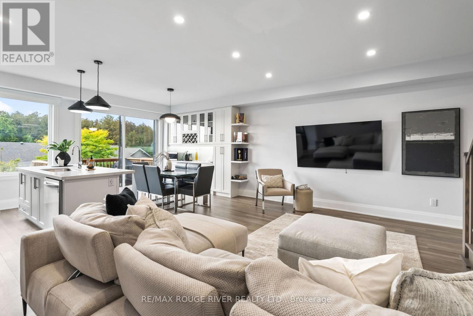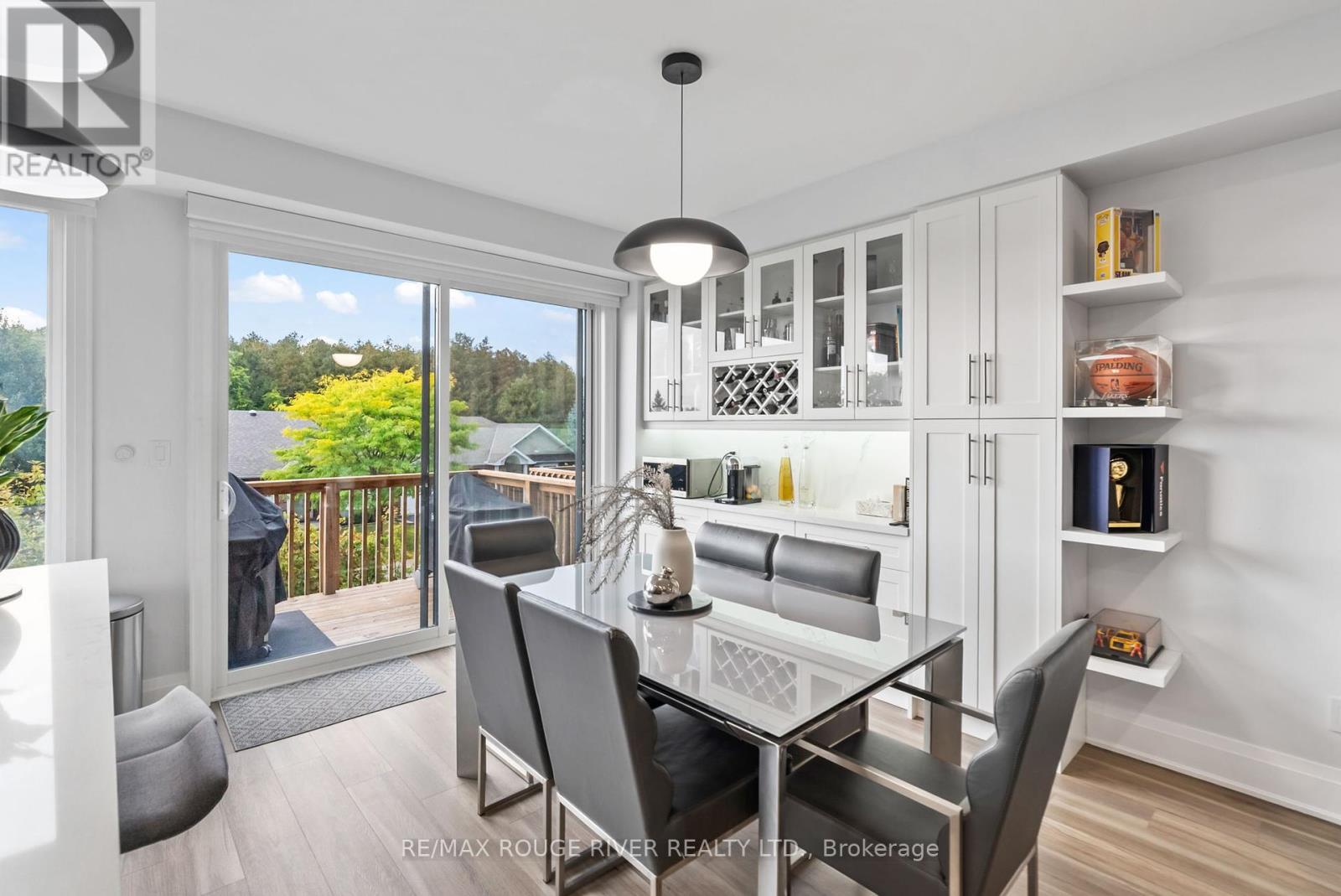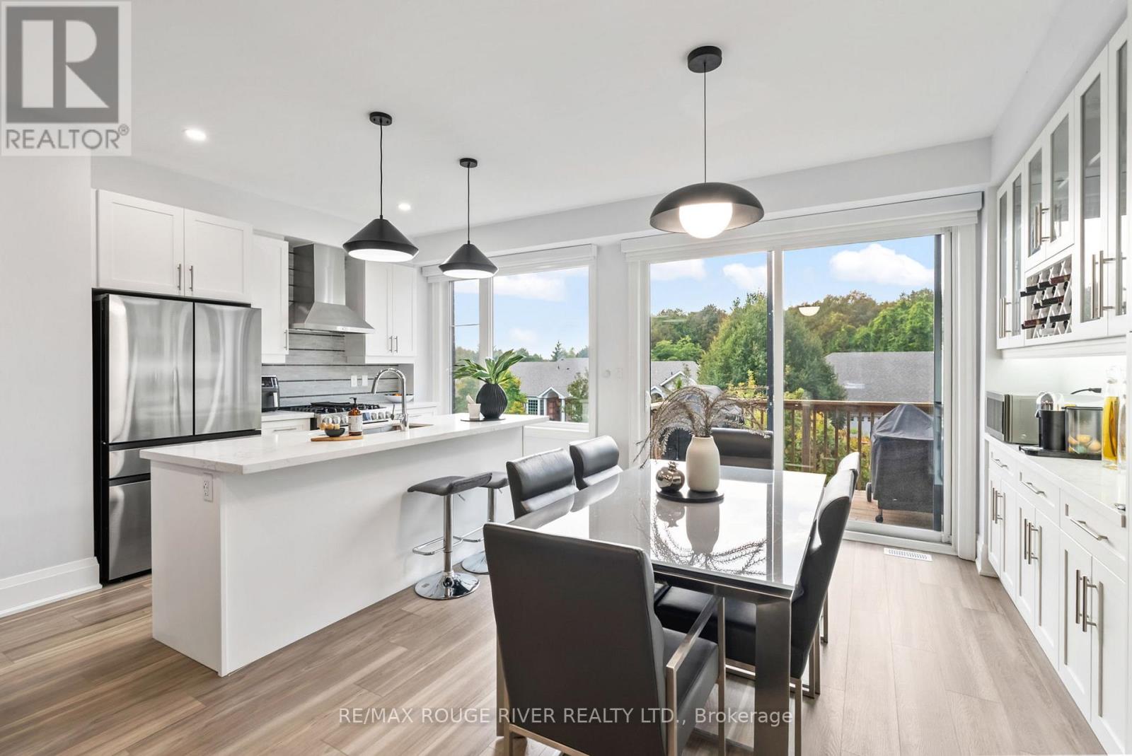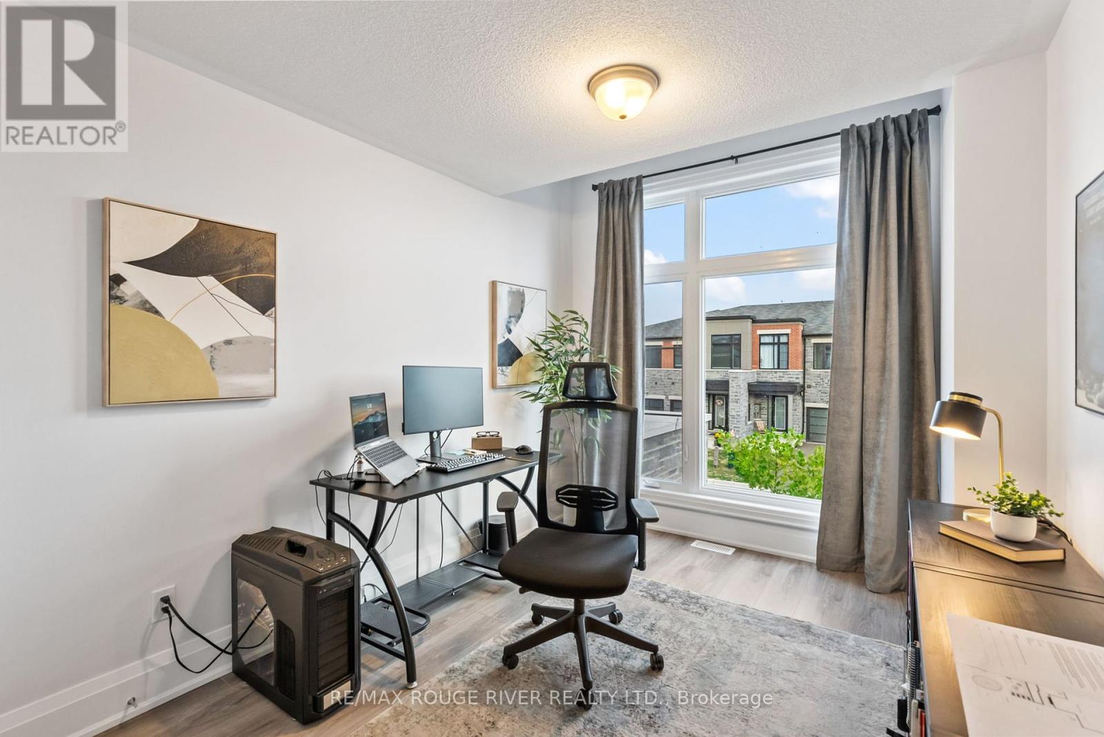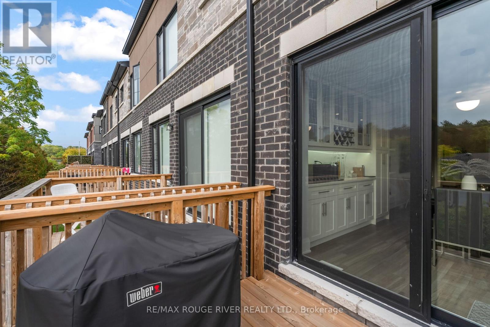 Stunning Turn-Key Townhome with Over $100K in Upgrades! Welcome to this beautifully appointed 3-bedroom, 4-bathroom townhome with walk out basement that seamlessly blends style, comfort, and functionality. Set in a prime location close to top-rated schools, shopping, dining, transit, and with easy access to Hwy 412, this home offers both convenience and luxury living. Step into a thoughtfully landscaped front yard and through an elegant entrance that opens to a bright, open-concept main floor. The living area features sleek luxury vinyl flooring, modern pot lighting, and flows effortlessly into the gourmet kitchen. A true showstopper, the kitchen boasts quartz-topped counters and centre island with seating, high-end stainless steel appliances including a gas range, and ample cabinetry for all your culinary needs. Adjacent to the kitchen, the inviting dining area includes custom built-ins and walks out to a private balcony- ideal for barbecuing or enjoying your morning coffee. Upstairs, the spacious primary suite serves as a tranquil retreat, complete with a walk-in closet and a spa-inspired 5-piece ensuite featuring a double vanity, soaker tub, and separate shower. Two additional generously sized bedrooms - one with its own walk-in closet, the other with a double closet -share a beautifully upgraded full bath. All bathrooms include elevated vanities for added comfort and style. Throughout the home, enjoy thoughtful upgrades such as California Closet systems, William Sonoma custom window coverings in all bedrooms, and premium finishes at every turn. The fully finished walk-out basement extends your living space with a cozy rec room, stylish 3-piece bathroom, and direct access to a charming stone patio and backyard- perfect for relaxing or entertaining. This meticulously maintained home is a rare find- just move in and enjoy. (id:51158)