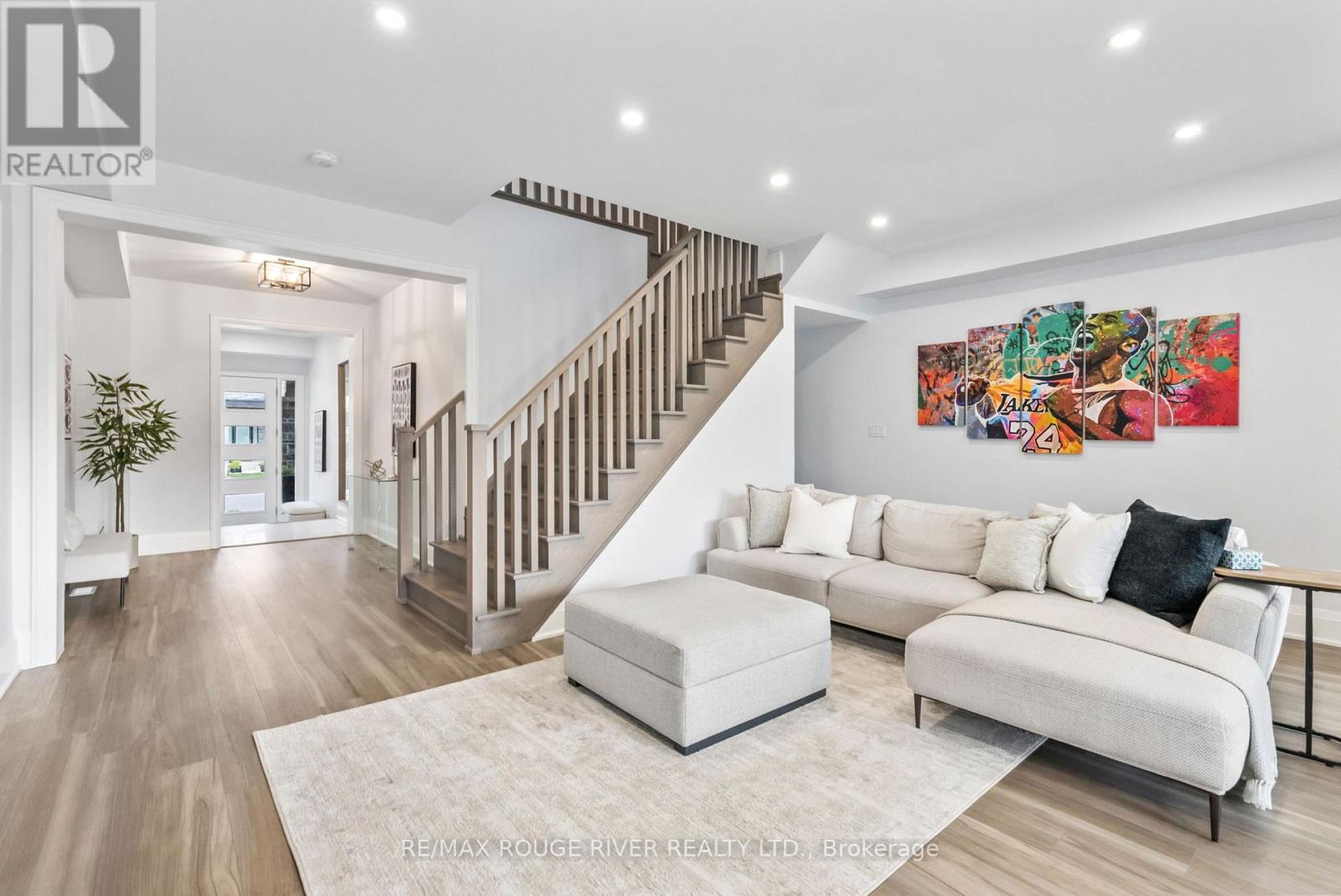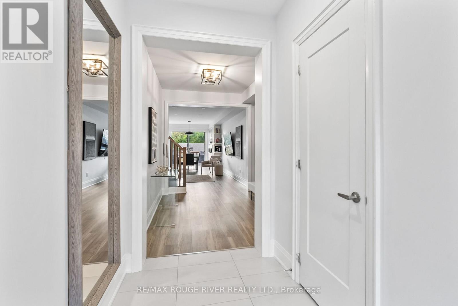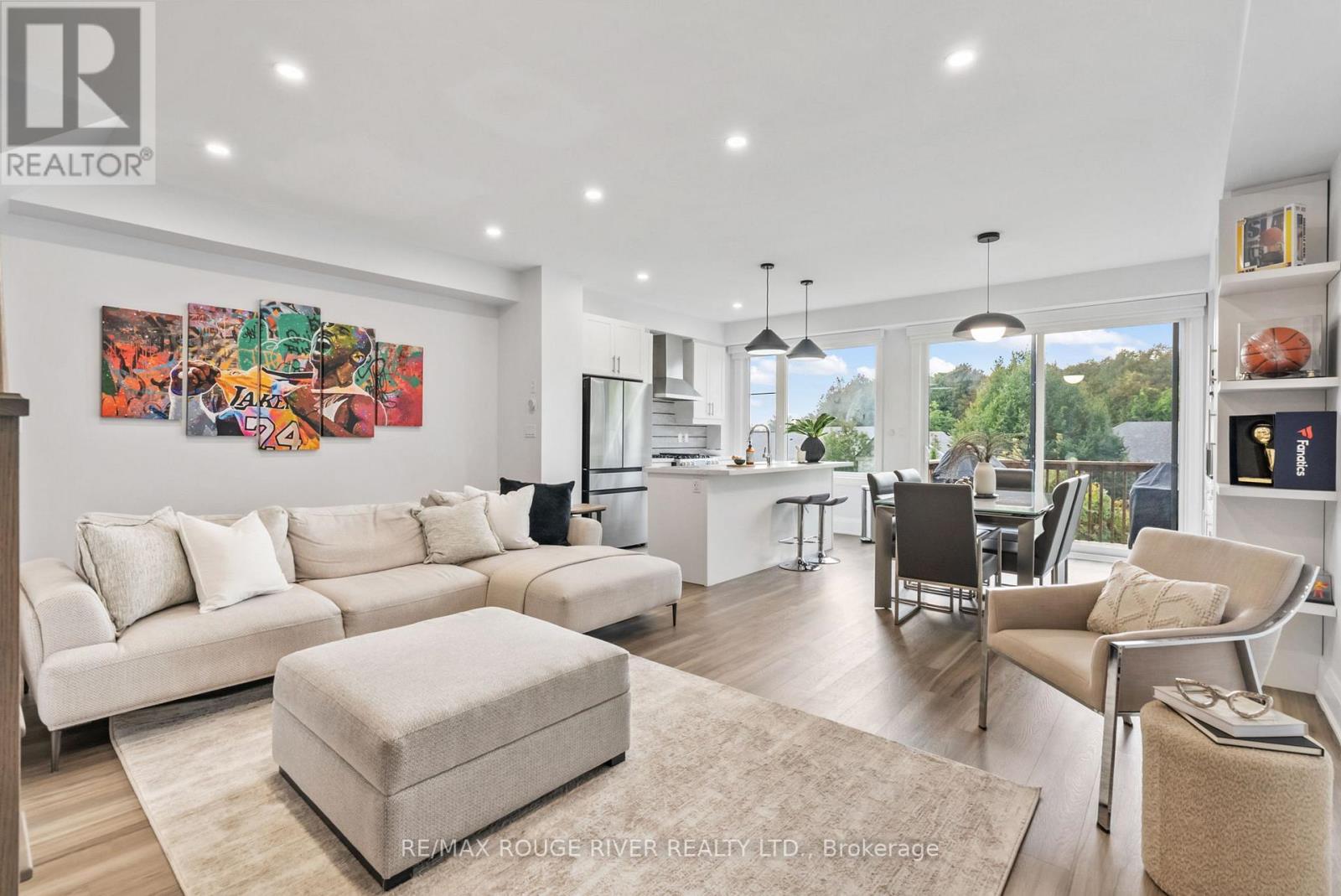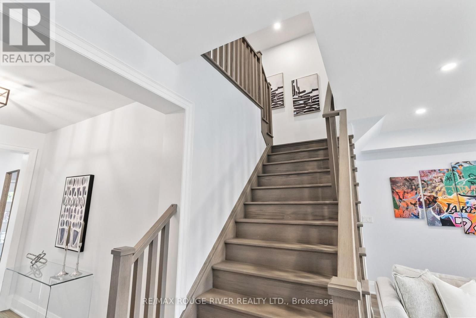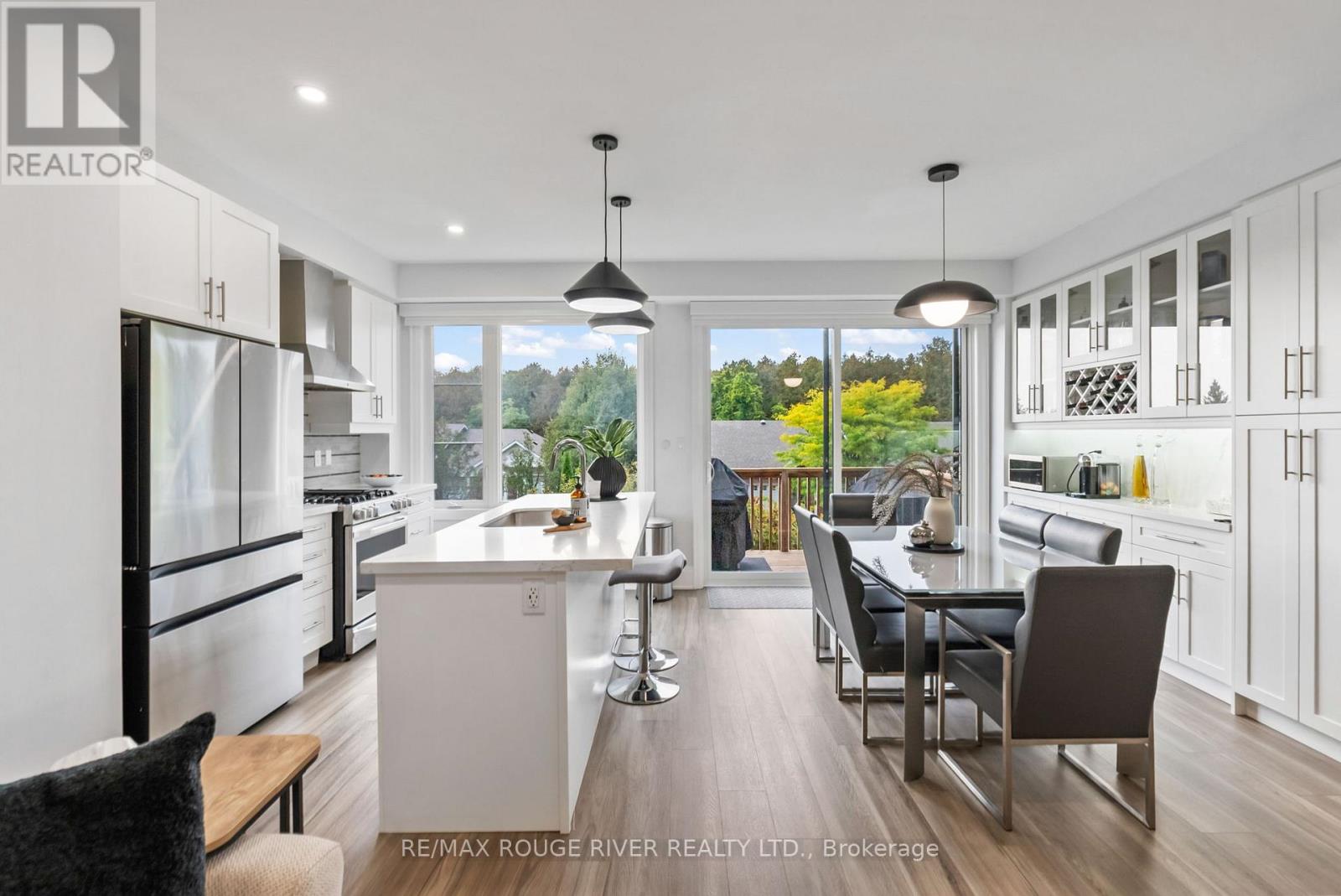 Stunning Turn-Key Townhome with Over $100K in Upgrades! Welcome to this beautifully appointed 3-bedroom, 4-bathroom townhome with walk out basement that seamlessly blends style, comfort, and functionality. Set in a prime location close to top-rated schools, shopping, dining, transit, and with easy access to Hwy 412, this home offers both convenience and luxury living. Step into a thoughtfully landscaped front yard and through an elegant entrance that opens to a bright, open-concept main floor. The living area features sleek luxury vinyl flooring, modern pot lighting, and flows effortlessly into the gourmet kitchen. A true showstopper, the kitchen boasts quartz-topped counters and centre island with seating, high-end stainless steel appliances including a gas range, and ample cabinetry for all your culinary needs. Adjacent to the kitchen, the inviting dining area includes custom built-ins and walks out to a private balcony- ideal for barbecuing or enjoying your morning coffee. Upstairs, the spacious primary suite serves as a tranquil retreat, complete with a walk-in closet and a spa-inspired 5-piece ensuite featuring a double vanity, soaker tub, and separate shower. Two additional generously sized bedrooms - one with its own walk-in closet, the other with a double closet -share a beautifully upgraded full bath. All bathrooms include elevated vanities for added comfort and style. Throughout the home, enjoy thoughtful upgrades such as California Closet systems, William Sonoma custom window coverings in all bedrooms, and premium finishes at every turn. The fully finished walk-out basement extends your living space with a cozy rec room, stylish 3-piece bathroom, and direct access to a charming stone patio and backyard- perfect for relaxing or entertaining. This meticulously maintained home is a rare find- just move in and enjoy. (id:51158)