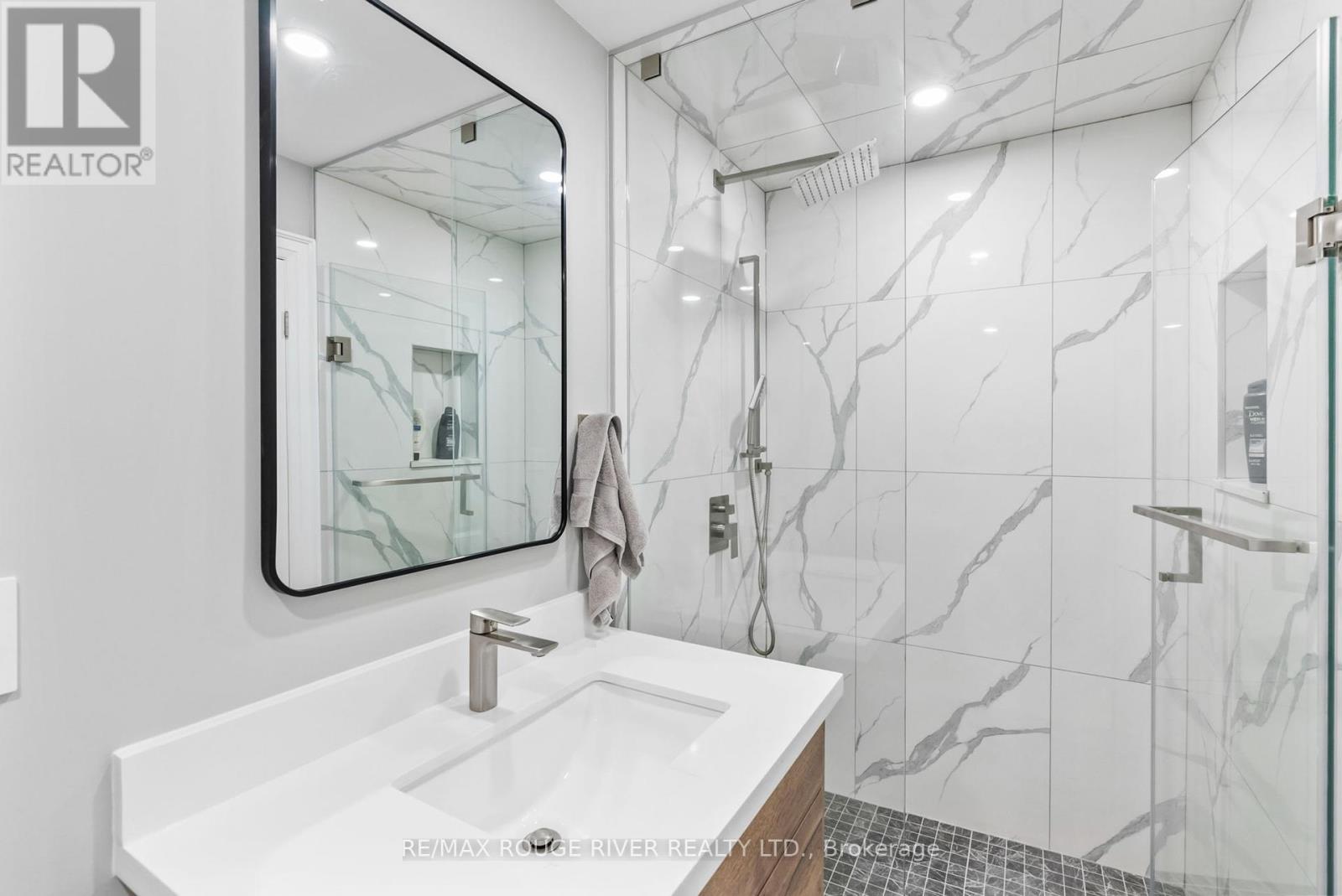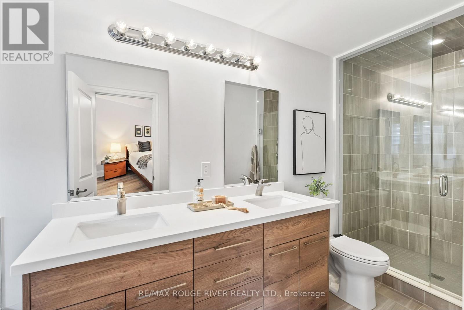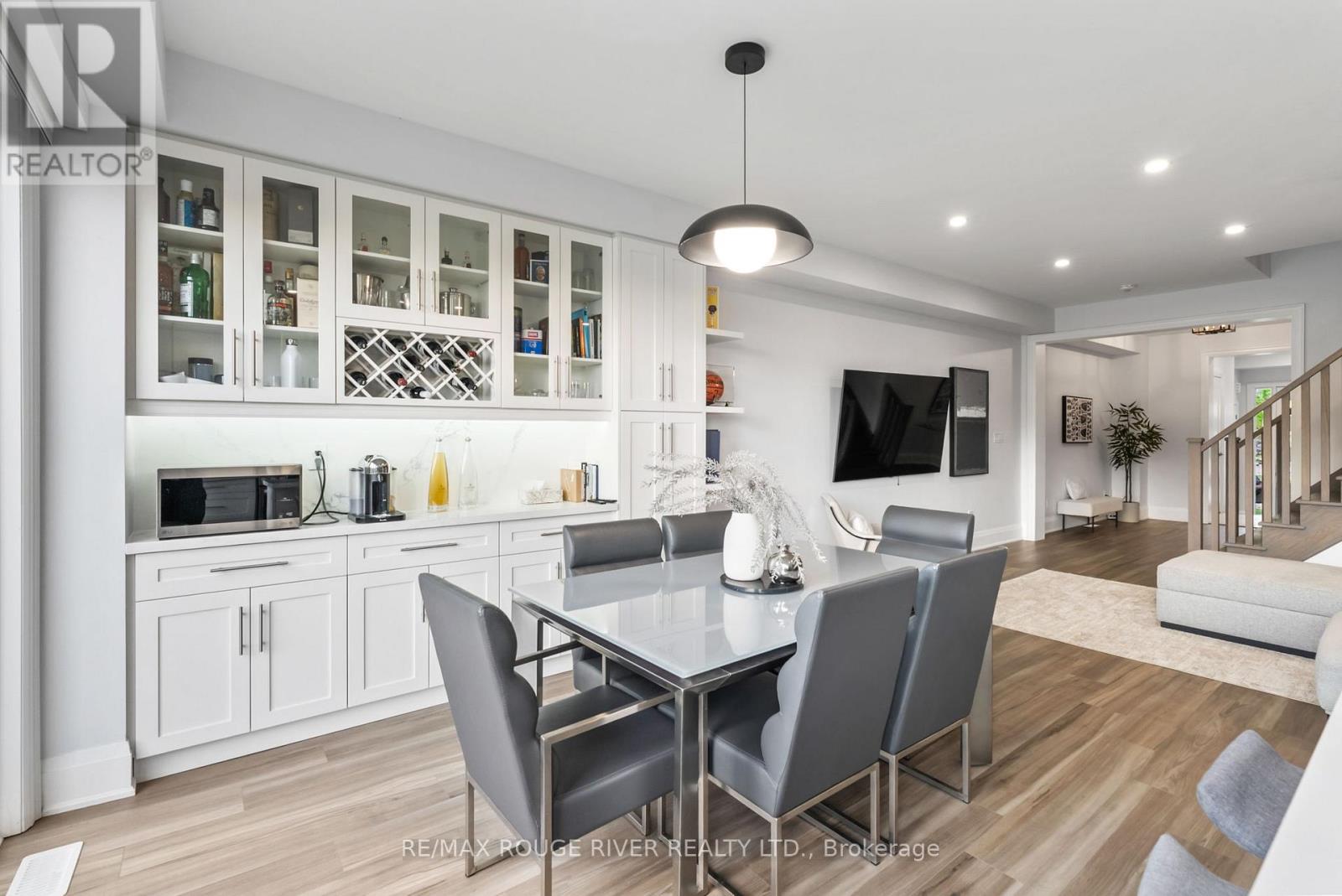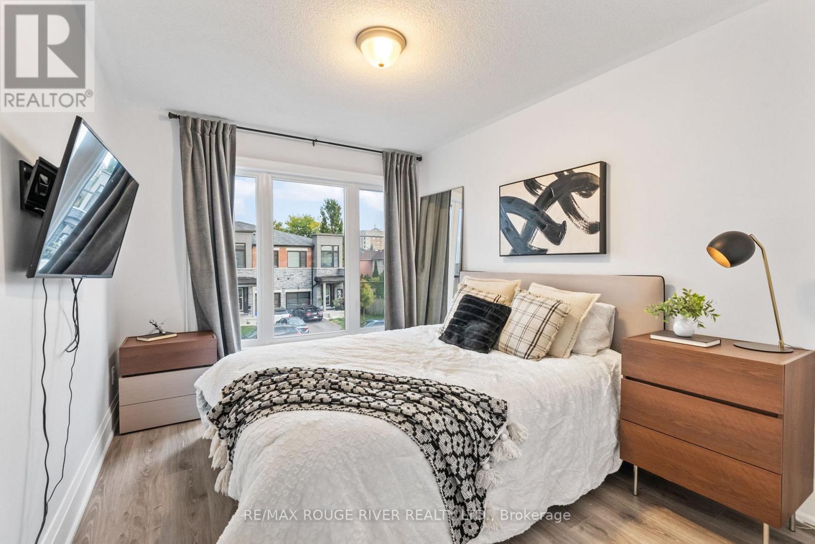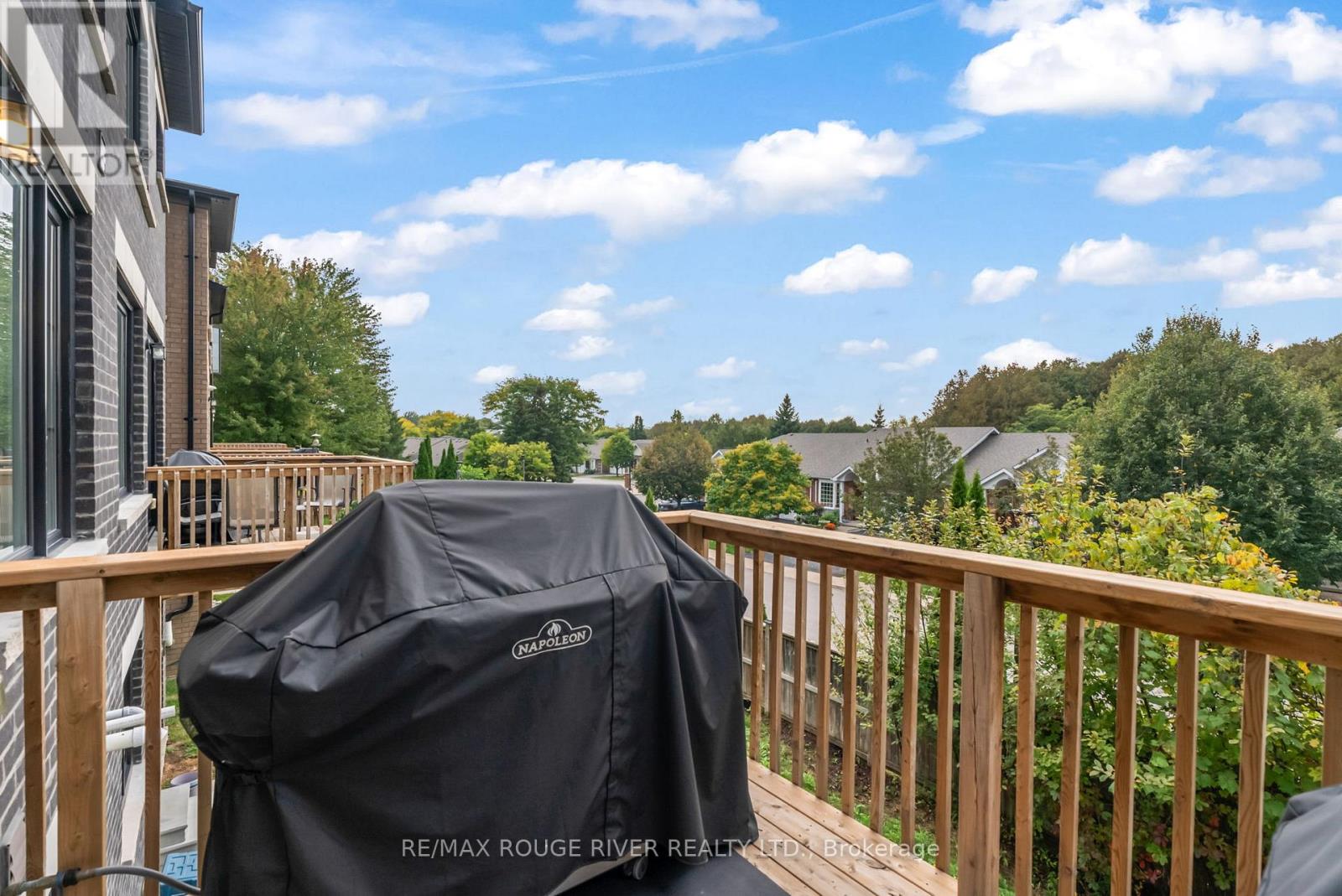 Stunning Turn-Key Townhome with Over $100K in Upgrades! Welcome to this beautifully appointed 3-bedroom, 4-bathroom townhome with walk out basement that seamlessly blends style, comfort, and functionality. Set in a prime location close to top-rated schools, shopping, dining, transit, and with easy access to Hwy 412, this home offers both convenience and luxury living. Step into a thoughtfully landscaped front yard and through an elegant entrance that opens to a bright, open-concept main floor. The living area features sleek luxury vinyl flooring, modern pot lighting, and flows effortlessly into the gourmet kitchen. A true showstopper, the kitchen boasts quartz-topped counters and centre island with seating, high-end stainless steel appliances including a gas range, and ample cabinetry for all your culinary needs. Adjacent to the kitchen, the inviting dining area includes custom built-ins and walks out to a private balcony- ideal for barbecuing or enjoying your morning coffee. Upstairs, the spacious primary suite serves as a tranquil retreat, complete with a walk-in closet and a spa-inspired 5-piece ensuite featuring a double vanity, soaker tub, and separate shower. Two additional generously sized bedrooms - one with its own walk-in closet, the other with a double closet -share a beautifully upgraded full bath. All bathrooms include elevated vanities for added comfort and style. Throughout the home, enjoy thoughtful upgrades such as California Closet systems, William Sonoma custom window coverings in all bedrooms, and premium finishes at every turn. The fully finished walk-out basement extends your living space with a cozy rec room, stylish 3-piece bathroom, and direct access to a charming stone patio and backyard- perfect for relaxing or entertaining. This meticulously maintained home is a rare find- just move in and enjoy. (id:51158)