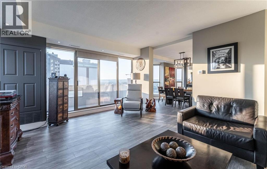 $1,051.87 MonthlyEnjoy The View Of Gorgeous Sunsets!! Once you come in you wont want to leave. Great west Hamilton location.Paneramic views of city, escarpment and lake Ontario. Beautiful open living, dining and kitchen area with 9' foot ceilings. Kitchen , baths and most flooring renos done since 2020.Kitch Island 3'.5 x 8'Accent LED lighting throughout.Rap around balcony off living room.2nd Balcony from primary bedroom with ensuit bath. Furnace and central air Combo unit replaced in 2020. One excusive underground parking spot. All windows and sliding doors replaced March 2025 Including all Blinds some are on remotes. A must to view. (id:51158)