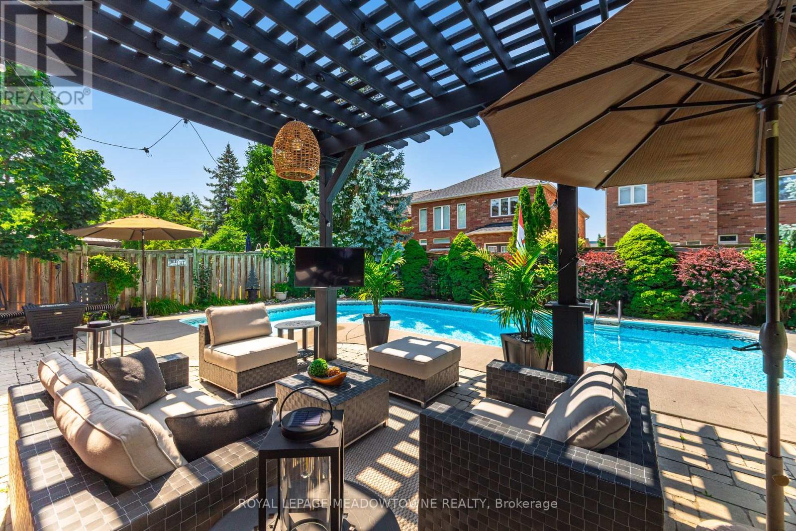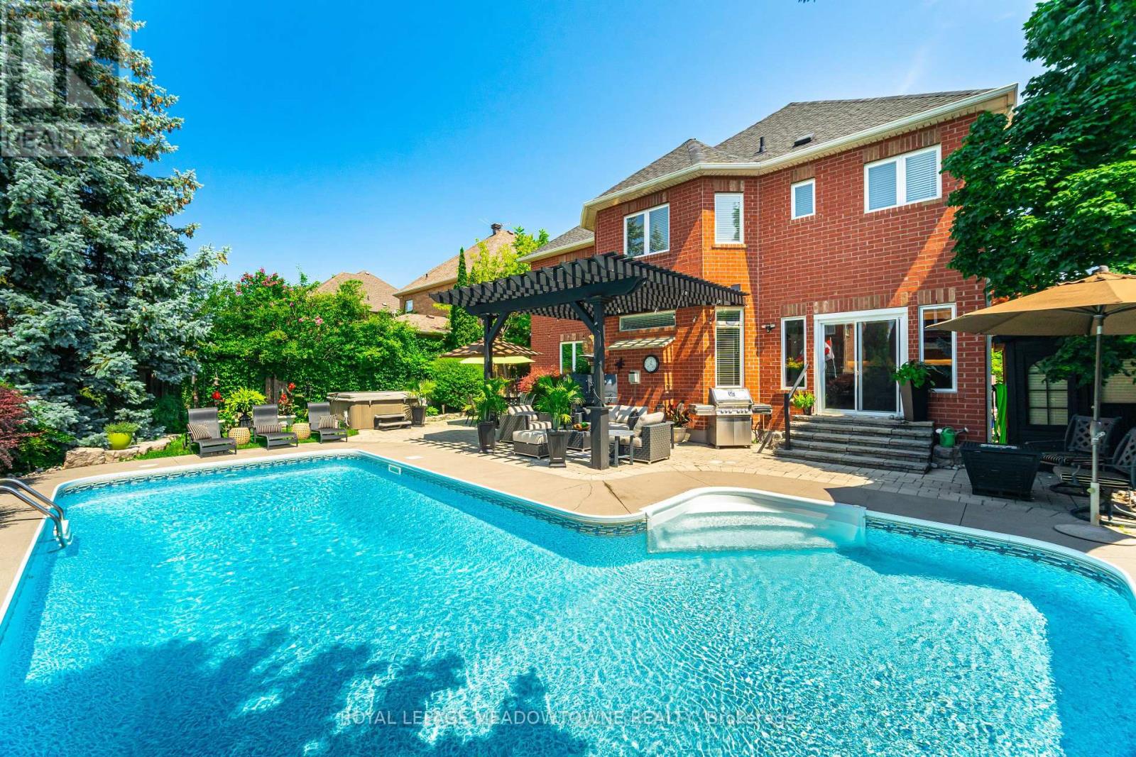 Here's The One Your Clients Have Been Waiting For!, Absolutely Stunning 4+1 Bedroom Detached 2 Storey On a 60ft Lot, 3280 Sqft Plus Professionally Finished Basement, Muskoka Like Backyard Inground Salt Water Pool, Hot Tub and gorgeous Pergola All On One Of The Most Sought After Streets In Meadowvale Village Opposite 3-4 Plus Million Dollar Homes. Inviting Floor Plan, Main Floor Has Sunken Living Room With Soaring 16ft Open To Above Ceiling, Formal Dining Room, Inviting Family Room With Gas Fireplace Overlooking Your Backyard Oasis, Breathtaking Gourmet Kitchen, Quartz Counters, Stainless Steel Appliances, Spacious Breakfast Area With Walkout To Patio, Fully Fenced Private Yard, Perfect for Spending Quality Time With Family And Friends, Practical Private Main Floor Office. Main Floor Laundry Room With Man Door To The Garage, Second Floor Has 4 Spacious Sun Splashed Bedrooms, Primary has a Walk In Closet and Spa Like 5pc Ensuite, 2nd Bedroom Has A 4pc Ensuite, Bedrooms 3 And 4 Have a Shared 4pc Semi Ensuite and Walk In Closets. Basement Is An Entertainers Dream, Open Concept Rec Room With Laminate Floors, Smooth Ceiling And Pot Lights Combined With A Games Room/Pool Table Room, Gym Room With Rubber Floors, 5Th Bedroom And 3pc Bathroom. Exterior Has Been Landscaped Front Back And Has Amazing Curb Appeal. Don't Miss This Rare Opportunity to Own An Absolute Gem Of A Property. (id:51158)