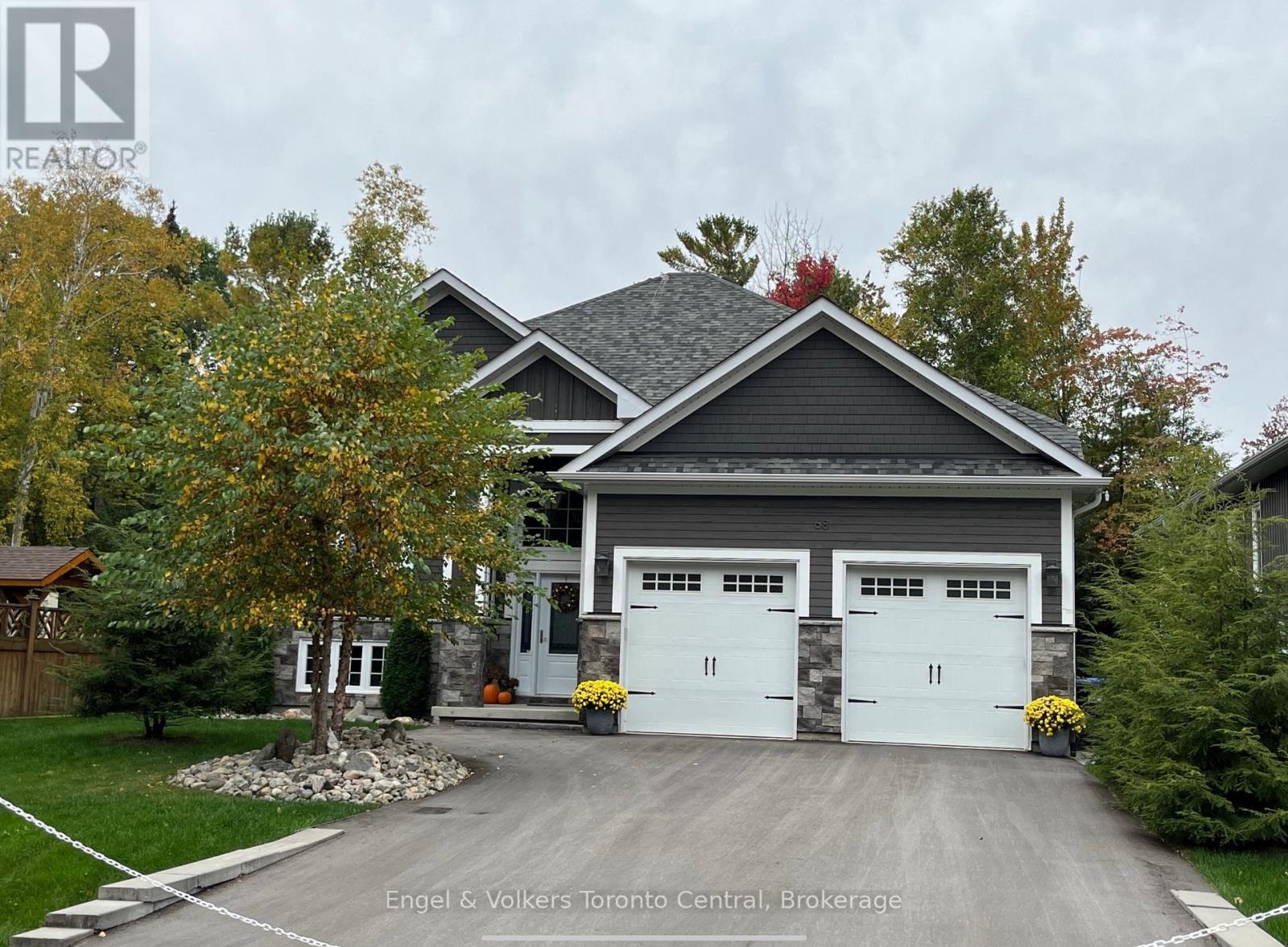 Custom built, spacious bungalow. Originally- Builders own home. Only the finest materials and finishes for himself. Main level opens onto a huge covered deck, perfect for outdoor entertaining and relaxing. Quiet, treed, dead end st, short walk to a beautiful sandy beach and glorious Georgian Bay. Open concept kitchen, living and dining. Soaring cathedral ceilings and eye catching stone fireplace. 4 bedrooms + den or office. Generous size main floor primary bedroom with walk-in closet and ensuite bath. Tastefully completed lower level with 2 bedrooms, modern bathroom, large family room and 2nd gas fireplace. Quality craftsmanship and finished to the quality of a fine musical instrument. Fully landscaped lot, with a cottage feel unlike a subdivision. Partially fenced. Close to shopping, medical offices, restaurants....with ease of access to Collingwood/Blue Mountain. Come see! (id:51158)
