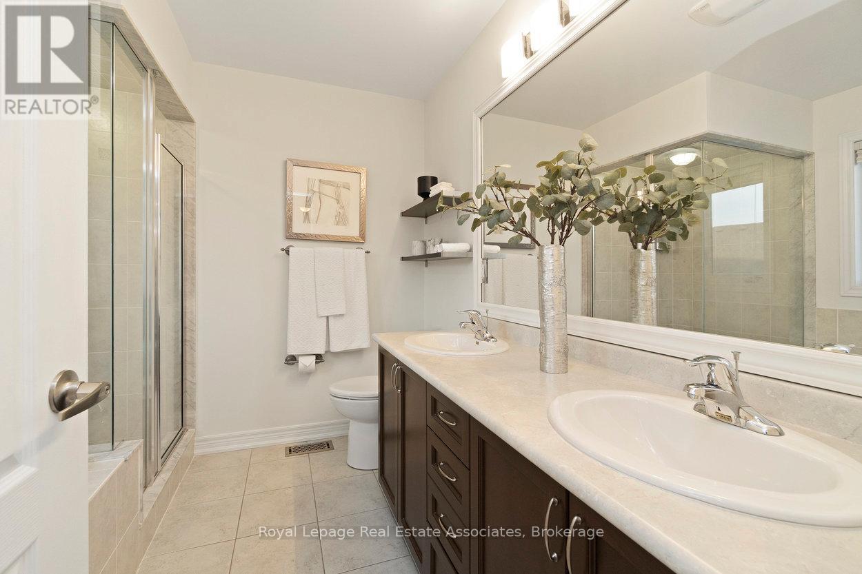 Welcome to 68 Jolana Crescent, a beautifully maintained home tucked away on a quiet, family-friendly crescent in Georgetown South. This spacious 4-bedroom, 4-bathroom home offers thoughtfully designed living space with 9 ft ceilings, hardwood floors throughout and tasteful upgrades that make it truly move-in ready. The open-concept main floor is ideal for everyday living and entertaining, featuring a large dining area, a bright living room with a cozy gas fireplace, and a chefs eat-in kitchen with granite countertops, stainless steel appliances and a central island with sink. Step outside to a private patio with gas BBQ hook-up and a fully fenced backyard - perfect for relaxed evenings and weekend gatherings. Upstairs, a spacious family room provides flexible living space for relaxing, working or entertaining. The primary suite includes a walk-in closet and a 5-piece ensuite, while the additional bedrooms provide generous space for kids, guests or extended family - one with its own ensuite. The sellers have loved living here for its quiet and peaceful atmosphere, surrounded by scenic nature trails and just steps from a community center that brings neighbours together. Its a location that offers both tranquility and convenience, with parks, schools and shopping all within walking distance. Recent updates include fresh paint throughout the home - adding a fresh, modern touch to this already inviting space. (id:51158)