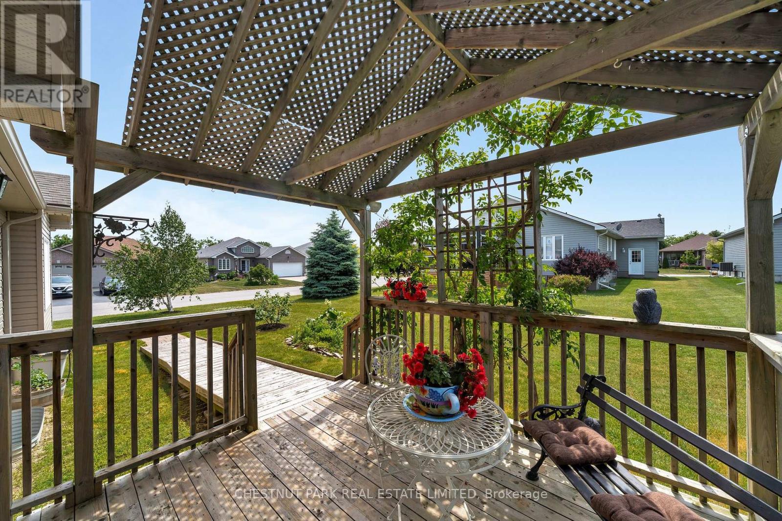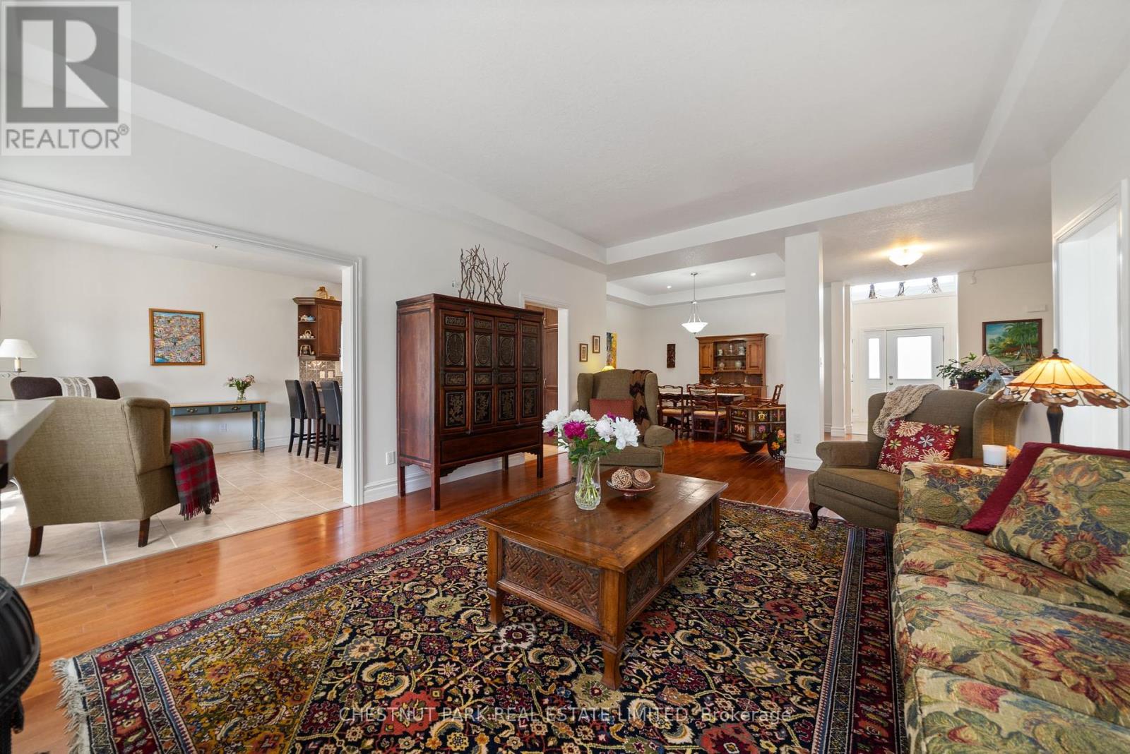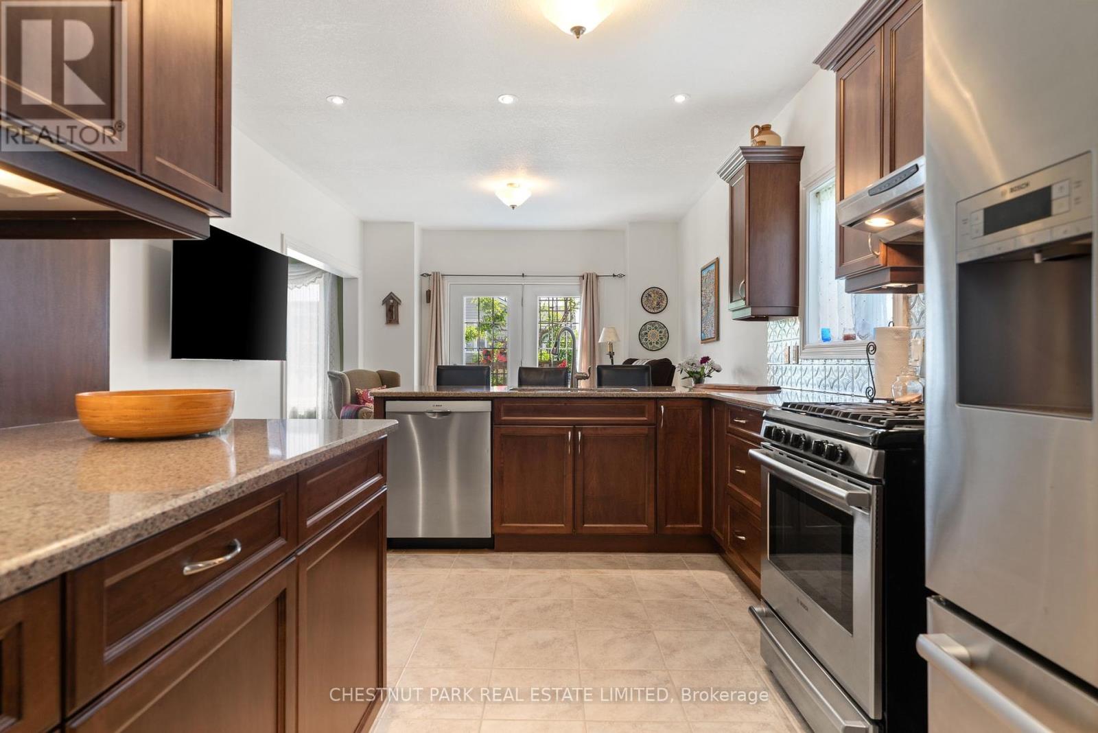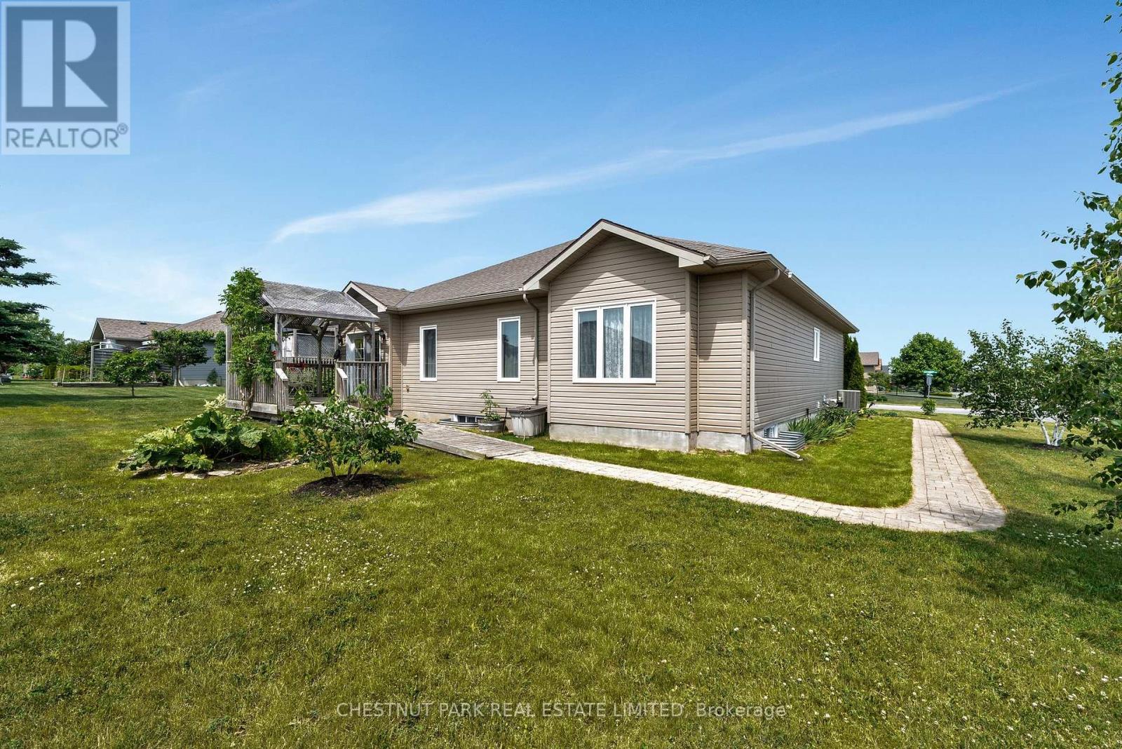 MLS# X12246626 – FOR SALE : 68 Maplehurst Crescent Wellington Ward Prince Edward County – 2 Beds, 2 Baths Detached House ** This stately two bedroom, two bath home is located in the highly regarded community of Wellington on the Lake. The double height foyer leads to the spacious dining and living rooms, with gleaming hardwood floors and high coffered ceilings. The spacious kitchen features stone countertops, a breakfast bar, and high-end stainless steel appliances. The dark wood cabinets are thoughtfully arranged and include a built-in pantry. The far end of the kitchen is roomy enough for a breakfast nook or office, and leads to a lovely, covered deck. The main floor laundry area leads to the attached garage. The primary suite includes a walk in closet and a spacious five-piece spa bath. The second bedroom sits at the front of the home so both rooms are private. There is an updated hall bath. The home has many accessibility features including levered door handles, wide hall and doorways in some areas, grab bars in the bath, a wheelchair adapted vanity area, oversized roll-in shower and turning area for a wheelchair, plus a ramp in the garage and to the outdoor deck. The property also has an inground irrigation system. The lower level is completely insulated, has full height ceilings and windows suitable for additional bedrooms and a family room. There is a roughed-in bath as well. The monthly fee is $223.88 and covers use of the rec centre and amenities, garbage/recycling, year round road upkeep and care of all common areas. Amenities include heated pool, tennis/pickleball court, home monitoring and much more. WOTL fee increases 3% annually. Come and see this lovely home and explore the leisurely lifestyle that can be yours! (id:51158) ** 68 Maplehurst Crescent Wellington Ward Prince Edward County **