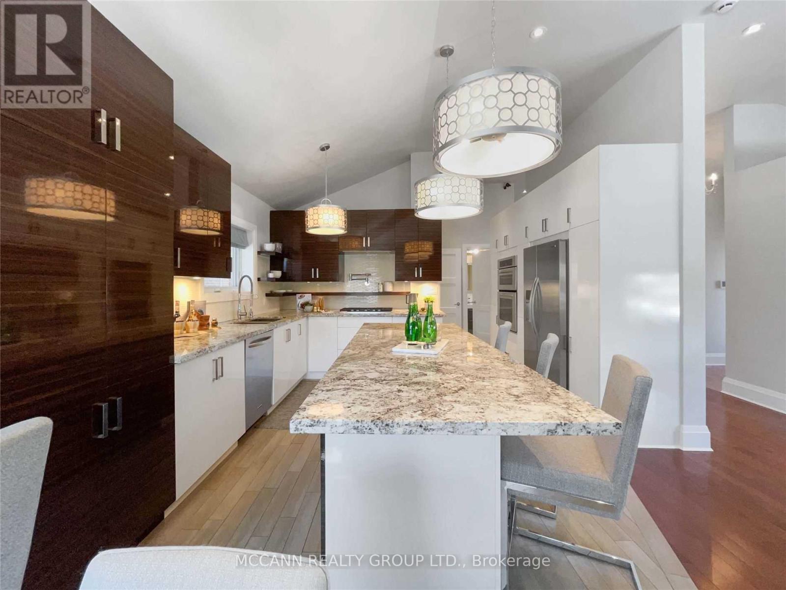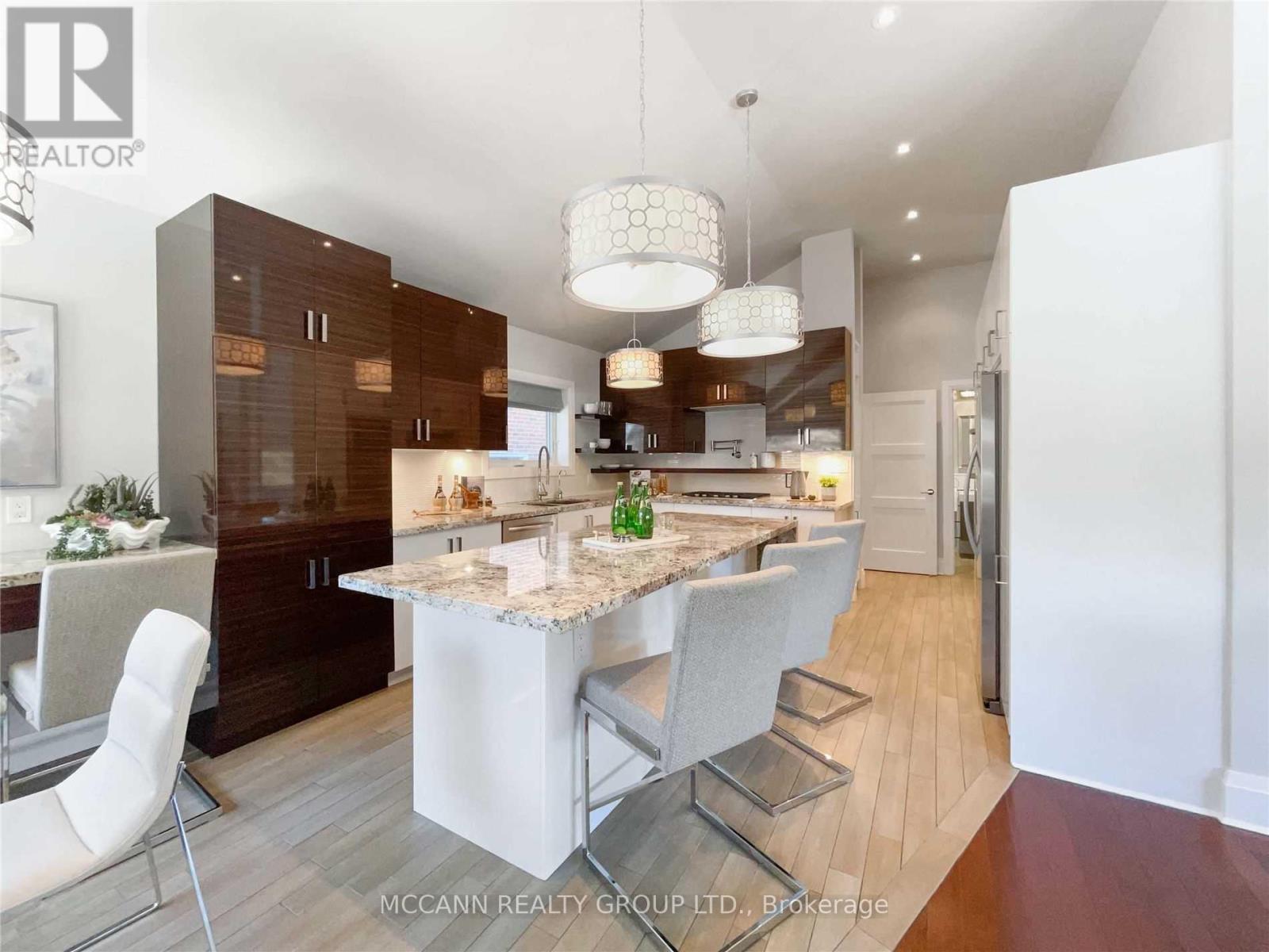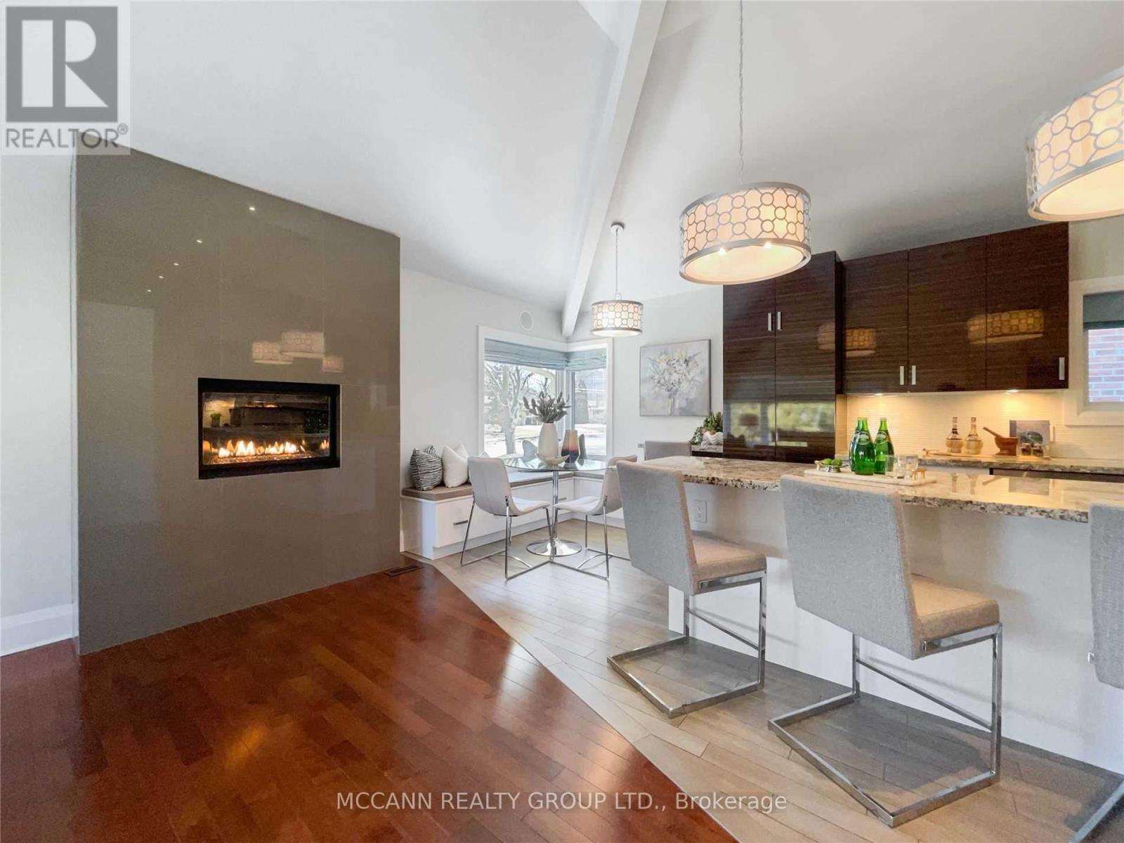 Stunning Fully Renovated Ranch-Style Bungalow in the Prestigious Bayview Village Community. This exceptional home offers a seamless blend of modern design and everyday luxury, highlighted by soaring vaulted ceilings and a beautifully appointed open-concept living and dining area-perfect for both entertaining and comfortable family living. The fully finished lower level, complete with a separate entrance, presents incredible flexibility with in-law suite or private office potential. Thoughtfully designed with high-end features throughout, including a double-car garage, two fireplaces, two full kitchens, and a built-in sound system. The expansive primary retreat serves as a true sanctuary, featuring a spa-inspired 5-piece ensuite and a custom walk-in closet with built-in organizers.Offering excellent versatility, the layout also provides the potential to easily convert the home into a 3-bedroom residence to suit growing families or changing needs. Less than a 5-minute walk to Bessarion Station, with quick access to Highway 401 and the DVP, surrounded by scenic ravines, and located within the highly sought-after school catchments of Elkhorn Public School and Earl Haig Secondary School. (id:51158)