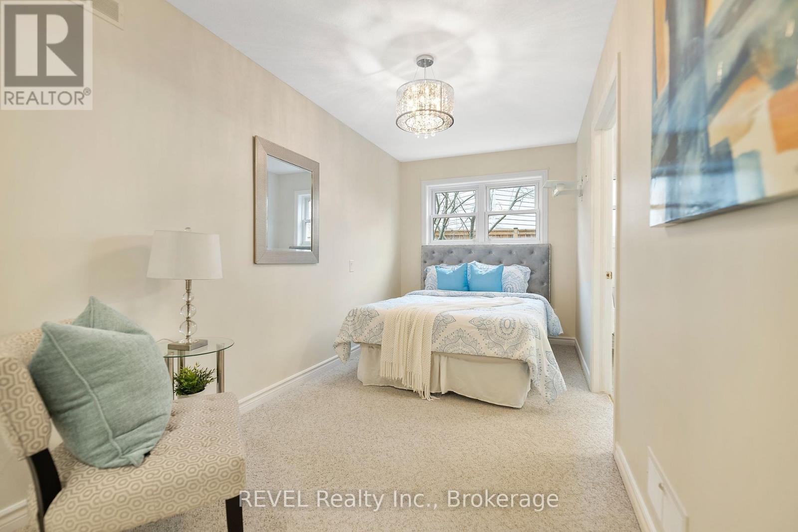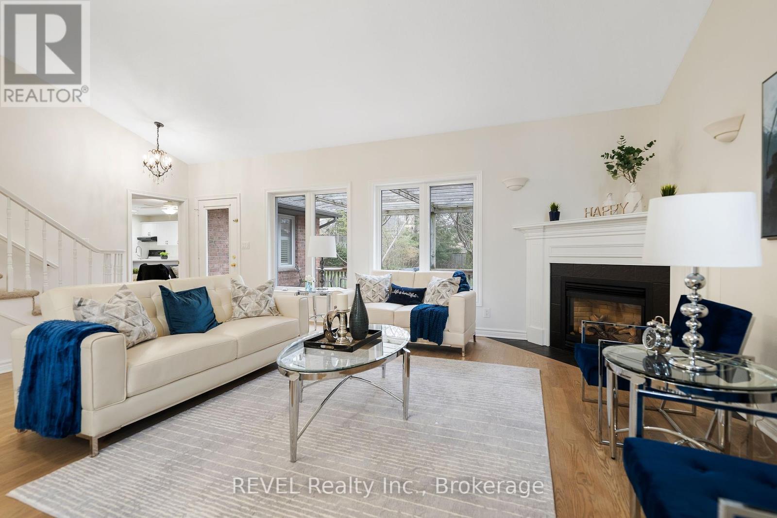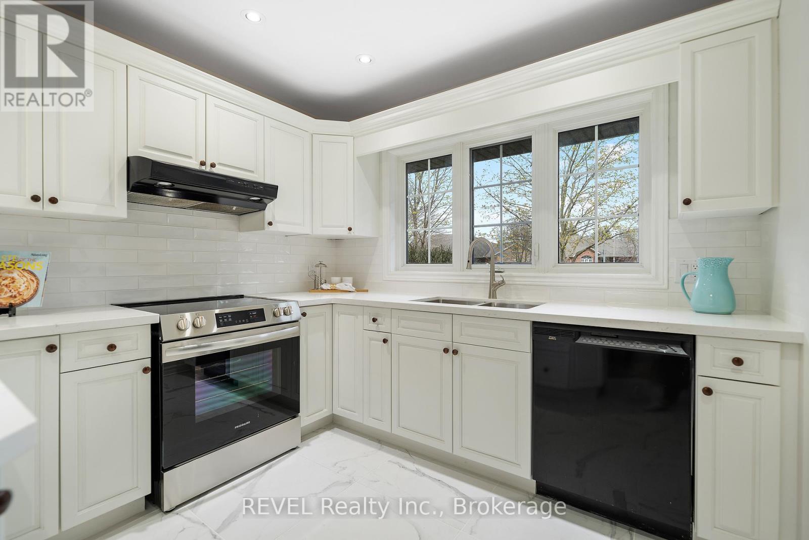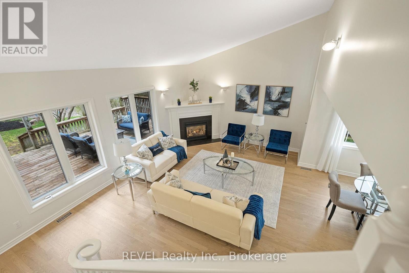 The most value on the market right now: a renovated gem in the heart of Niagara Falls with a MAIN FLOOR IN-LAW SUITE! This beautiful home offers approx 4000 sqft of living space, with 5+2 bdrms & 4 full baths. The main floor w/spacious, newly tiled foyer, gorgeous vaulted ceilings, & light-filled kitchen/Din/Liv Rm w/gas FP. Refinished hardwood, new carpet on stairs & new luxury plank vinyl flooring throughout, extra-wide staircase to the 2nd flr & perfect kitchen w/new quartz countertops, fridge, oven, dishwasher, tile flooring, backsplash, Abundant windows, open-concept living area. The MAIN FLOOR IN-LAW SUITE can be secured from the main house by a dbl-sided high-security deadbolt with a kitchen w/fridge, stove, dishwasher & breakfast bar, living rm, 3pc bath, carpeted bdrm, separate laundry closet, wide doorways, exterior accessible ramp, & access to attached garage. 2nd flr w/4 bdrms & 2 baths, including primary bdrm w/4pc ensuite including sep shower & whirlpool tub. The well-lit spacious lower level w/lrg windows & RecRm w/gas FP, full wet bar, 2 bdrms, full bath, laundry rm w/dryer & new washer, storage rm which can become an additional bedrm. Located in sought-after neighbourhood w/mature trees & landscaping, this unique home offers spacious yard perfect for children to play & room for an in-ground pool. Additional features: high-security Medeco locks, fenced yard, extra-lrg dbl car garage, interlock brick driveway, custom-built shed, & a massive entertainer's deck with a natural gas line. Recent renos include a separate water meter & Eyedro hydro meter (which allows remote electricity usage monitoring) to in-law suite, & new wiring to allow for installation of a separate electrical hot water meter. Home is zoned R1C, permitting single family occupancy & owner-occupied B&B usage. Enjoy peace & privacy of this quiet court, ideally located near schools, shopping, amenities, parks, transit, QEW - close to Lundy's Lane in the heart of the City of Niagara Falls! (id:51158)
