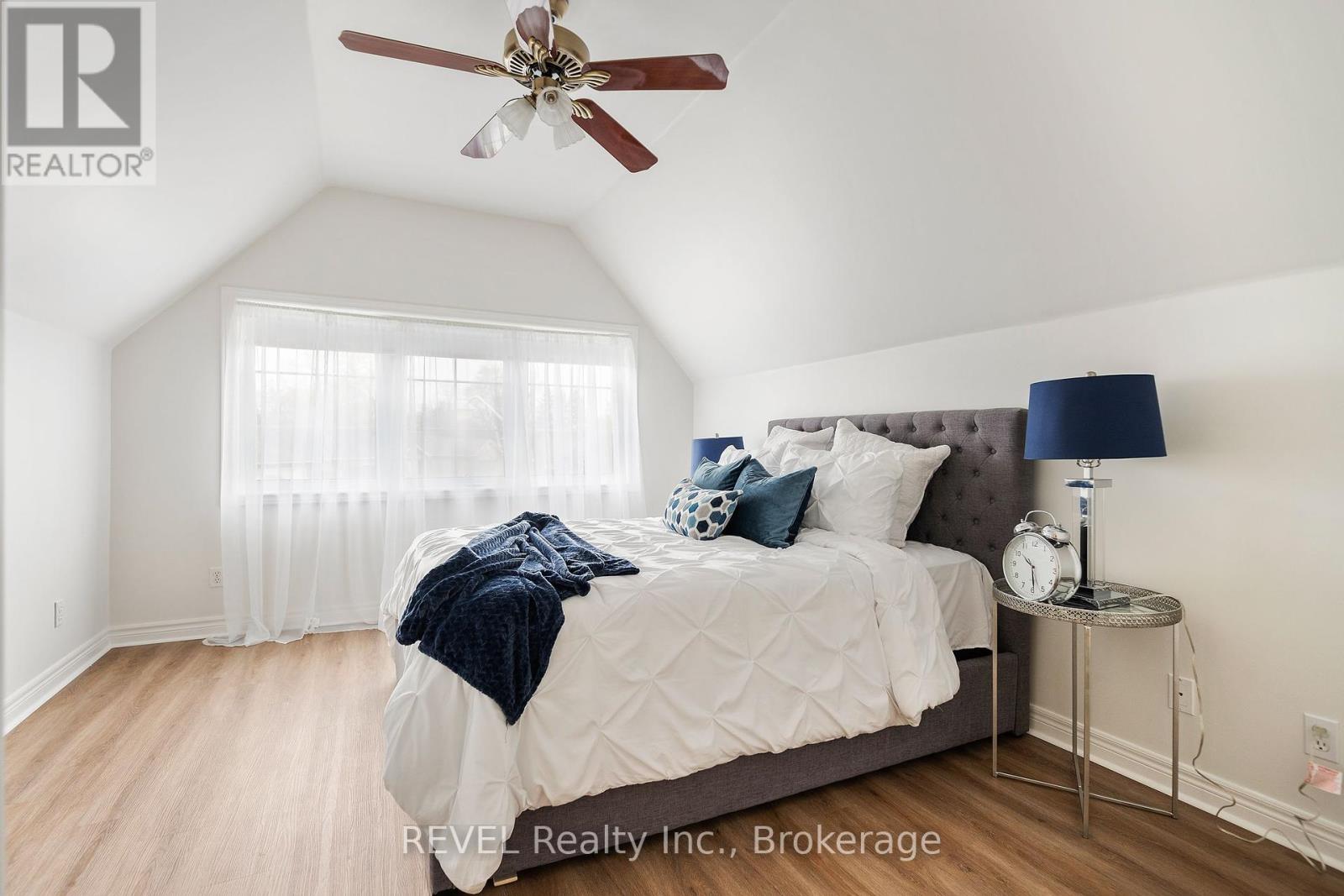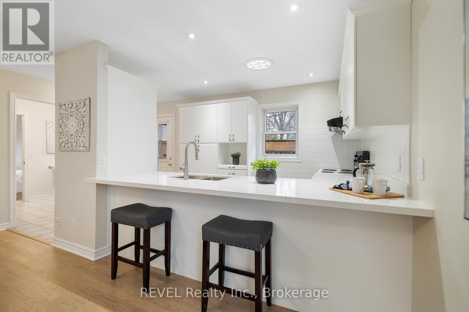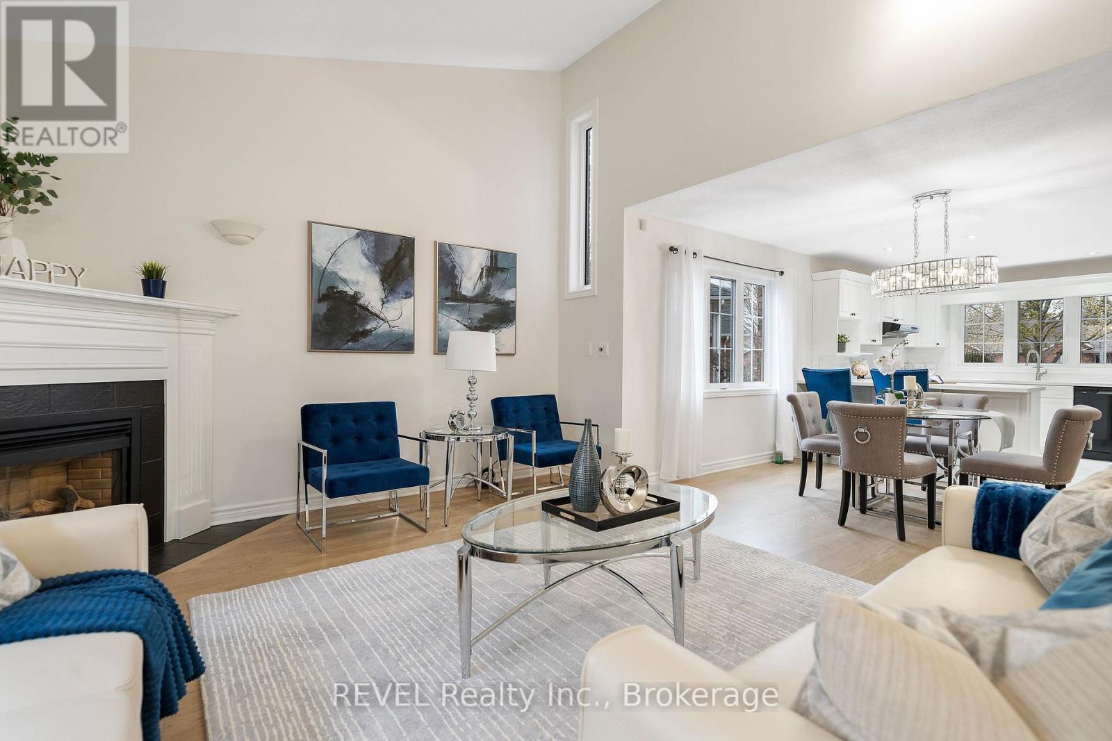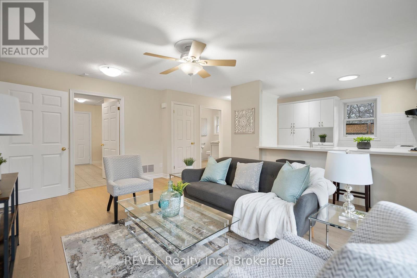 The most value on the market right now: a renovated gem in the heart of Niagara Falls with a MAIN FLOOR IN-LAW SUITE! This beautiful home offers approx 4000 sqft of living space, with 5+2 bdrms & 4 full baths. The main floor w/spacious, newly tiled foyer, gorgeous vaulted ceilings, & light-filled kitchen/Din/Liv Rm w/gas FP. Refinished hardwood, new carpet on stairs & new luxury plank vinyl flooring throughout, extra-wide staircase to the 2nd flr & perfect kitchen w/new quartz countertops, fridge, oven, dishwasher, tile flooring, backsplash, Abundant windows, open-concept living area. The MAIN FLOOR IN-LAW SUITE can be secured from the main house by a dbl-sided high-security deadbolt with a kitchen w/fridge, stove, dishwasher & breakfast bar, living rm, 3pc bath, carpeted bdrm, separate laundry closet, wide doorways, exterior accessible ramp, & access to attached garage. 2nd flr w/4 bdrms & 2 baths, including primary bdrm w/4pc ensuite including sep shower & whirlpool tub. The well-lit spacious lower level w/lrg windows & RecRm w/gas FP, full wet bar, 2 bdrms, full bath, laundry rm w/dryer & new washer, storage rm which can become an additional bedrm. Located in sought-after neighbourhood w/mature trees & landscaping, this unique home offers spacious yard perfect for children to play & room for an in-ground pool. Additional features: high-security Medeco locks, fenced yard, extra-lrg dbl car garage, interlock brick driveway, custom-built shed, & a massive entertainer's deck with a natural gas line. Recent renos include a separate water meter & Eyedro hydro meter (which allows remote electricity usage monitoring) to in-law suite, & new wiring to allow for installation of a separate electrical hot water meter. Home is zoned R1C, permitting single family occupancy & owner-occupied B&B usage. Enjoy peace & privacy of this quiet court, ideally located near schools, shopping, amenities, parks, transit, QEW - close to Lundy's Lane in the heart of the City of Niagara Falls! (id:51158)