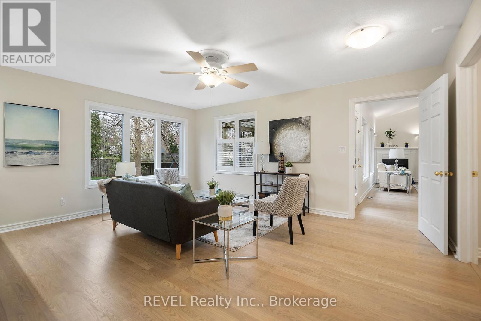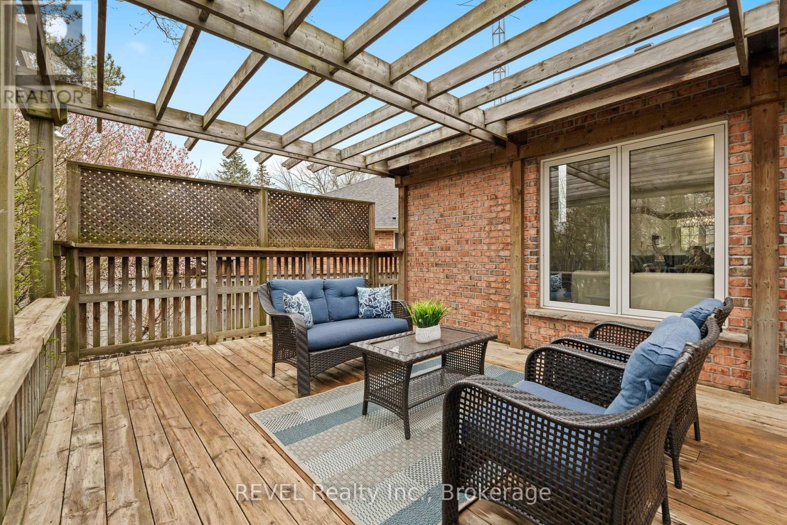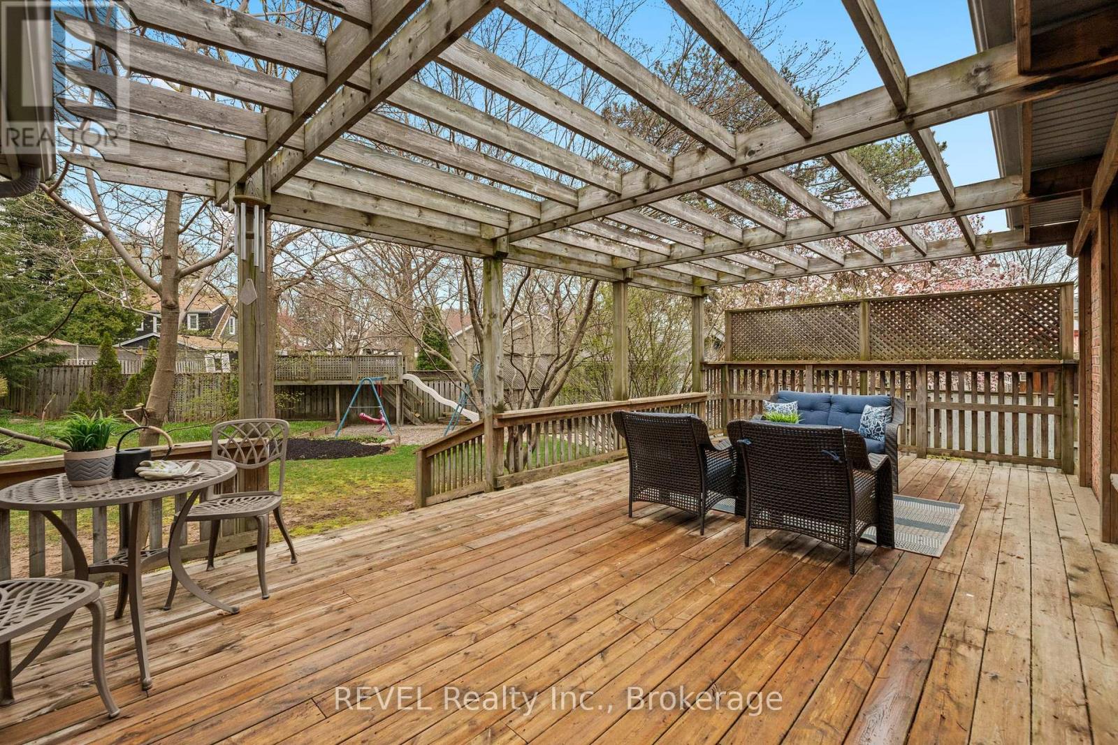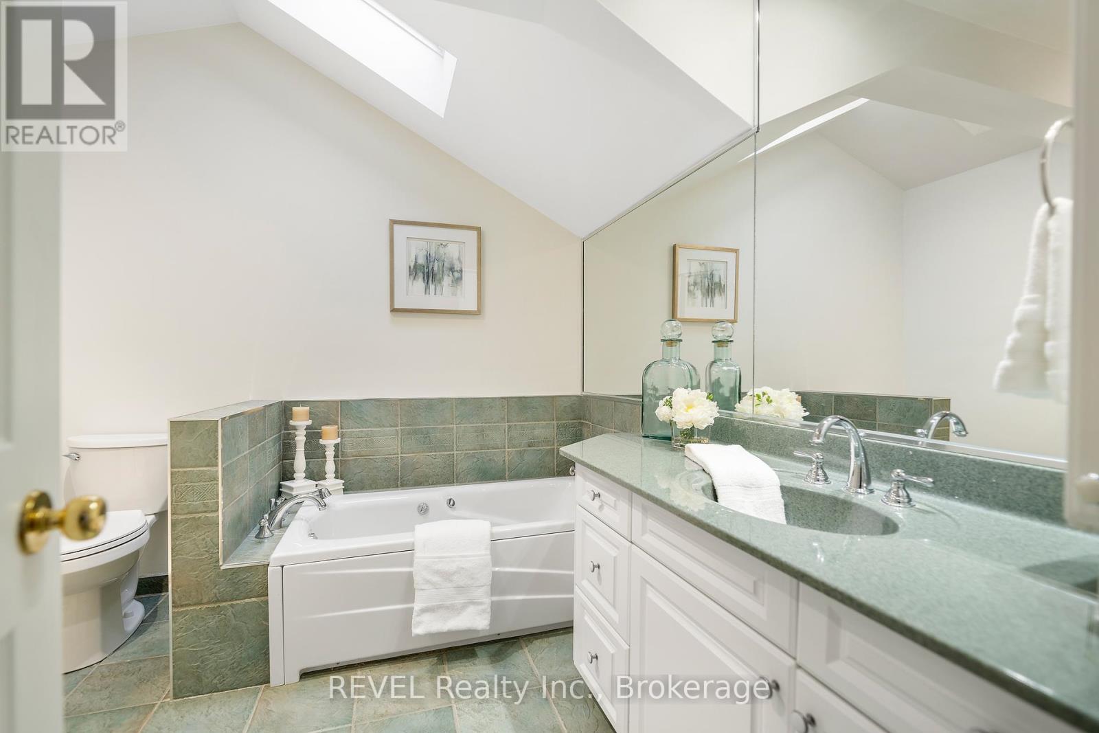 The most value on the market right now: a renovated gem in the heart of Niagara Falls with a MAIN FLOOR IN-LAW SUITE! This beautiful home offers approx 4000 sqft of living space, with 5+2 bdrms & 4 full baths. The main floor w/spacious, newly tiled foyer, gorgeous vaulted ceilings, & light-filled kitchen/Din/Liv Rm w/gas FP. Refinished hardwood, new carpet on stairs & new luxury plank vinyl flooring throughout, extra-wide staircase to the 2nd flr & perfect kitchen w/new quartz countertops, fridge, oven, dishwasher, tile flooring, backsplash, Abundant windows, open-concept living area. The MAIN FLOOR IN-LAW SUITE can be secured from the main house by a dbl-sided high-security deadbolt with a kitchen w/fridge, stove, dishwasher & breakfast bar, living rm, 3pc bath, carpeted bdrm, separate laundry closet, wide doorways, exterior accessible ramp, & access to attached garage. 2nd flr w/4 bdrms & 2 baths, including primary bdrm w/4pc ensuite including sep shower & whirlpool tub. The well-lit spacious lower level w/lrg windows & RecRm w/gas FP, full wet bar, 2 bdrms, full bath, laundry rm w/dryer & new washer, storage rm which can become an additional bedrm. Located in sought-after neighbourhood w/mature trees & landscaping, this unique home offers spacious yard perfect for children to play & room for an in-ground pool. Additional features: high-security Medeco locks, fenced yard, extra-lrg dbl car garage, interlock brick driveway, custom-built shed, & a massive entertainer's deck with a natural gas line. Recent renos include a separate water meter & Eyedro hydro meter (which allows remote electricity usage monitoring) to in-law suite, & new wiring to allow for installation of a separate electrical hot water meter. Home is zoned R1C, permitting single family occupancy & owner-occupied B&B usage. Enjoy peace & privacy of this quiet court, ideally located near schools, shopping, amenities, parks, transit, QEW - close to Lundy's Lane in the heart of the City of Niagara Falls! (id:51158)