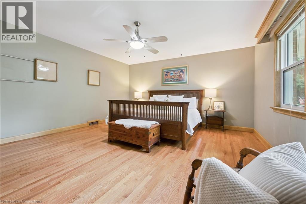 Welcome home to 688 Rockway Drive, where timeless charm meets a beautiful and peaceful setting. A landscaped front yard, flagstone walkway and patio lead you into the foyer of this brick 2500+sf, 3+ bedroom, 3-bath home bursting with character and craftsmanship. The impressive great room features a wood-burning fireplace with oak and marble detail, a large picture window, and plenty of space for both living and dining. The kitchen feels instantly inviting, with warm wood cabinetry and a bright dinette that walks out to a multi-tiered deck overlooking the yard backing directly onto Rockway Gardens. The main floor further hosts a spacious primary bedroom, a large main bathroom, a wood-panelled office that ties beautifully into the fireplace detail, and a versatile family room for flexible living. A great bonus to offset monthly expenses are the owned solar panels generating approx $4,000 annually. Carpet-free (except for the stairs) and featuring mostly hardwood floors throughout the main and upper levels, this home is filled with natural light from many large windows. Upstairs, you’ll find two generous bedrooms, a full bath, extra closets, a large storage space along the front of the home, and a handy laundry chute accessible from both levels. The finished lower level offers a walkout to a private patio and has been professionally designed as a 1–2 bedroom in-law suite. Additionally this level provides multiple storage rooms and a large utility room with a workshop area. A single-car garage provides inside access and another storage room off the garage. Updates include furnace (2021), A/C (2016), and many windows throughout. Set just up the street from Rockway Golf Course’s clubhouse and framed by the beauty of Rockway Gardens, this home feels like an escape from the city — yet close to all amenities and easy highway access. Lovingly maintained by the same owners for 35 years, this must see home presents an incredible opportunity in a truly special location. (id:51158)
