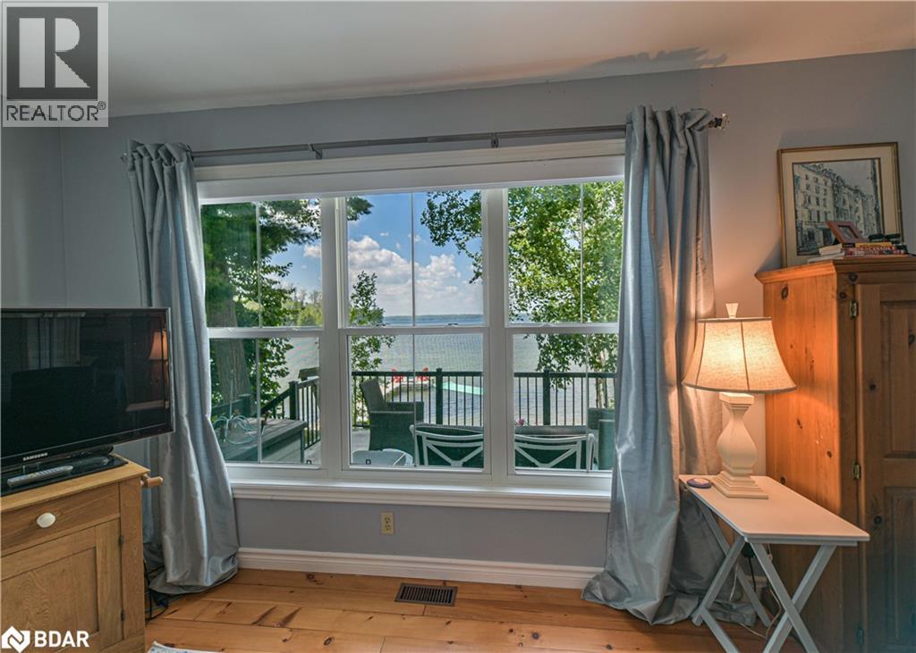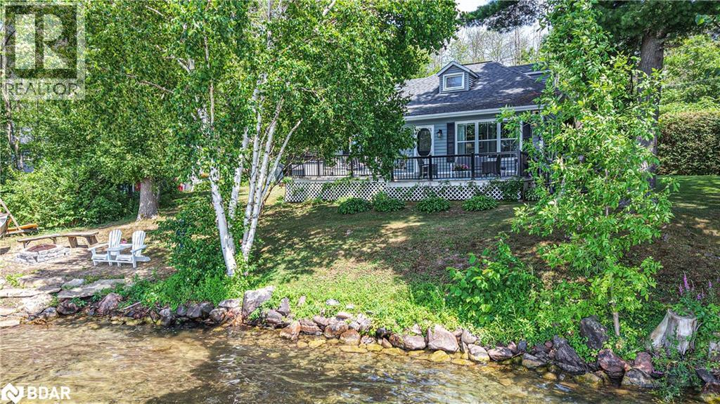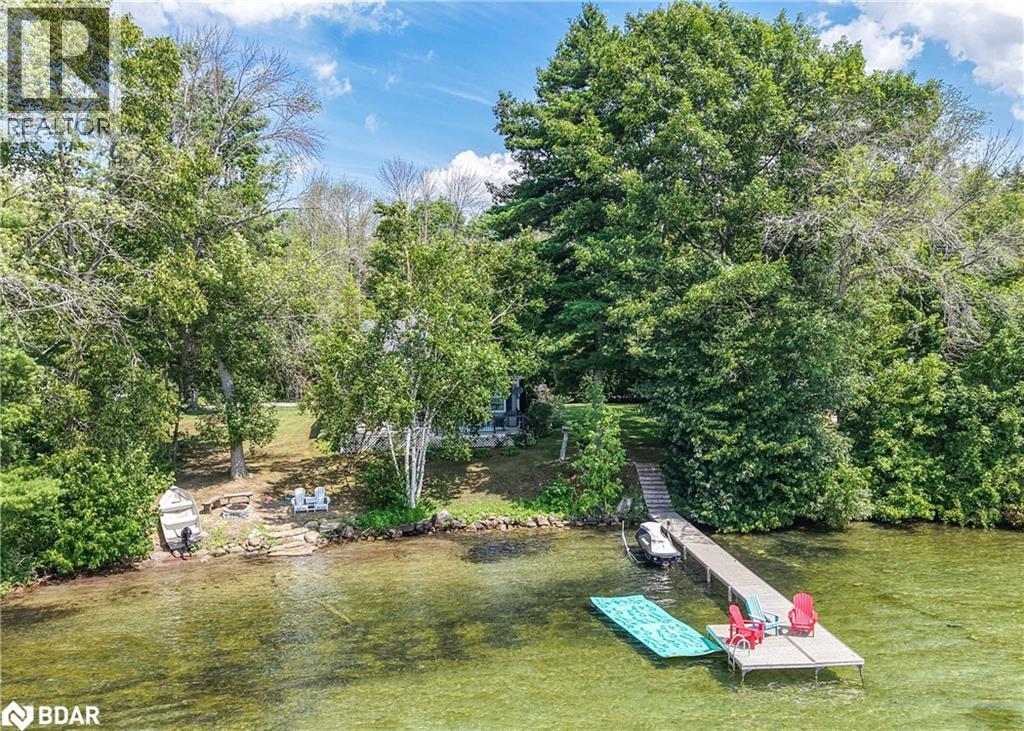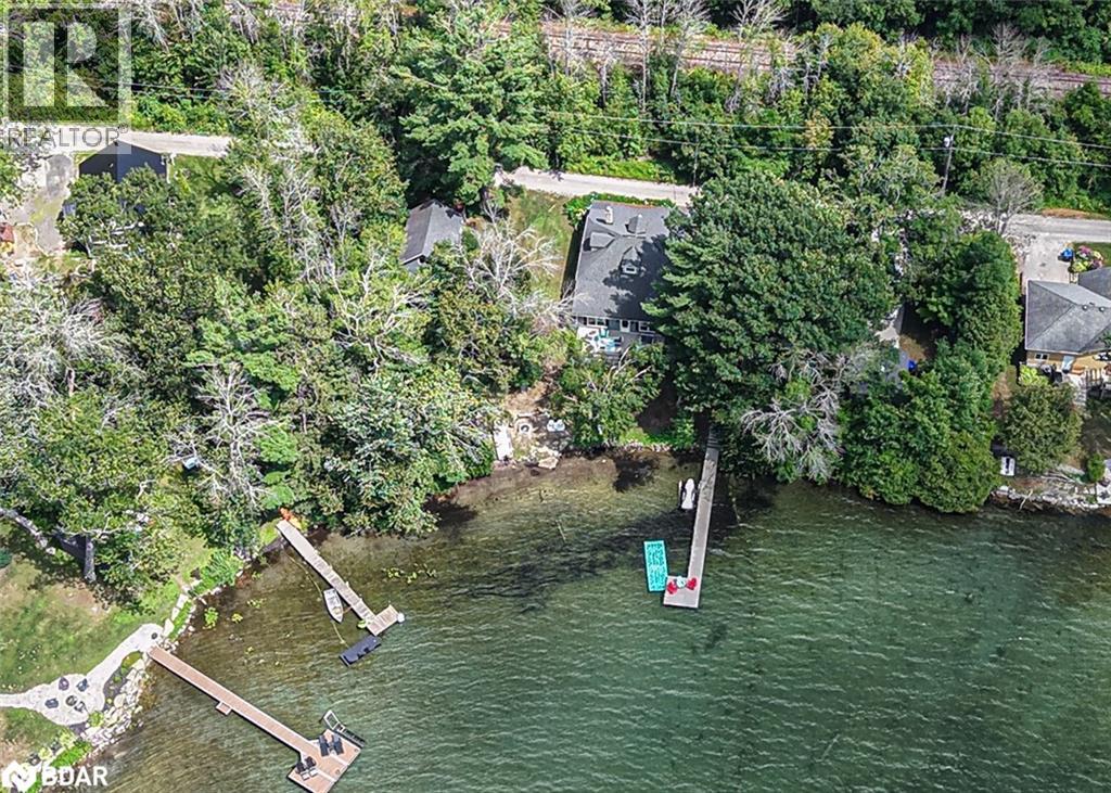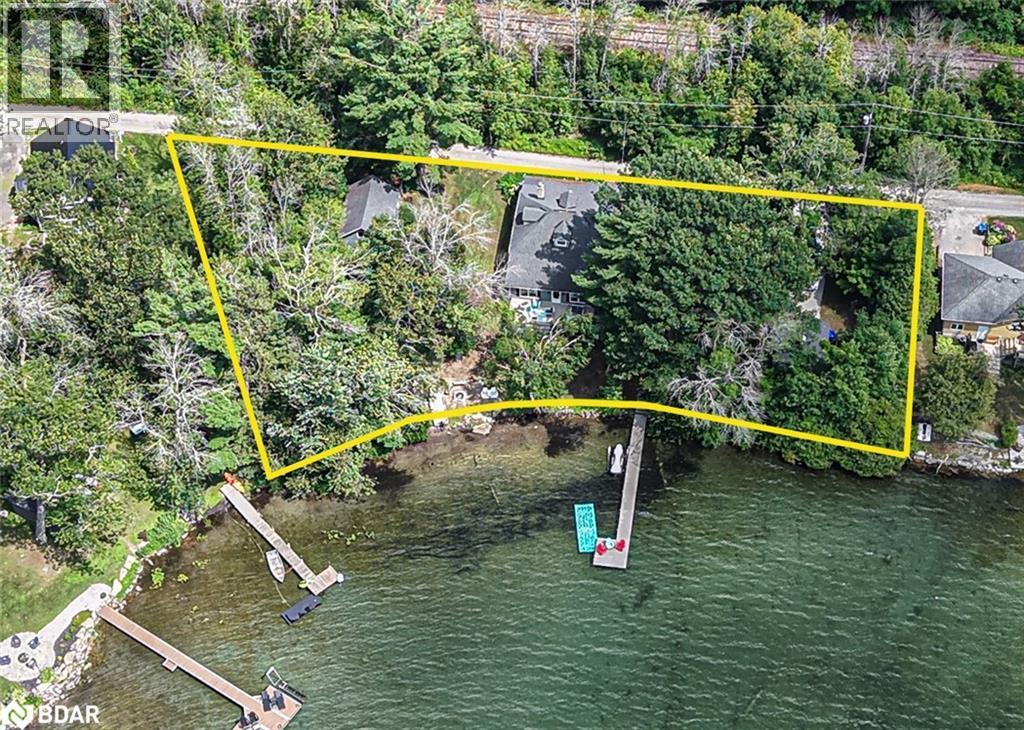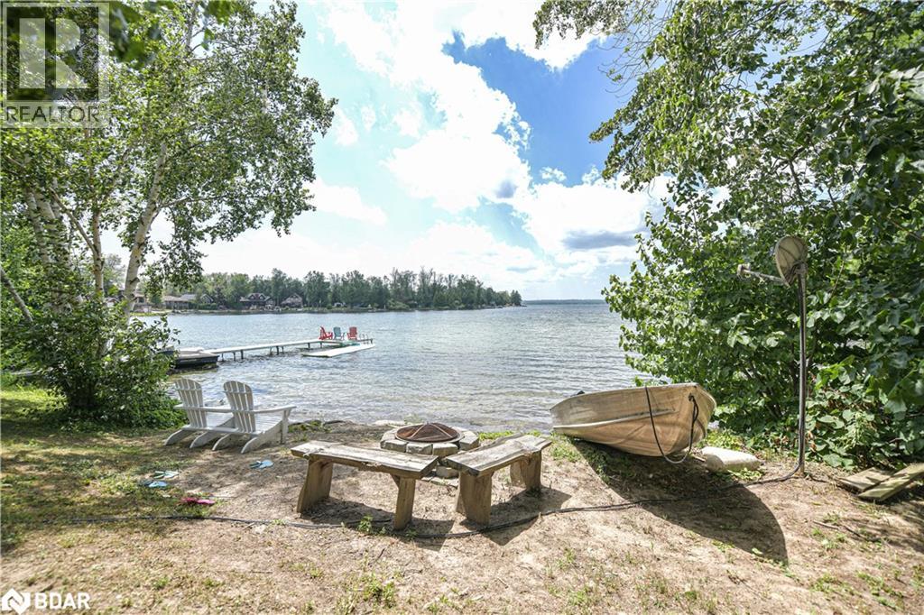 Welcome to a truly special Lake Couchiching property! Originally built in the 1920's this one of a kind home has been thoughtfully expanded blending rustic charm w/modern comforts. Nestled in a quiet bay with over 200' of waterfront, the setting is perfect for anyone seeking privacy, tranquility and family friendly outdoor living. Step inside to a spacious kitchen featuring soaring 10' ceilings, newer appliances, + a large 9'x4' island--ideal for gathering with friends and family. The Living room impresses with 10' ceiiings, a fireplace, crown molding and wainscotting, creating a welcoming atmosphere. A cozy TV room offers a spectacular view of the water making it the perfect spot to relax after a day on the Lake or in the City! This home offers, 2 main floor bedrooms, updated bathrooms, with a mix of engineered hardwood and pine flooring. Upstairs, the large open loft area offers flexibility--could be easily converted into 2 additional bedrooms. On the property you will also find a converted barn, now being used as a multipurpose games room/studio/bunkie--ideal space for the teenagers. The waterfront is shallow at shoreline with hard packed sand and a beach area--perfect for young children. Whether you are swimming, boating or fishing or just enjoying the view, this is the place for memory making!Minutes to Washago, 15 to Orillia and 90 min to GTA. (id:51158)