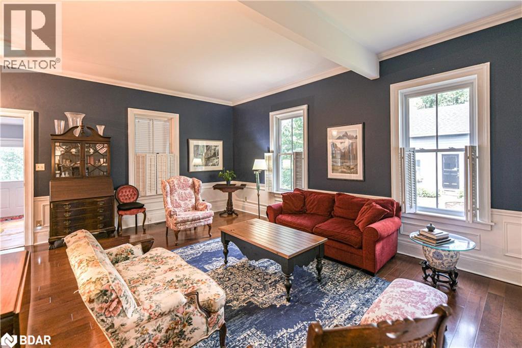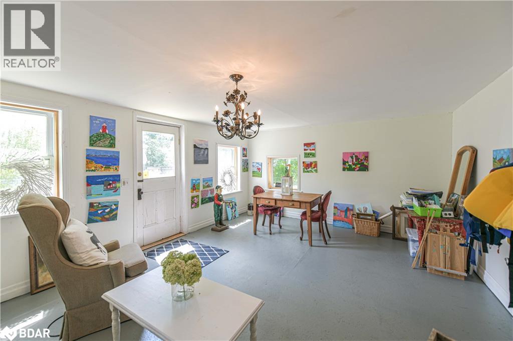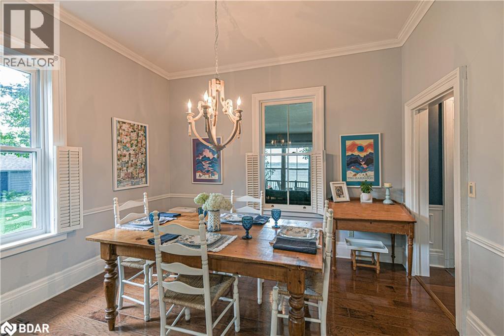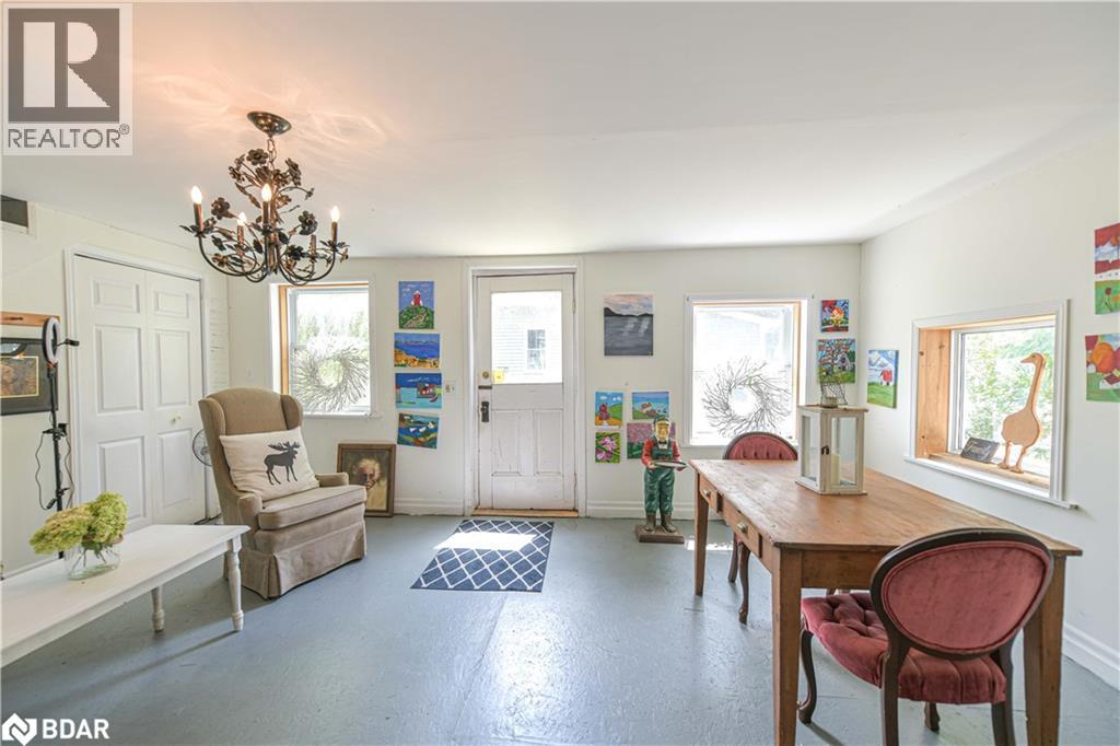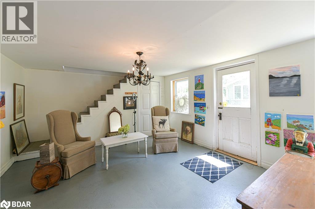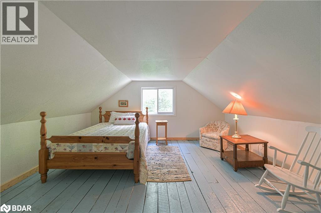 Welcome to a truly special Lake Couchiching property! Originally built in the 1920's this one of a kind home has been thoughtfully expanded blending rustic charm w/modern comforts. Nestled in a quiet bay with over 200' of waterfront, the setting is perfect for anyone seeking privacy, tranquility and family friendly outdoor living. Step inside to a spacious kitchen featuring soaring 10' ceilings, newer appliances, + a large 9'x4' island--ideal for gathering with friends and family. The Living room impresses with 10' ceiiings, a fireplace, crown molding and wainscotting, creating a welcoming atmosphere. A cozy TV room offers a spectacular view of the water making it the perfect spot to relax after a day on the Lake or in the City! This home offers, 2 main floor bedrooms, updated bathrooms, with a mix of engineered hardwood and pine flooring. Upstairs, the large open loft area offers flexibility--could be easily converted into 2 additional bedrooms. On the property you will also find a converted barn, now being used as a multipurpose games room/studio/bunkie--ideal space for the teenagers. The waterfront is shallow at shoreline with hard packed sand and a beach area--perfect for young children. Whether you are swimming, boating or fishing or just enjoying the view, this is the place for memory making!Minutes to Washago, 15 to Orillia and 90 min to GTA. (id:51158)