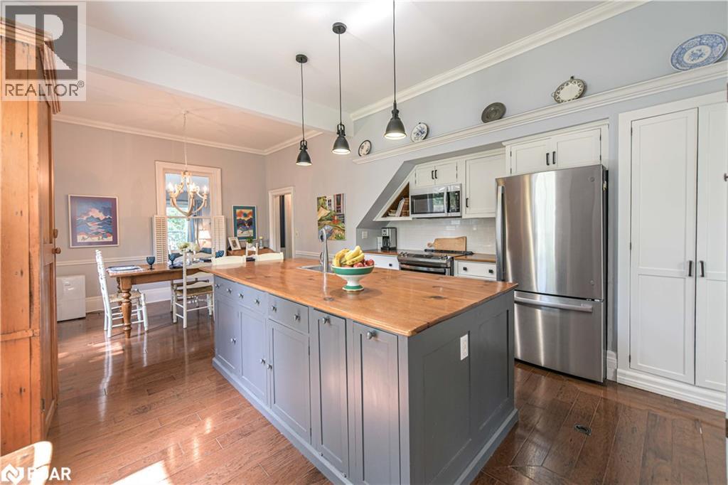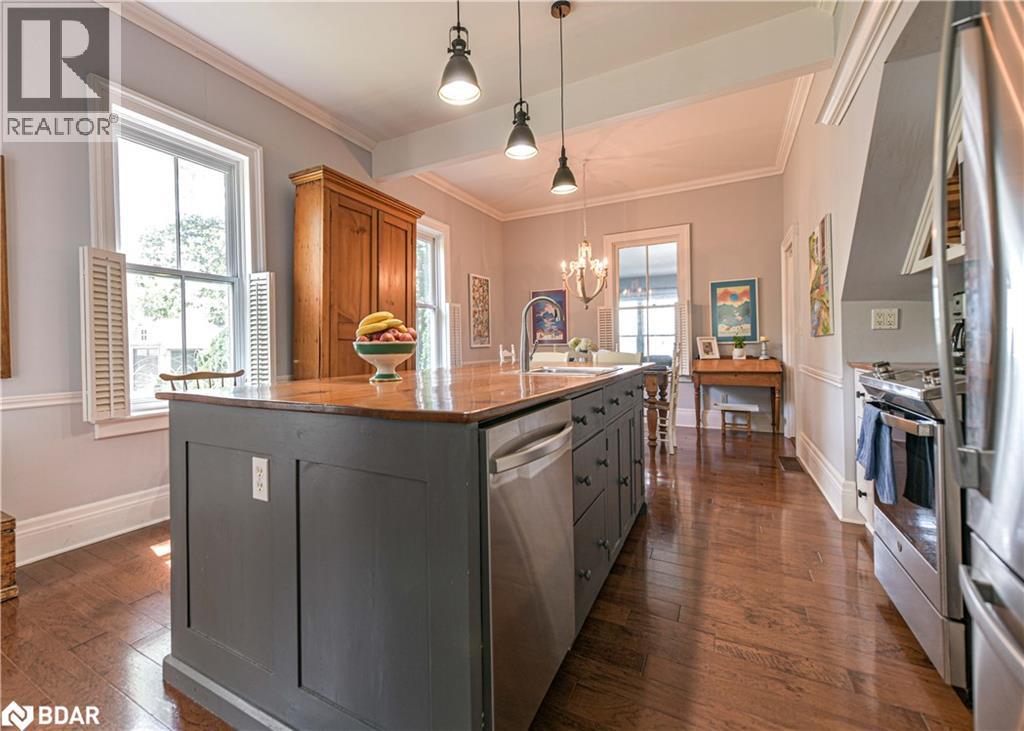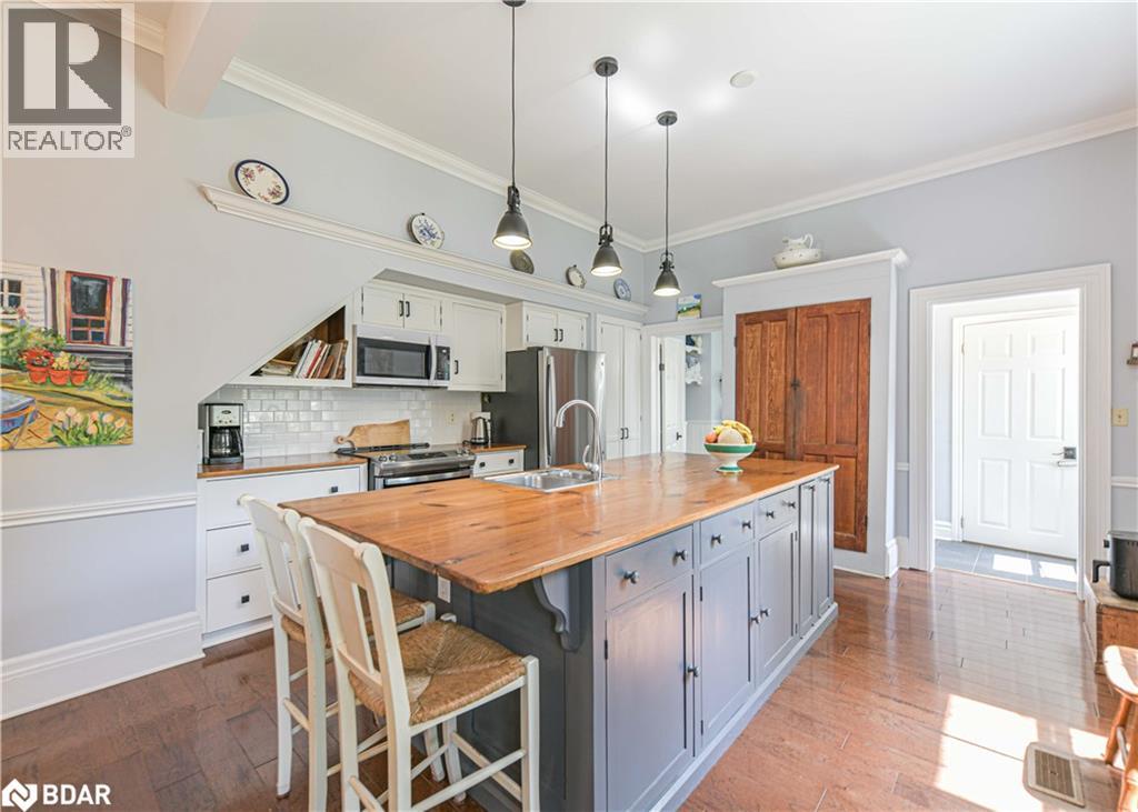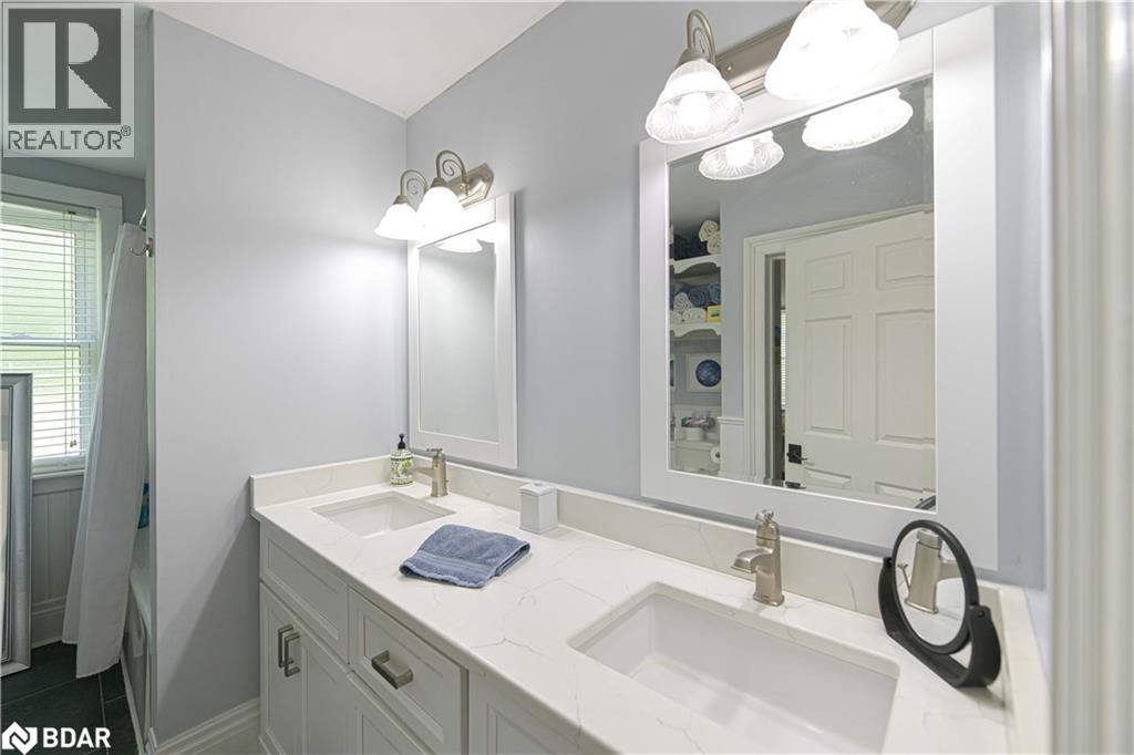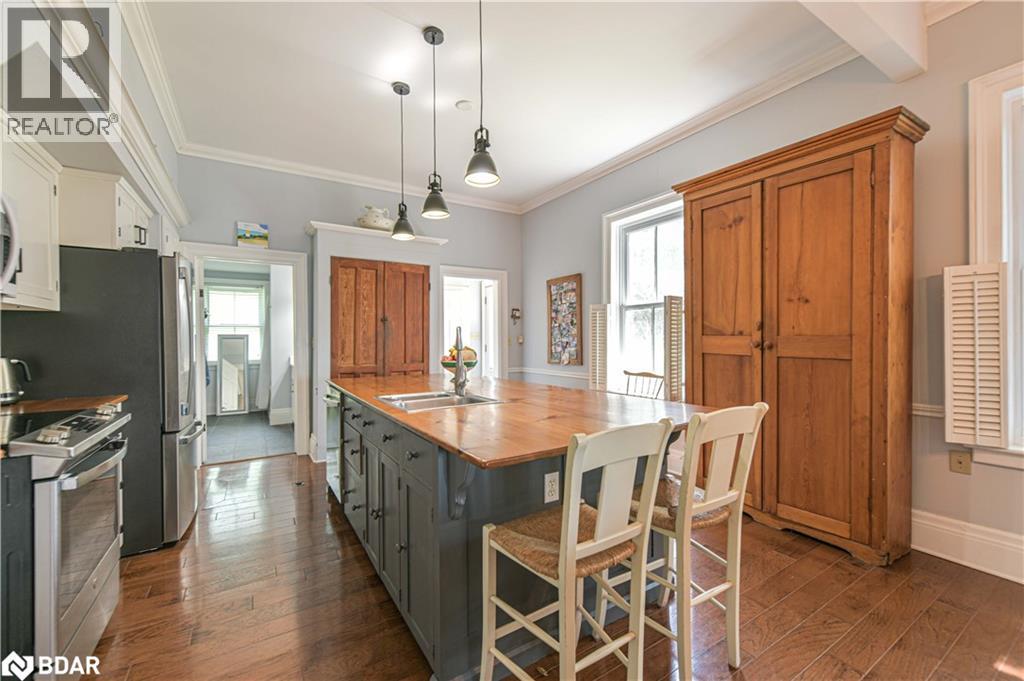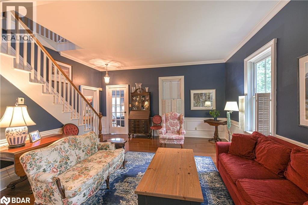 Welcome to a truly special Lake Couchiching property! Originally built in the 1920's this one of a kind home has been thoughtfully expanded blending rustic charm w/modern comforts. Nestled in a quiet bay with over 200' of waterfront, the setting is perfect for anyone seeking privacy, tranquility and family friendly outdoor living. Step inside to a spacious kitchen featuring soaring 10' ceilings, newer appliances, + a large 9'x4' island--ideal for gathering with friends and family. The Living room impresses with 10' ceiiings, a fireplace, crown molding and wainscotting, creating a welcoming atmosphere. A cozy TV room offers a spectacular view of the water making it the perfect spot to relax after a day on the Lake or in the City! This home offers, 2 main floor bedrooms, updated bathrooms, with a mix of engineered hardwood and pine flooring. Upstairs, the large open loft area offers flexibility--could be easily converted into 2 additional bedrooms. On the property you will also find a converted barn, now being used as a multipurpose games room/studio/bunkie--ideal space for the teenagers. The waterfront is shallow at shoreline with hard packed sand and a beach area--perfect for young children. Whether you are swimming, boating or fishing or just enjoying the view, this is the place for memory making!Minutes to Washago, 15 to Orillia and 90 min to GTA. (id:51158)