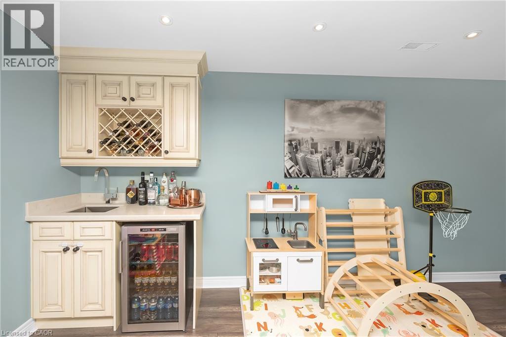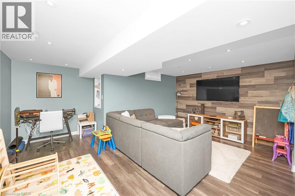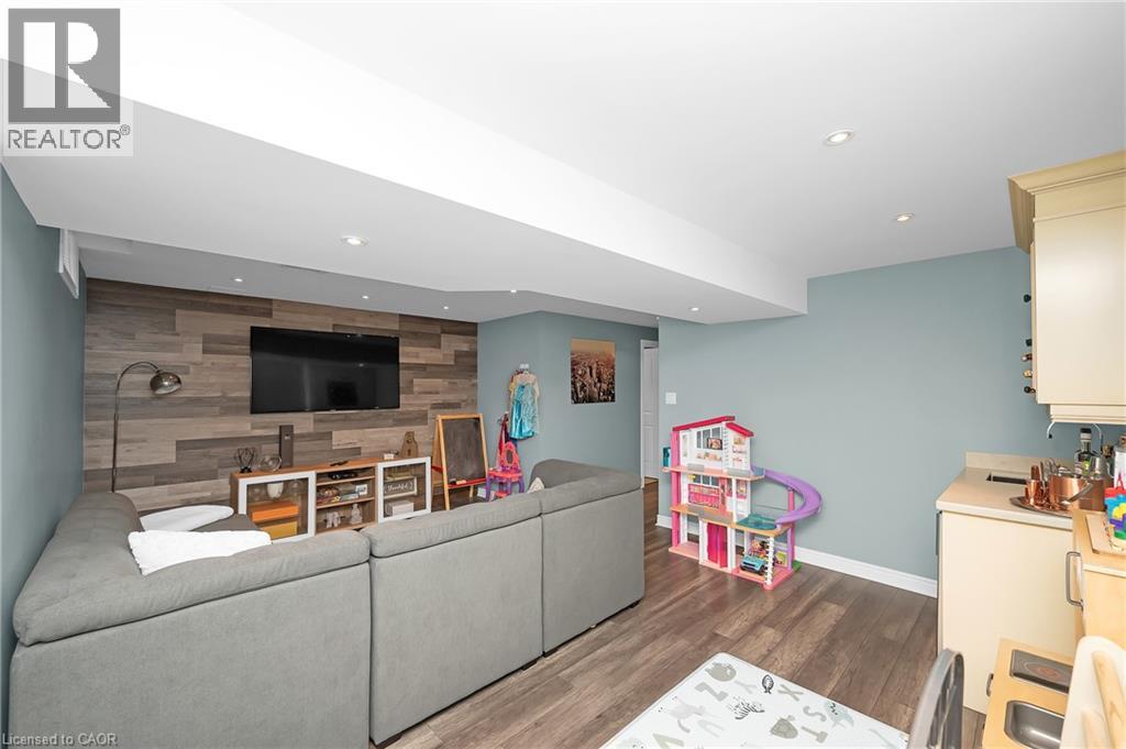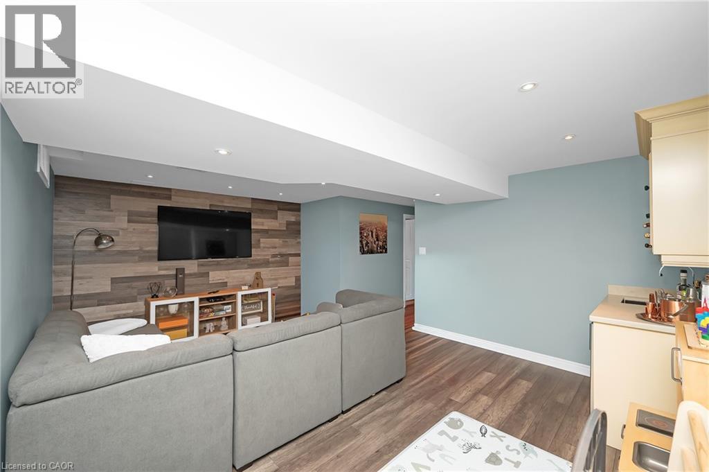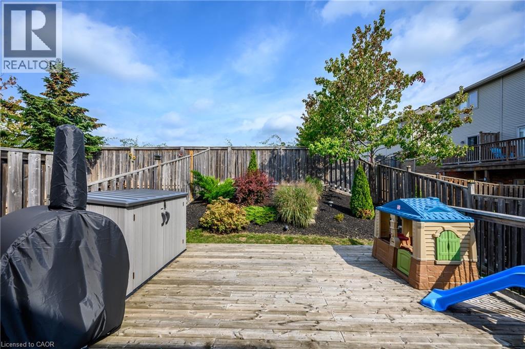 This freehold end unit is a turn key offering1549sq ft townhome close to fifty road with easy access to the highway Bright open concept layout with neutral colours. Granite countertops, hardwood floors, large eat in kitchen with sliding patio doors that lead to 500sq ft deck and fenced yard with a natural gas hook up perfect for entertaining guests. There is a cement walkway along the side of the home which allows easy access to and from the backyard. 3 bedrooms on the second level and one full bath with the master having a walk-in closet. Oversized second level laundry room with a sink. The basement is finished with a full bathroom, storage room and recreation room that includes a wet bar with granite countertops. 69 Escarpment drive is situated near all amenities including: tremendous schools, Costco, shopping plaza, restaurants, parks, fifty-point conservation. (id:51158)