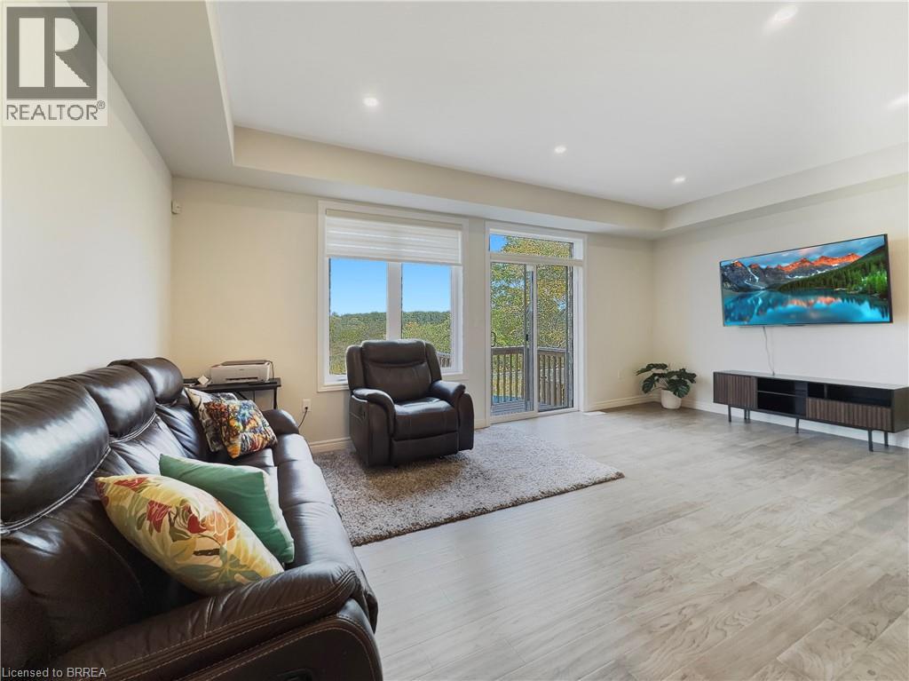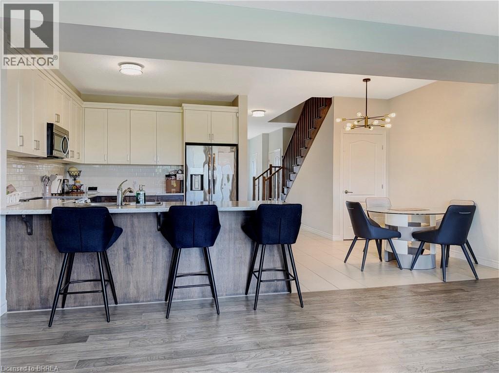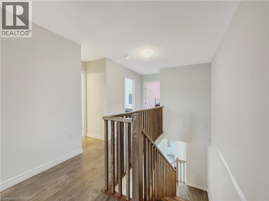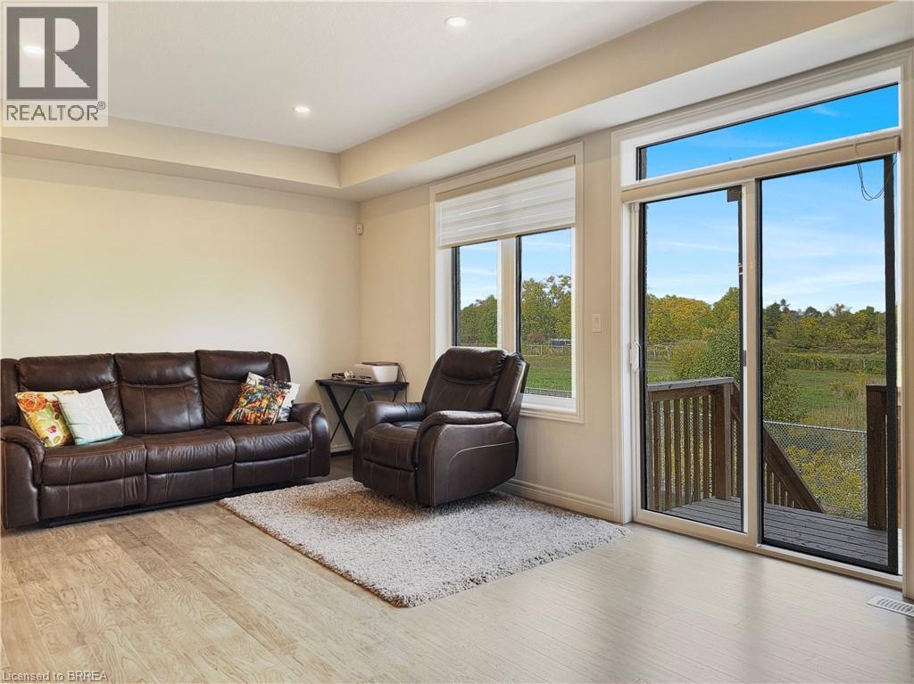 Welcome to 69 Lloyd Davies Way, a stunning townhouse in Binbrook that still feels brand new. The main floor features an open-concept layout with a modern kitchen boasting two-tone shaker cabinets with crown moulding, stainless steel appliances, and plenty of space for a dining table, all flowing seamlessly into the bright living room with engineered hardwood, pot lights, large windows, and access to a private deck overlooking green space. The main level also features a convenient two-piece bathroom a large coat closet and access to the garage. Upstairs, a solid oak staircase leads to a spacious landing and a luxurious primary suite with double doors, a walk-in closet, and a beautifully upgraded ensuite with double sinks and a glass shower, along with two additional bright bedrooms and a full four-piece bathroom. With a single-car garage, full basement ready for your personal touch, and a prime location close to parks, schools, amenities, a short drive to the Red Hill Valley Parkway, and the Linc for easy commuting, this home combines style, comfort, and convenience in one perfect package. (id:51158)