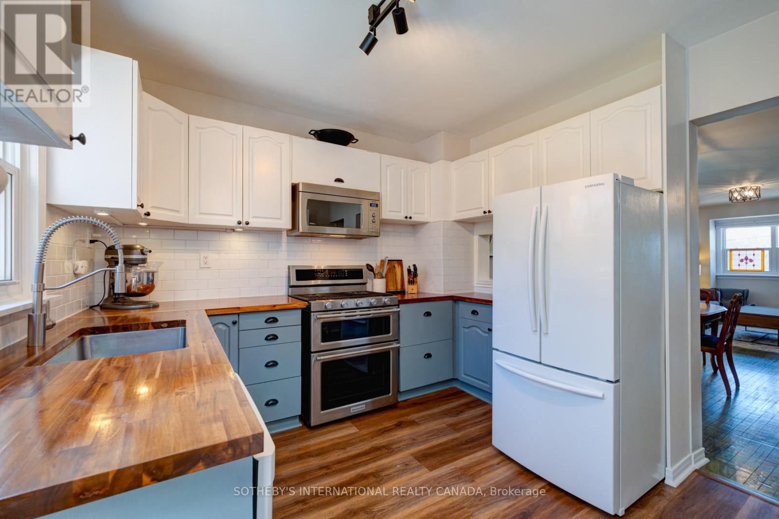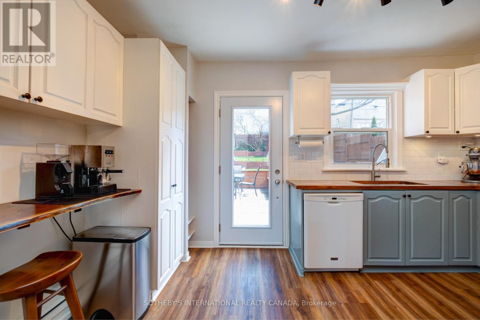 Beautifully appointed detached home in the popular Clairlea neighborhood. This home features three bedrooms, two bathrooms, one with heated floors and parking. The large, bright primary bedroom easily fits a king-size bed and includes ample closet space and hardwood floors. The other two bedrooms are perfect as children's rooms or offer the flexibility to be used as a home office, also with hardwood floors. Spacious, open-concept living and dining area, perfect for entertaining, and a total cook's kitchen with a coffee bar and a walkout to a large, tiered, lovely yard. The lower level includes a three-piece washroom, plenty of storage, and ample space for a potential rec room or living area, currently used as exercise and storage space. No contracts here the mechanical is all owned, two Mitsubishi mini-split ac/heat units w/ heat pump and a Rinnai combi boiler. This home is within walking distance of the TTC & Victoria Park Subway and close to the golf course and Taylor Creek Park. (id:51158)