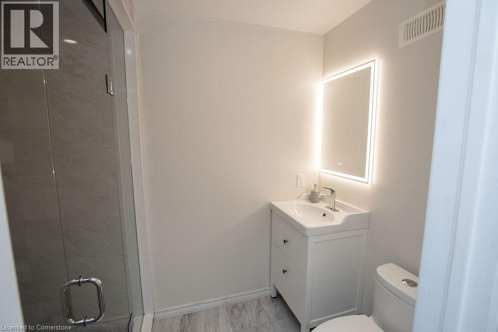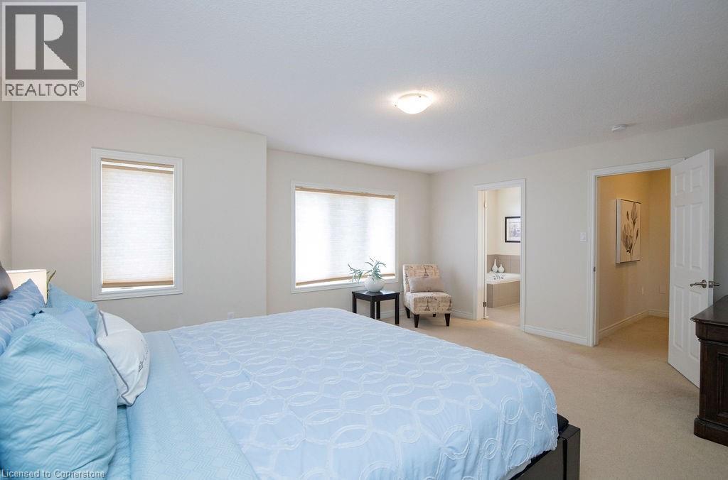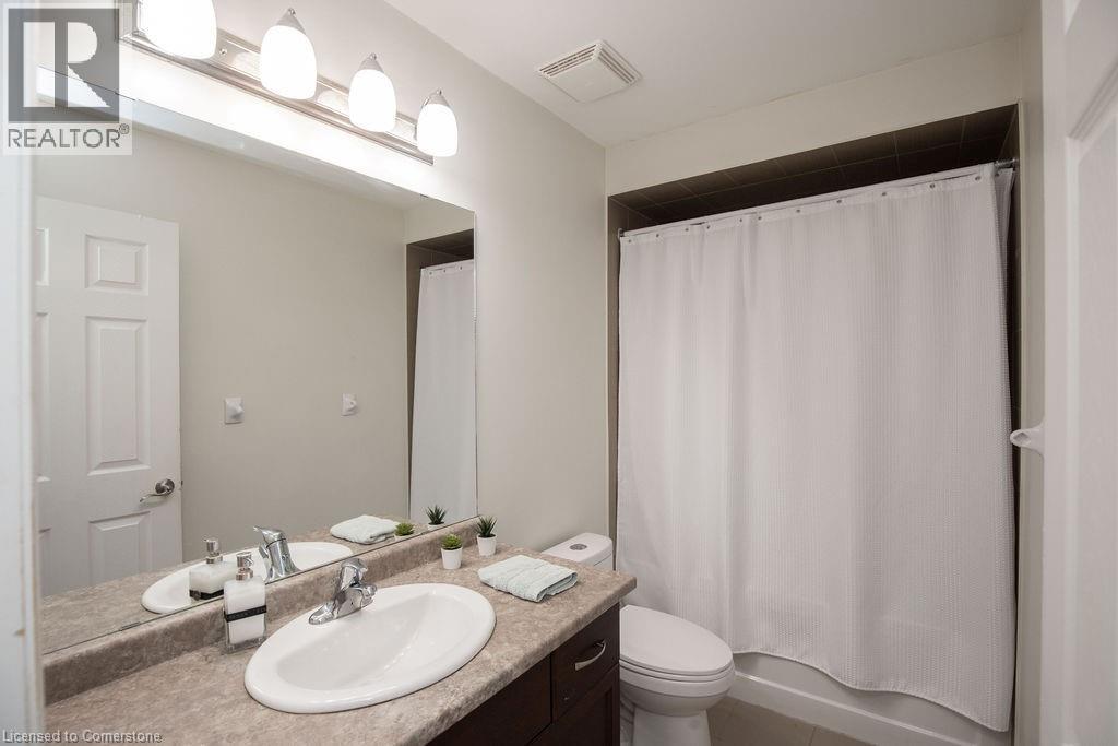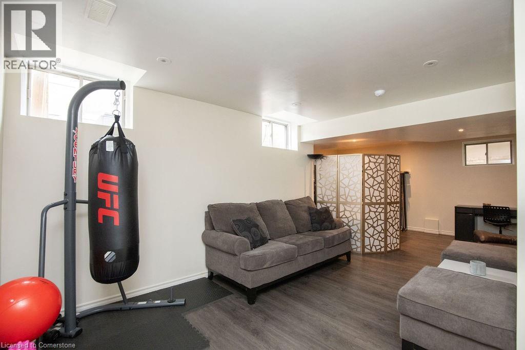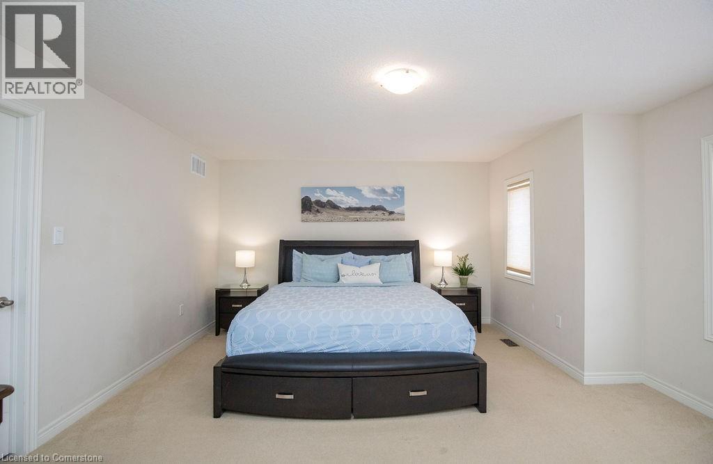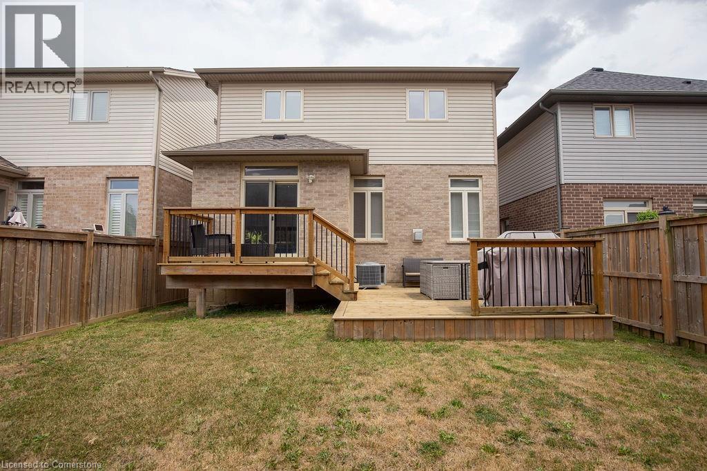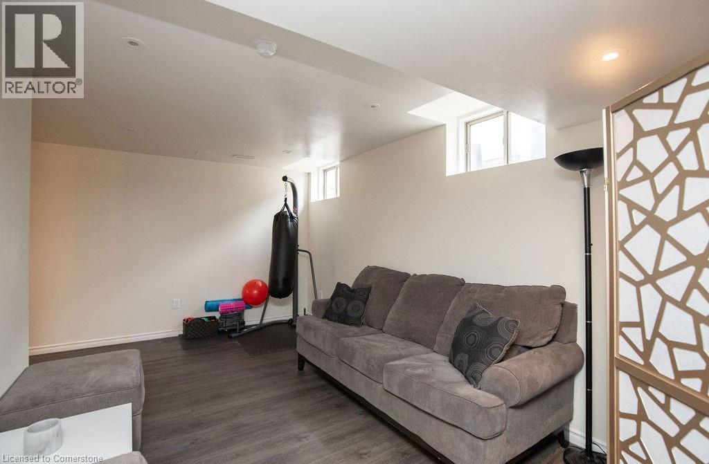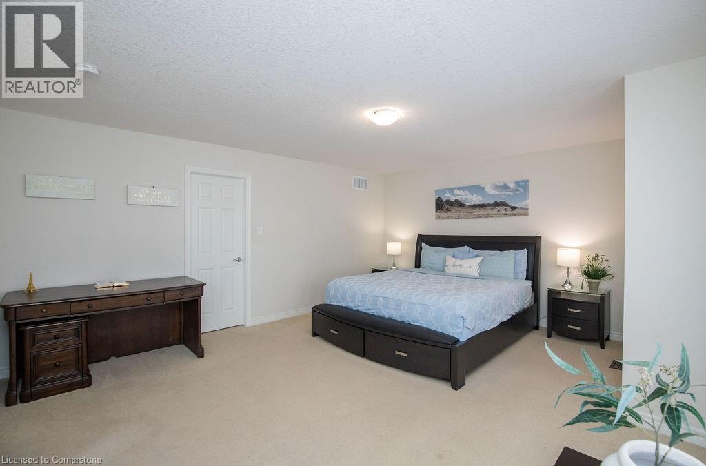 Welcome to this beautifully designed 4-bedroom, 3.5-bathroom home, nestled in the family-friendly Paramount at Valley Park community. This spacious, split-level residence provides a layout that blends comfort, privacy, and practical living ideal for busy suburban families. Step into a welcoming main level featuring a solid oak staircase, 9-foot California knockdown ceilings, and a spacious living room with a cozy gas fireplace. The open-concept kitchen is both functional and stylish, boasting solid maple cabinetry, a breakfast bar, ceramic tile flooring, a walk-in pantry, and an eat-in dinette with patio sliders and transom window leading to the backyard. Upstairs, the private primary suite occupies its own level for added separation and comfort, featuring a large bedroom with broadloom carpet, a walk-in closet, and a spacious ensuite with soaker tub and oak vanity. Three additional generously sized bedrooms, each with ample closet space, share a 4-piece bathroom with tiled tub surround. The finished basement extends your living space with a large recreation room, modern 3-piece bathroom with a glass shower, and plenty of storage. Located in a sought-after neighbourhood known for its great schools, parks, trails, shopping, and quick access to the Red Hill Valley Parkway, this is the perfect blend of suburban convenience and family-focused living. (id:51158)