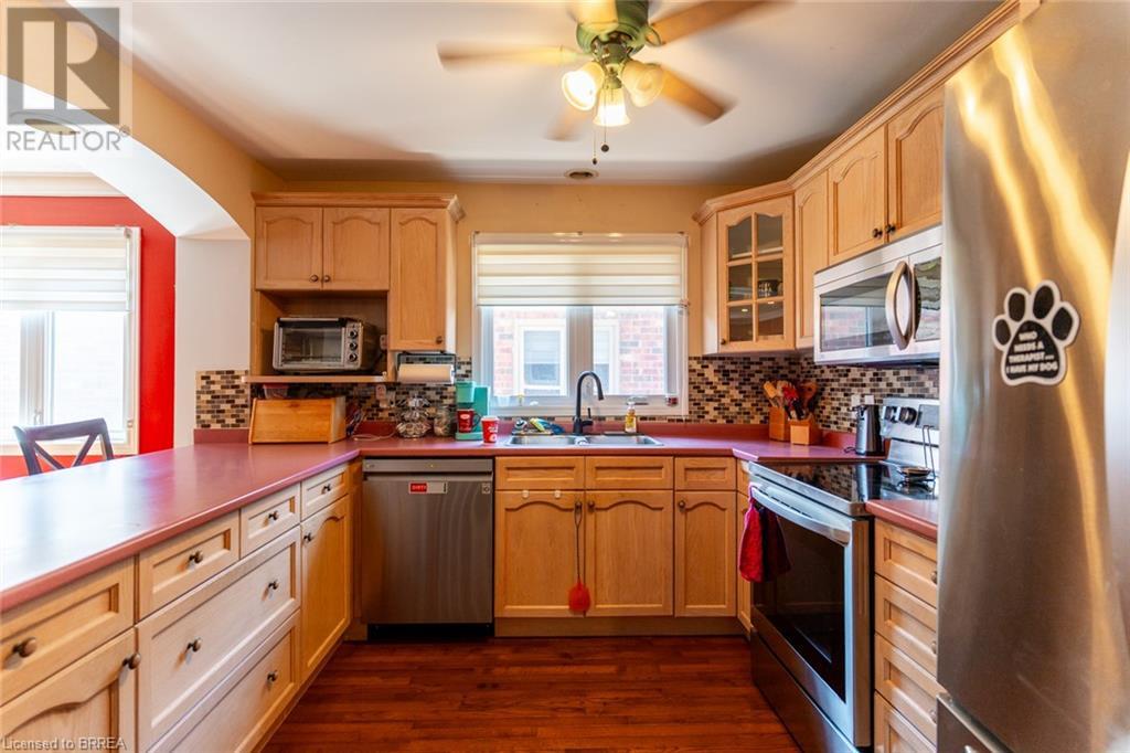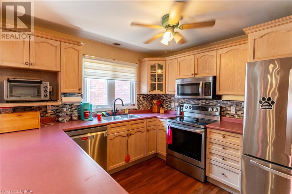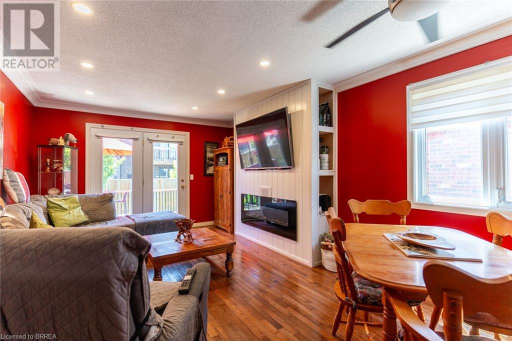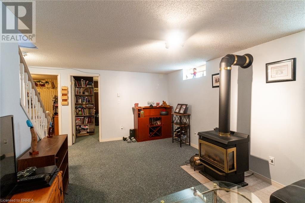 $395 MonthlyEcho Place all brick end unit townhouse bungalow style condo with attached garage perfect for those just starting out or empty nesters located in a well cared for 18 unit complex close to Hwy 403 for commuters with immediate possession available! Featuring 2+1 bedrooms, 2 baths, newer appliances, 2 extra windows for more natural light being a end unit, open concept eat-in kitchen to living room with patio doors to composite deck & hot tub to relax in. Large primary bedroom with walk-through closet to main bathroom and handy main floor laundry…everything you need on one level. Second bedroom to the front of the house is being used as a den or home office currently & has easy access to garage through front hall. The lower level has another good sized 3rd bedroom, 3 pc bathroom, a large rec room with gas fireplace & 4th bedroom or office, unfinished utility room that could also serve as extra storage and/or workshop, newer windows, newer front door, water softener. Condo fee only $395.00 per month includes all building insurance, property management fees, exterior maintenance, snow removal, grass cutting, roof & windows. This could be your new home so make an appointment to view today! (id:51158)