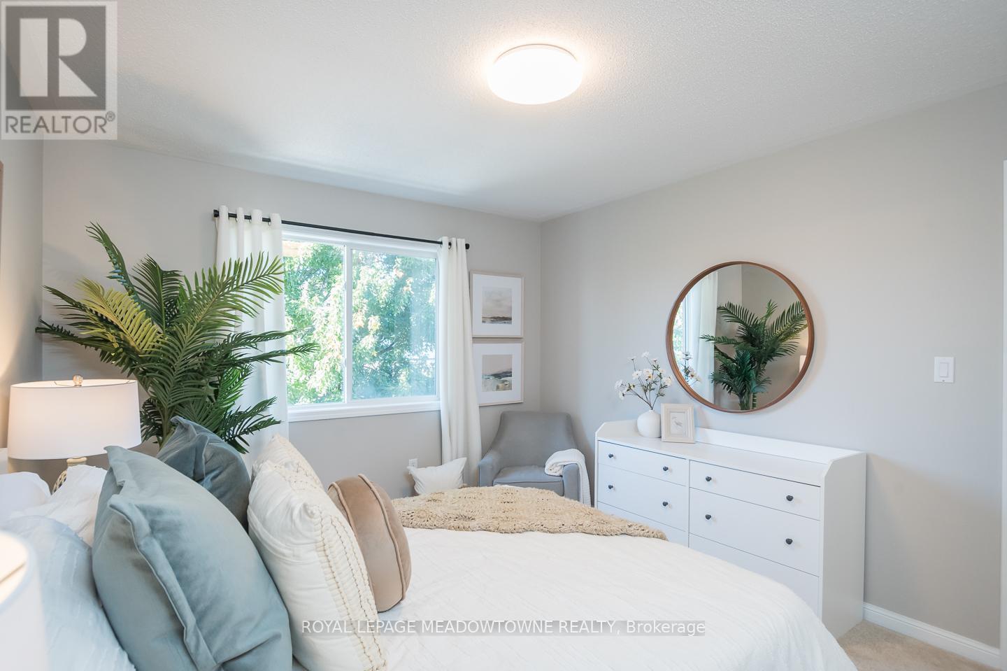 This lovely Freehold townhome boasts a newly renovated all White Kitchen with Quartz Countertops and Backsplash, Stainless Steel appliances and under-cabinet lighting, opening to a Fully fenced backyard with mature trees and a lush garden. The open concept living room flows seamlessly into the distinct dining area, creating a warm and versatile space. A convenient two-piece powder room completes the main floor space.Upstairs features three bedrooms, including a Primary Suite with a renovated three-piece Ensuite, plus a large updated four-piece main bath. Neutral paint colours complement all living styles. There is Peace of Mind with an Efficient Furnace Heat Pump System (2024), a new Washer and Dryer (2024) and a newer roof all the big-ticket items are taken care of. Located in a family friendly neighbourhood close to schools, amenities and with a quick access to the 401, 407 and GO station, this home is perfect for First Time Buyers and Commuters alike. (id:51158)