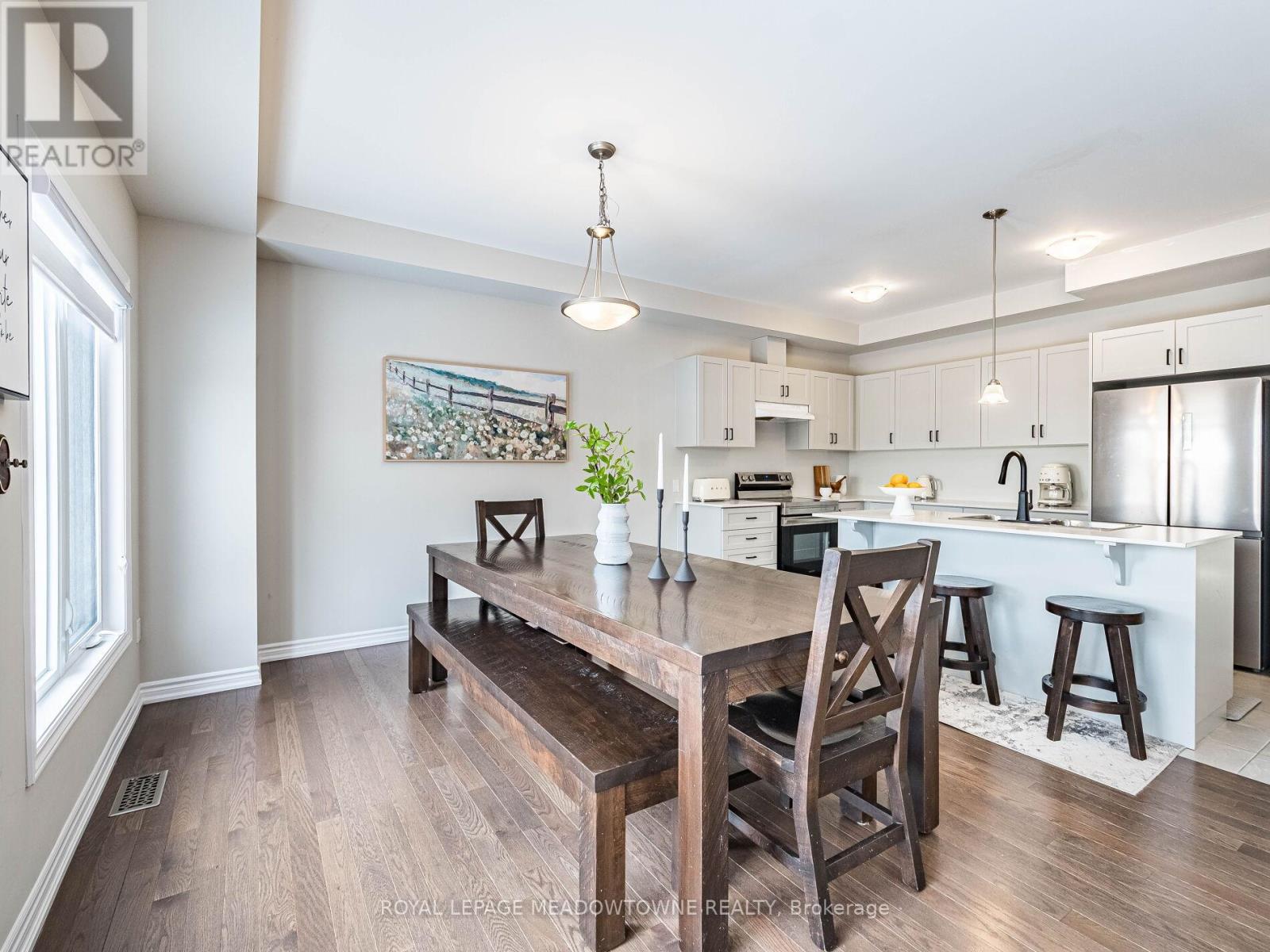 Welcome to 13 Braida Lane, a beautifully appointed townhome located in the sought-after Halton Village Station community-one of Acton's most welcoming and fast-growing neighbourhoods. This newer 3+1 bedroom, 3-bathroom home is ideal for young families, professionals, or investors seeking style, space, and turnkey convenience. Step inside to a bright and airy open-concept main floor, perfectly designed for everyday living and effortless entertaining. The kitchen is the heart of the home, featuring tile flooring, a centre island, generous prep space, and abundant cabinetry, seamlessly flowing into the dining and living areas. Large windows flood the space with natural light, highlighting the rich engineered hardwood flooring and creating a warm, inviting atmosphere. A main-floor bedroom with a large window and adjacent 3-piece bath offers exceptional flexibility-ideal for guests, a home office, or a playroom. Upstairs, unwind in the spacious primary suite, complete with plush broadloom, a walk-in closet, and a private 3-piece ensuite-your own peaceful retreat. The third bedroom is equally impressive, boasting its own 4-piece ensuite, broadloom flooring, and bright natural light. A convenient upper-level laundry room adds to everyday ease. The finished basement extends your living space with a versatile recreation room, a fourth bedroom with above-grade windows, and ample storage, perfect for extended family, guests, or a home gym. Ideally situated in Halton Village Station, this home is steps to parks, schools, shops, and the GO Train, offering an easy commute to the GTA. Enjoy weekend strolls around Fairy Lake, local markets, and quick access to Georgetown and Milton, with Highway 7 and the 401 just minutes away. A refined blend of small-town charm and modern living-13 Braida Lane is a place you'll be proud to call home. (id:51158)