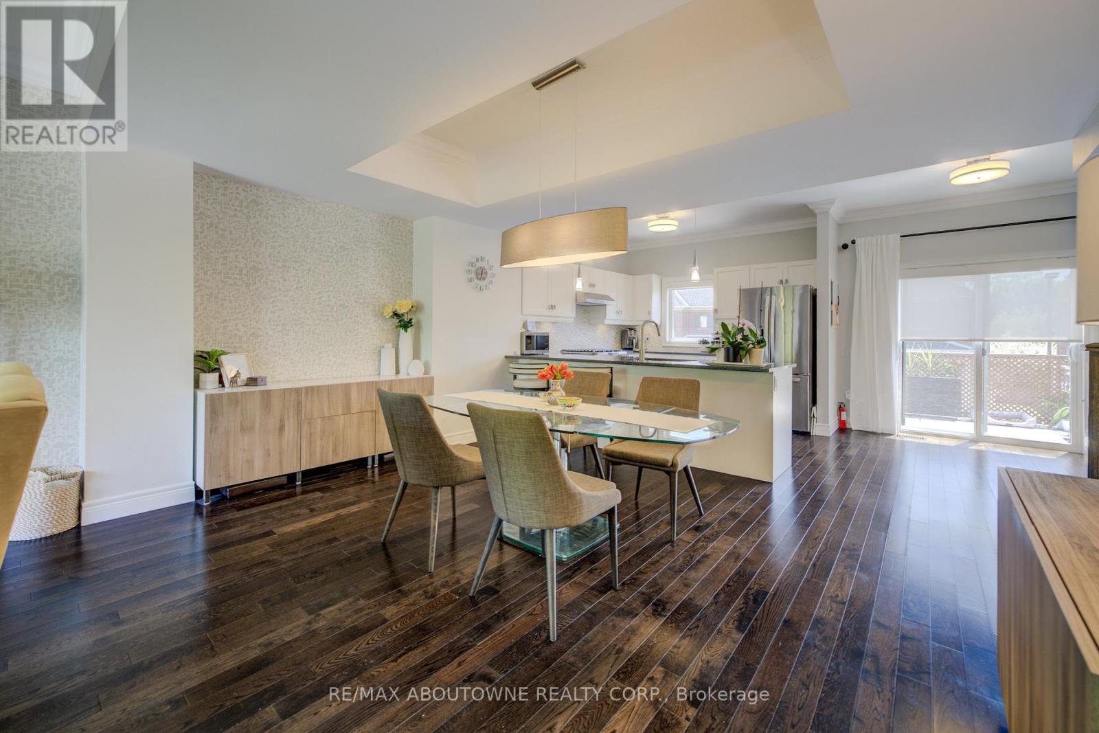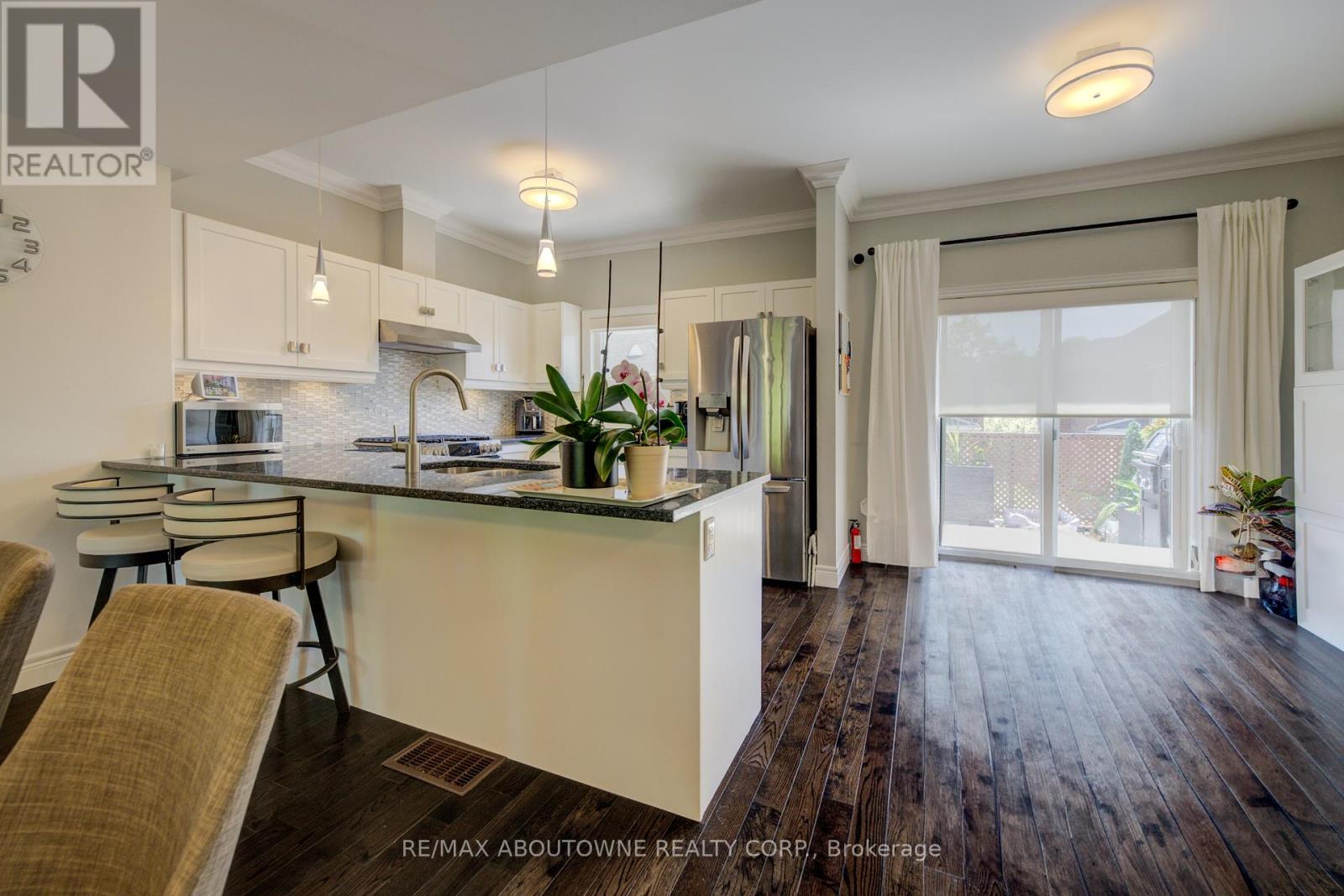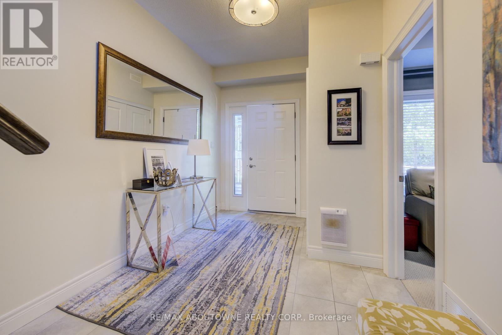 $360 MonthlyThis is it! Nestled on a quiet street in the heart of Waterdown just walking distance to shops, restaurants & all the amenities of downtown Waterdown. Absolutely stunning and upgraded to the brim, this executive 2 plus 1-bedroom, 4-bathroom townhome with a bonus office area features the rare double car garage with additional parking for 2 cars on the parking pad for a total of 4 spots. Soaring 10-foot ceilings on the entry level featuring a 3rd bed or office area, this level boasts a two-piece bathroom as well as direct interior access to the double garage. The main level features a custom kitchen with stainless steel appliances including a 2020 GE profile gas range with grill, along with granite countertops, double sink, a sleek tile backsplash, under mount lighting, and two elegant pendant lights. The breakfast area opens to the impressive 20 ft x 12 ft deck with privacy fence and full-size remote-controlled awning. Please note the convenient gas line for outdoor grilling. The dining room features hardwood flooring and coffered ceiling and is open to the great room that highlights a Regency City Series gas fireplace (2021) adds warmth and style as well as a bright window overlooking the front landscaped yard. Please note that this level boasts 9 ft ceilings and offers a convenient 2 pc powder room. The upper-level features 2 generous sized bedrooms as well as the main four-piece bathroom. The primary bedroom offers a full walkin closet as well as a professionally renovated 3-piece bathroom. The hall and bonus office area has been upgraded with hardwood flooring and an attractive wrought iron railing for the staircase. Additional upgrades include a Ecobee smart thermostat, on-demand tankless hot water heater, and fully owned HVAC systems. Stylish LED lighting throughout, including pot lights and designer fixtures, enhances every room with refined ambiance. Located in a quiet, well-managed enclave, this turnkey home blends elegant design with comfort. (id:51158)