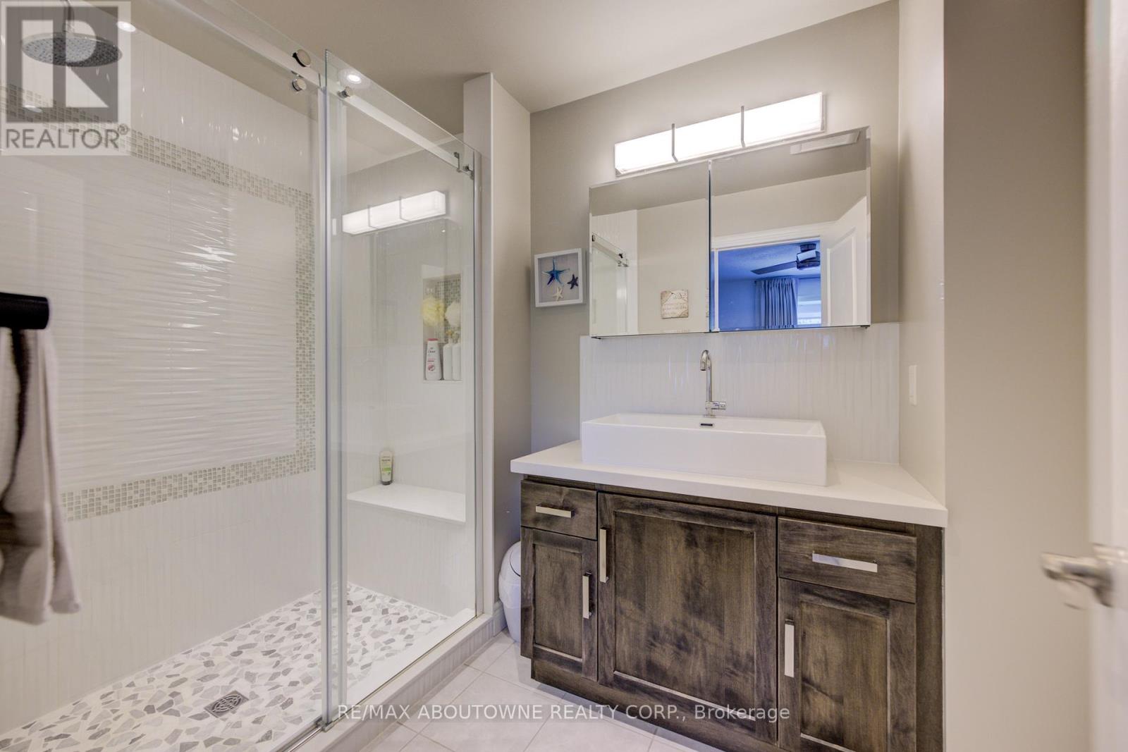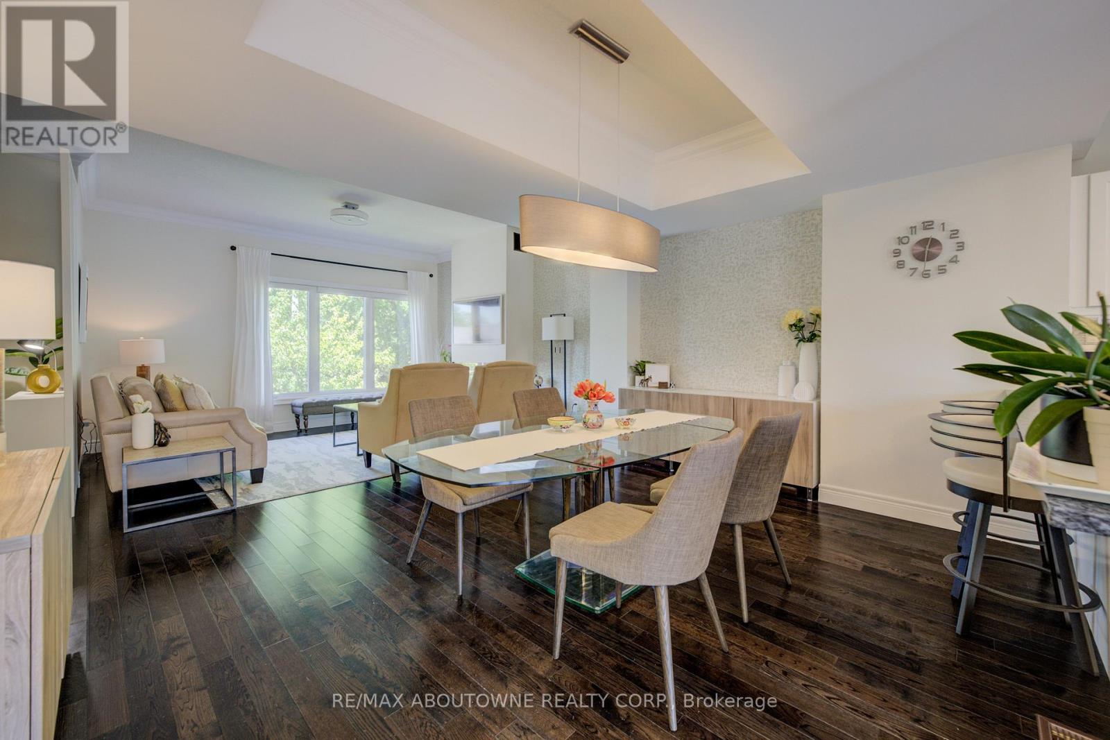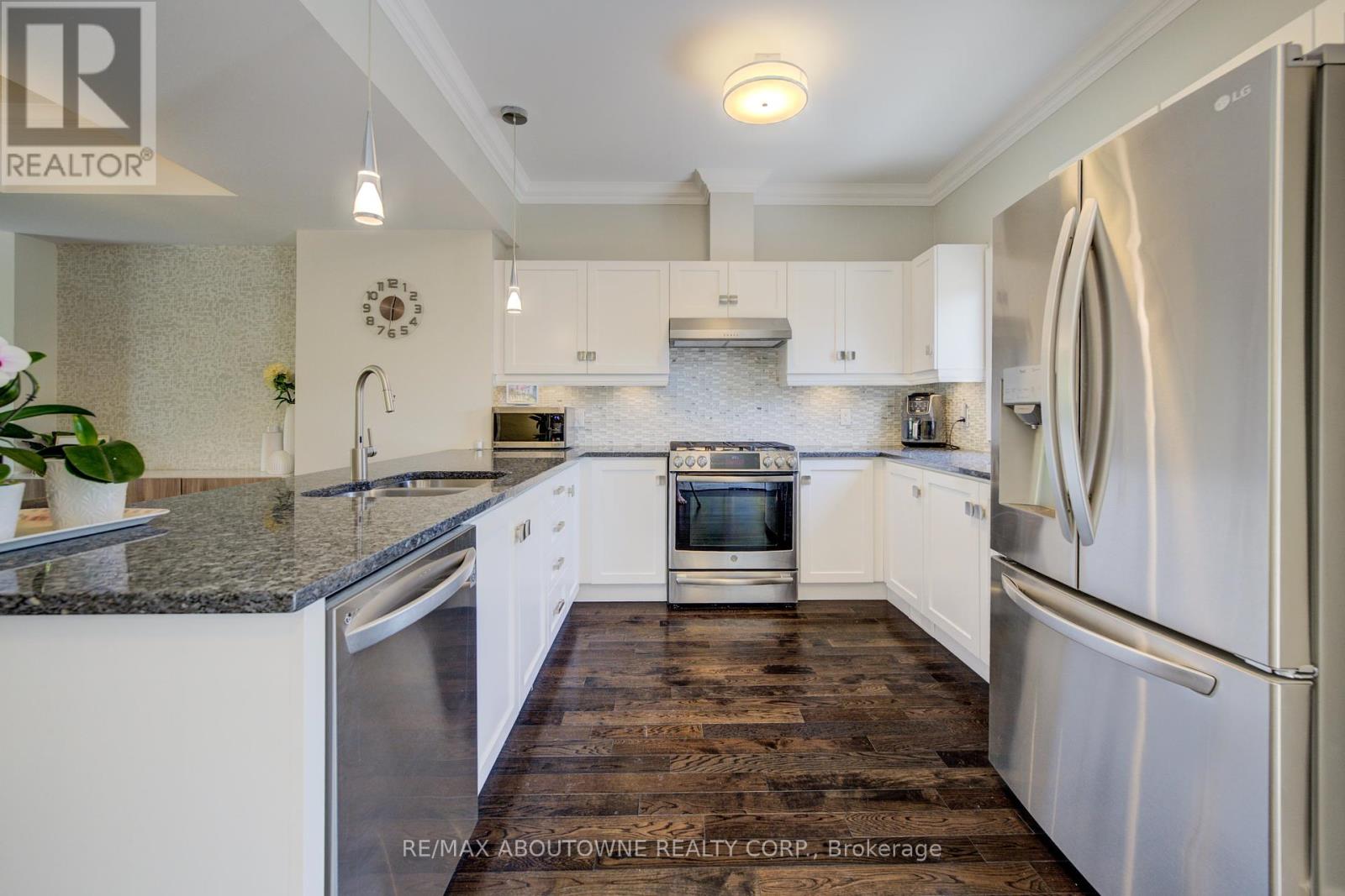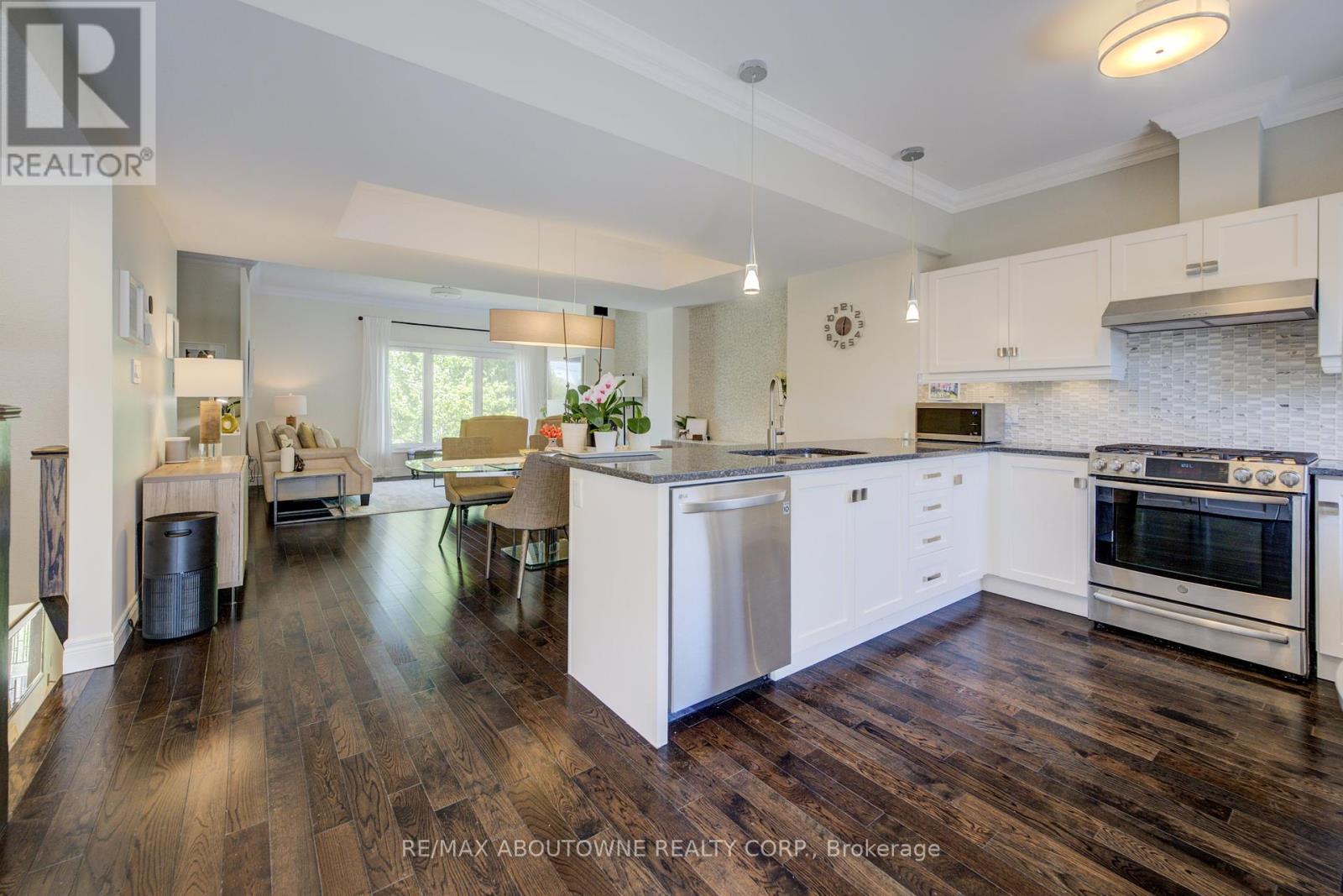 $360 MonthlyThis is it! Nestled on a quiet street in the heart of Waterdown just walking distance to shops, restaurants & all the amenities of downtown Waterdown. Absolutely stunning and upgraded to the brim, this executive 2 plus 1-bedroom, 4-bathroom townhome with a bonus office area features the rare double car garage with additional parking for 2 cars on the parking pad for a total of 4 spots. Soaring 10-foot ceilings on the entry level featuring a 3rd bed or office area, this level boasts a two-piece bathroom as well as direct interior access to the double garage. The main level features a custom kitchen with stainless steel appliances including a 2020 GE profile gas range with grill, along with granite countertops, double sink, a sleek tile backsplash, under mount lighting, and two elegant pendant lights. The breakfast area opens to the impressive 20 ft x 12 ft deck with privacy fence and full-size remote-controlled awning. Please note the convenient gas line for outdoor grilling. The dining room features hardwood flooring and coffered ceiling and is open to the great room that highlights a Regency City Series gas fireplace (2021) adds warmth and style as well as a bright window overlooking the front landscaped yard. Please note that this level boasts 9 ft ceilings and offers a convenient 2 pc powder room. The upper-level features 2 generous sized bedrooms as well as the main four-piece bathroom. The primary bedroom offers a full walkin closet as well as a professionally renovated 3-piece bathroom. The hall and bonus office area has been upgraded with hardwood flooring and an attractive wrought iron railing for the staircase. Additional upgrades include a Ecobee smart thermostat, on-demand tankless hot water heater, and fully owned HVAC systems. Stylish LED lighting throughout, including pot lights and designer fixtures, enhances every room with refined ambiance. Located in a quiet, well-managed enclave, this turnkey home blends elegant design with comfort. (id:51158)