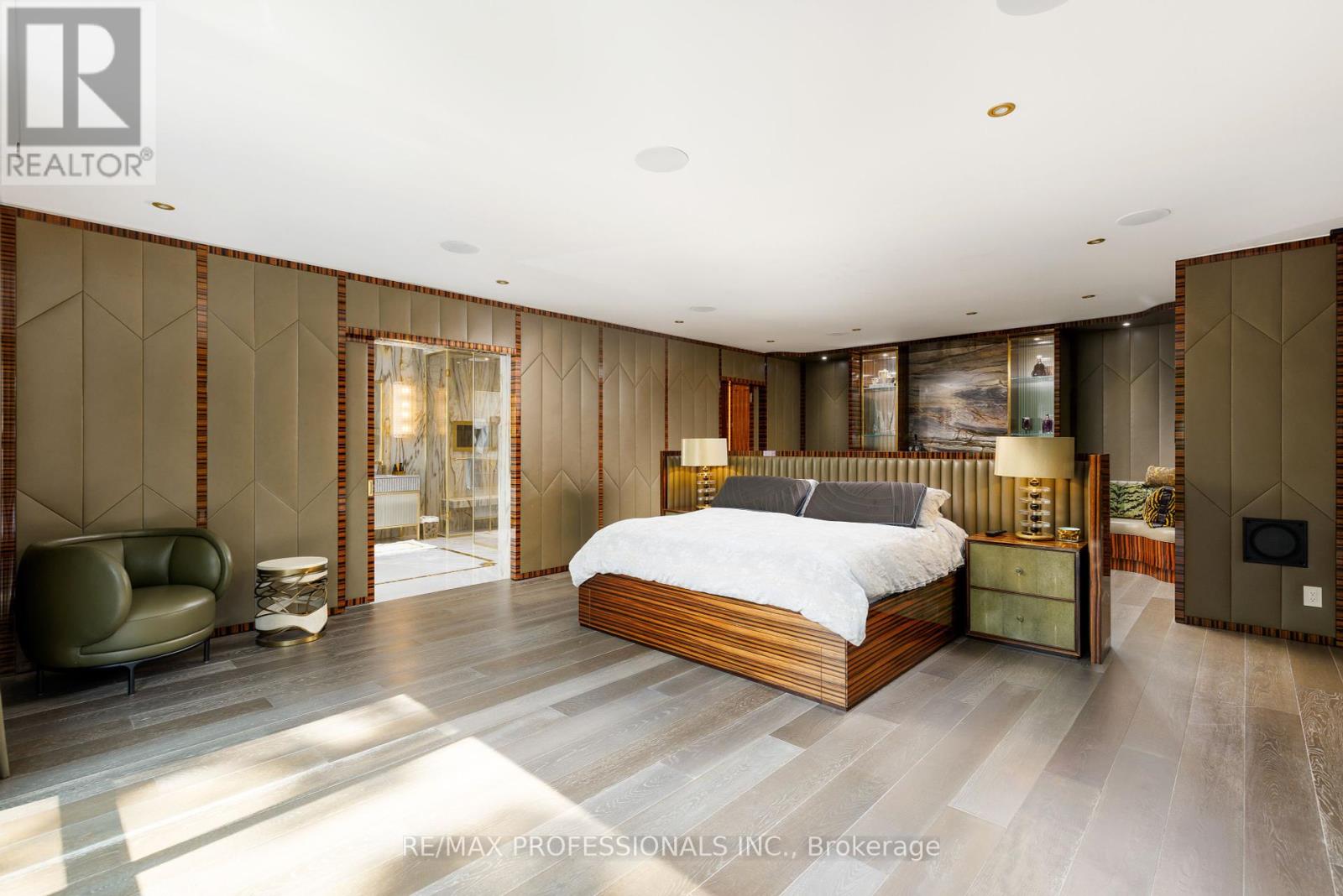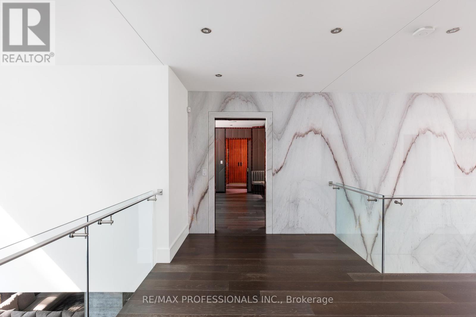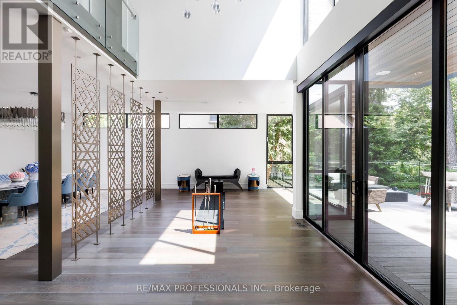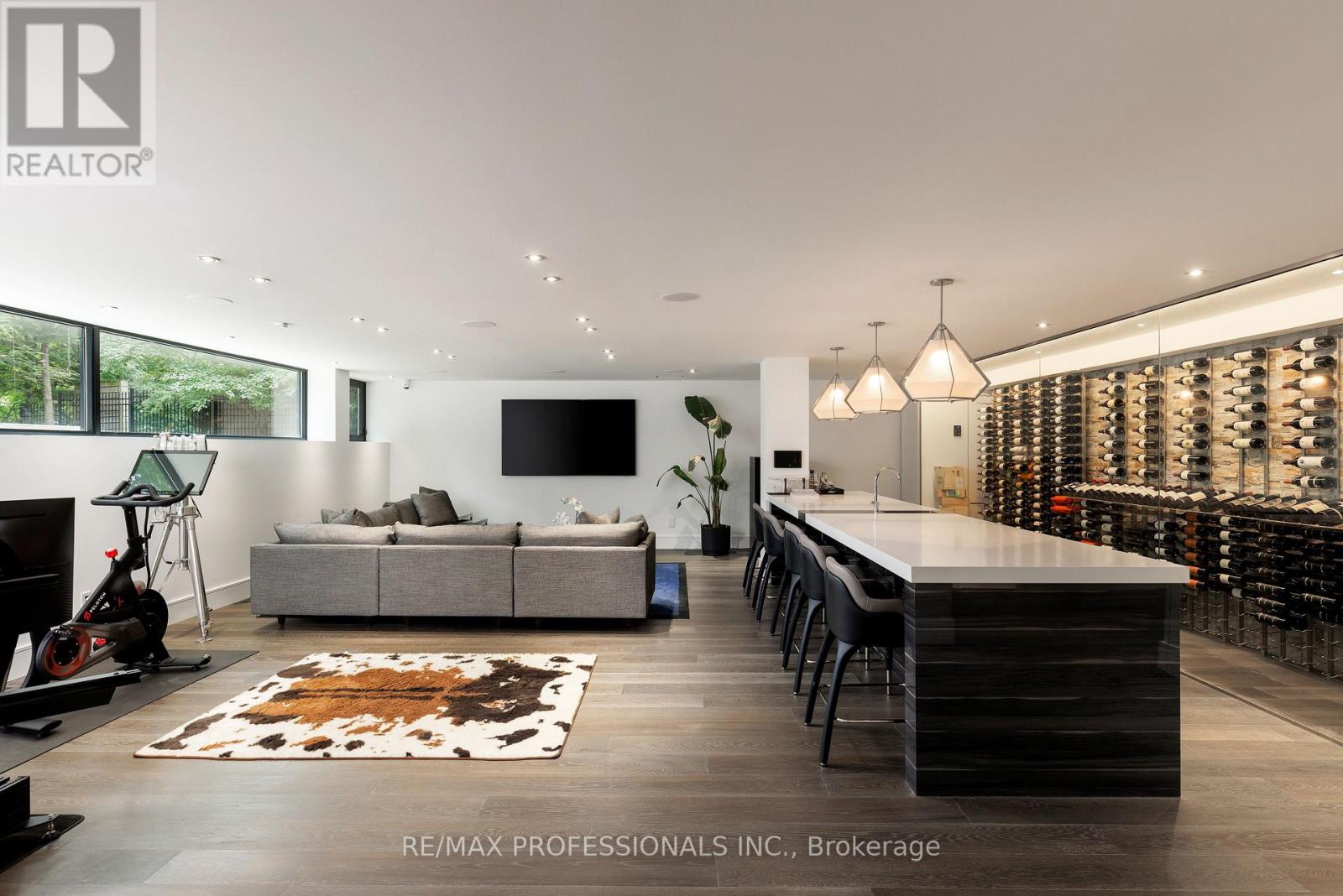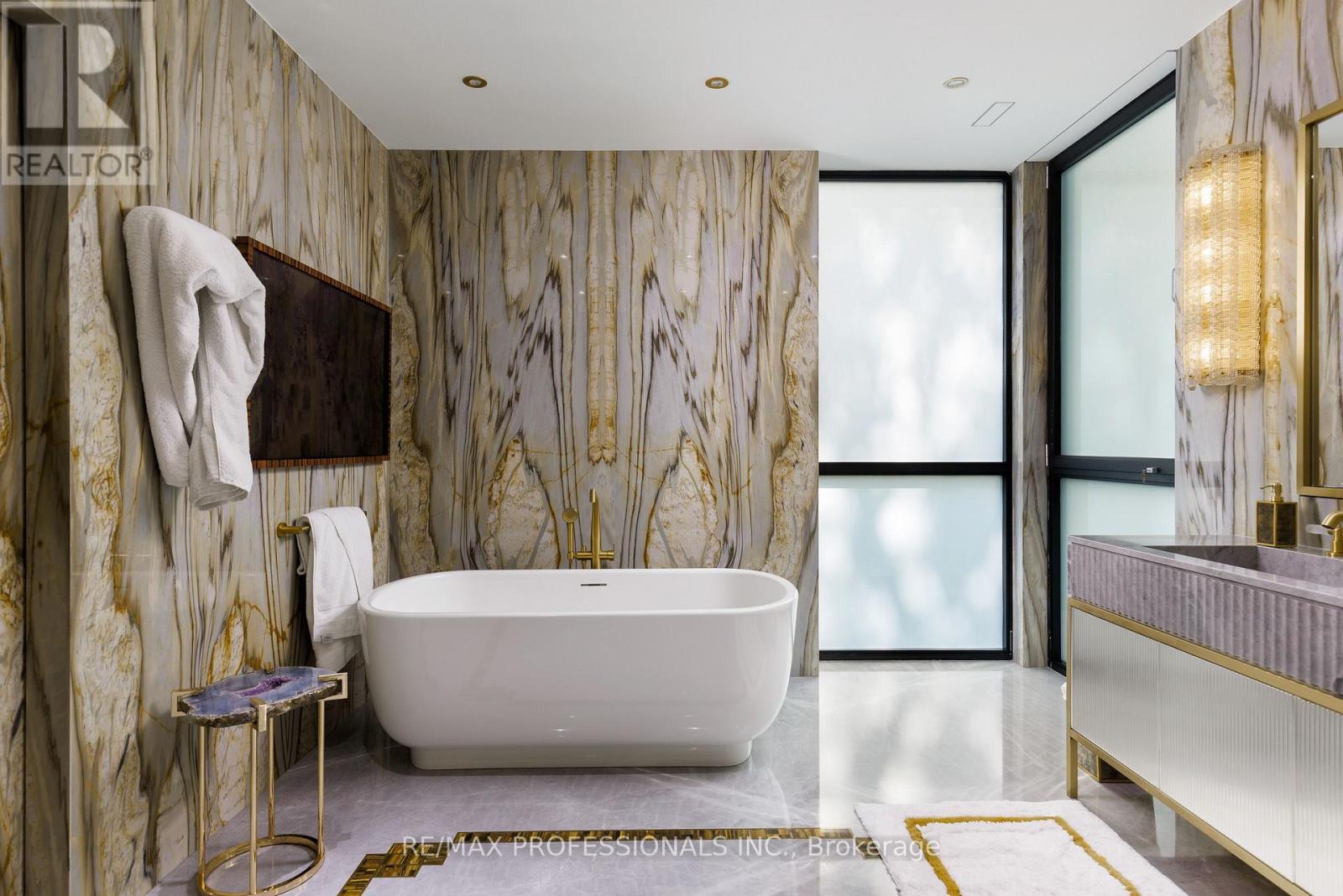 Spectacular Custom home on Lambton Wood Ravine in prestigious Edenbridge Humber Valley. Idyllic private setting with secluded oasis complete with pool and east facing garden backing onto the wooded ravine. Enter inside a masterpiece of custom stonework throughout with floor to ceiling marble and endless upgrades and luxury appointments. 7000+ square feet of living space offers residents top of the line Gaggenau appliances and furnishings that overlook the backyard living and dining areas. The second floor offers 4 fully furnished bedrooms each with private ensuite baths. The primary bedroom is amongst the finest with ravine views and built in TVs and a 5 piece ensuite and walk in closets like no other. Lower level offers a full bar & temperature controlled wine cellar with sprawling lower living space complete with professional gym & spa/cold plunge & sauna. Not to be missed, the garage includes a two car lift. Truly a lifestyle experience and unequivocally the finest in finishes throughout nestled on one of the quietest streets in the area. Steps to Humber town plaza, Bloor, and close to all major highways. Short commute downtown & top school district. (id:51158)