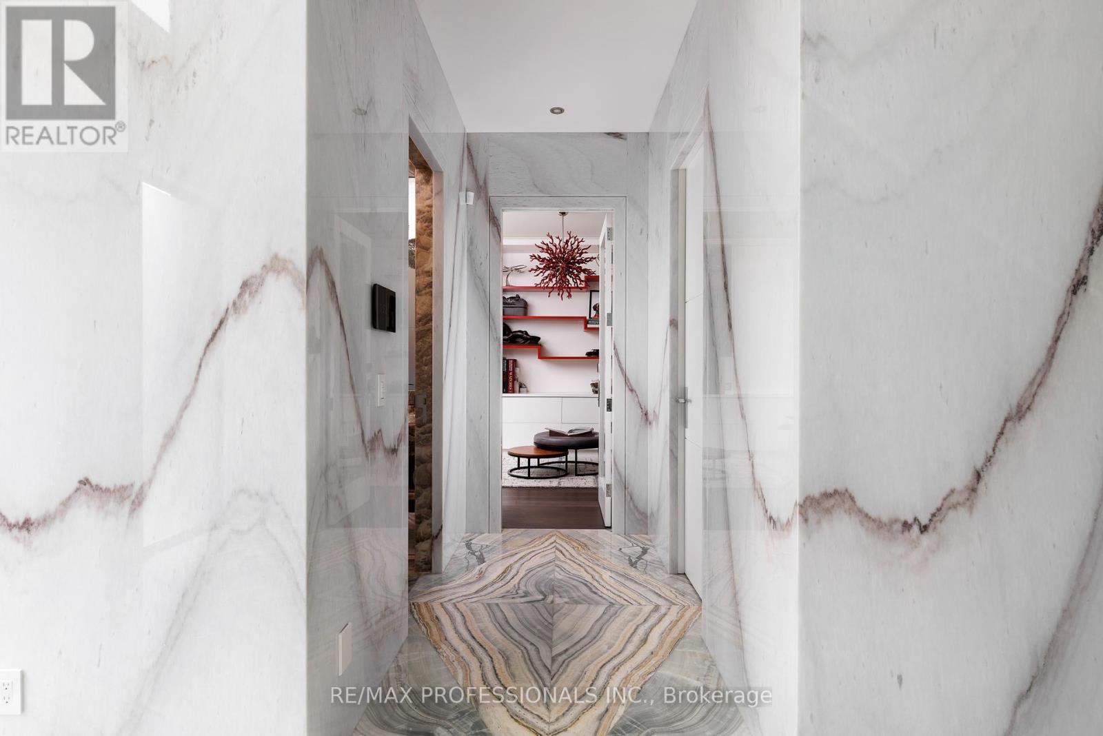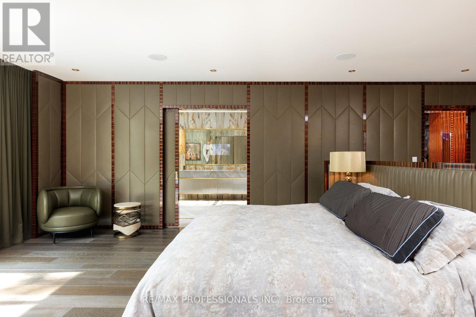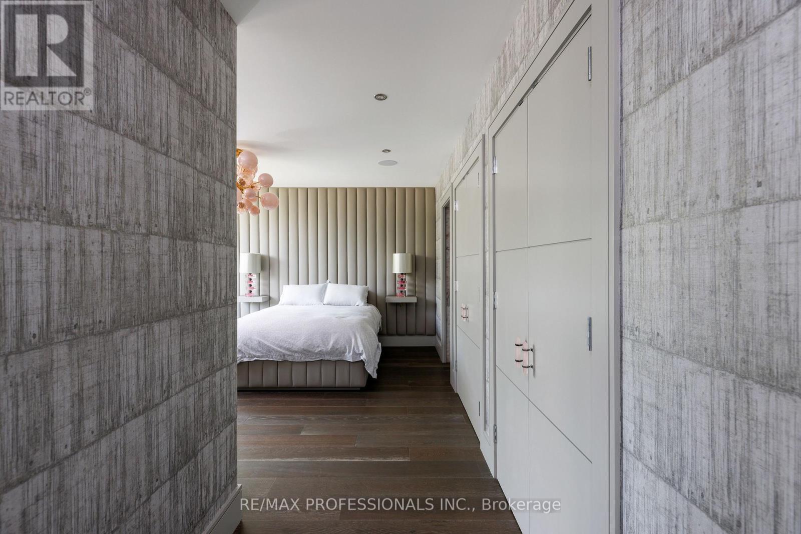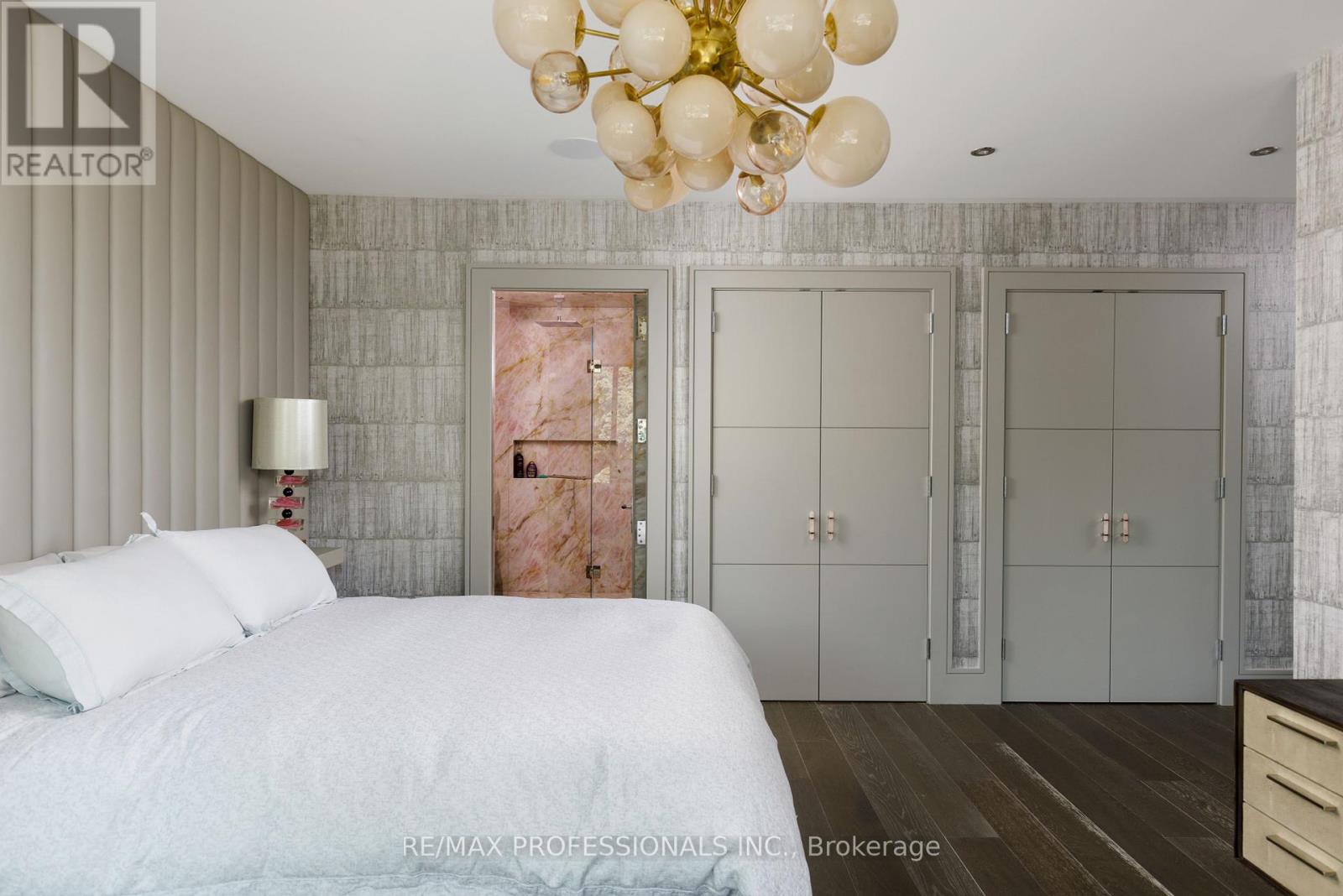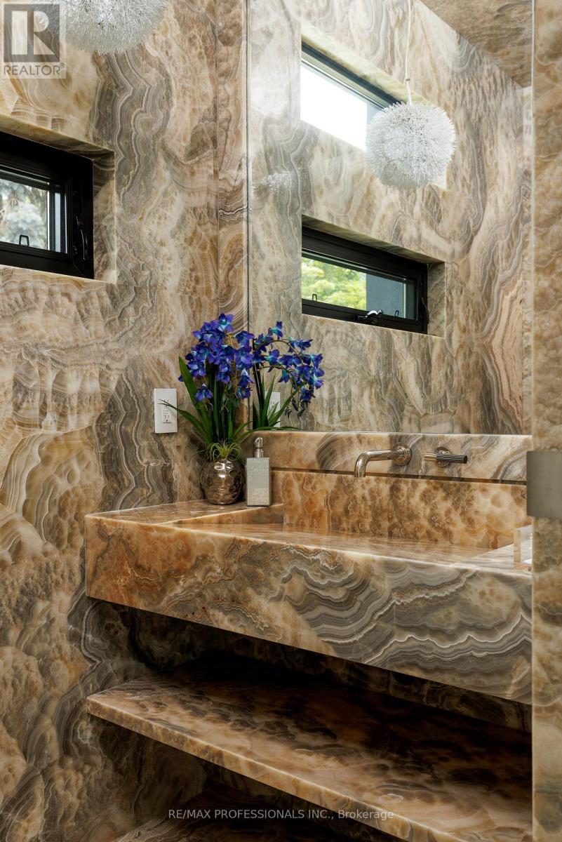 Spectacular Custom home on Lambton Wood Ravine in prestigious Edenbridge Humber Valley. Idyllic private setting with secluded oasis complete with pool and east facing garden backing onto the wooded ravine. Enter inside a masterpiece of custom stonework throughout with floor to ceiling marble and endless upgrades and luxury appointments. 7000+ square feet of living space offers residents top of the line Gaggenau appliances and furnishings that overlook the backyard living and dining areas. The second floor offers 4 fully furnished bedrooms each with private ensuite baths. The primary bedroom is amongst the finest with ravine views and built in TVs and a 5 piece ensuite and walk in closets like no other. Lower level offers a full bar & temperature controlled wine cellar with sprawling lower living space complete with professional gym & spa/cold plunge & sauna. Not to be missed, the garage includes a two car lift. Truly a lifestyle experience and unequivocally the finest in finishes throughout nestled on one of the quietest streets in the area. Steps to Humber town plaza, Bloor, and close to all major highways. Short commute downtown & top school district. (id:51158)