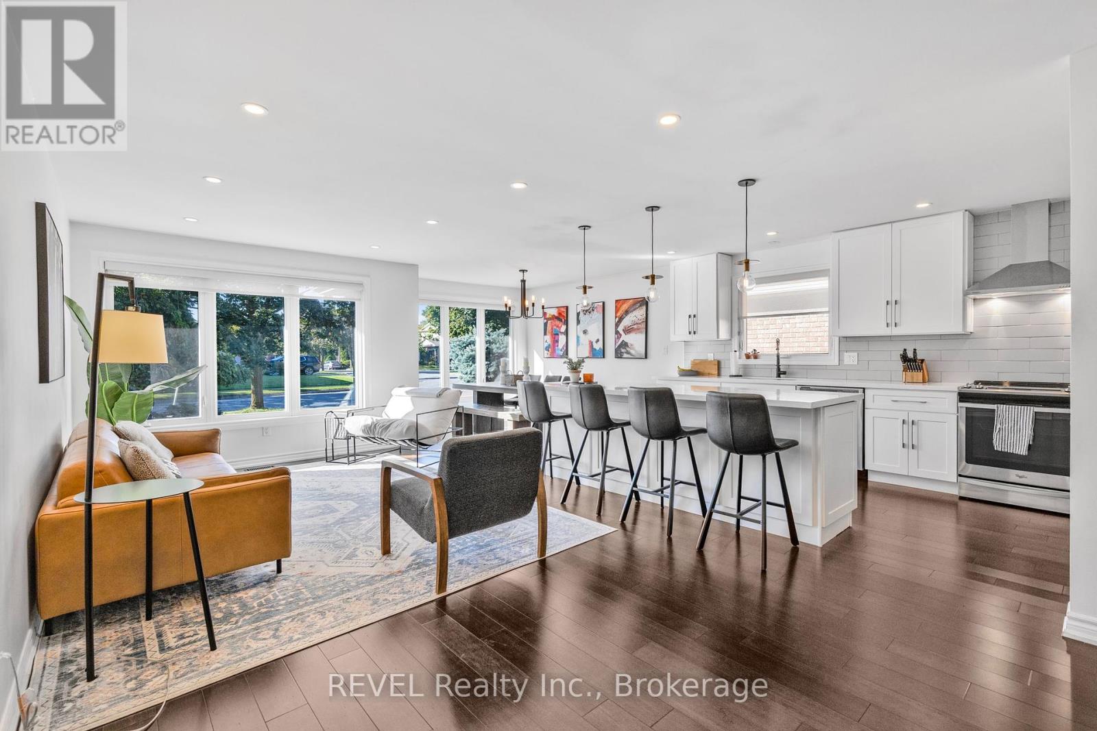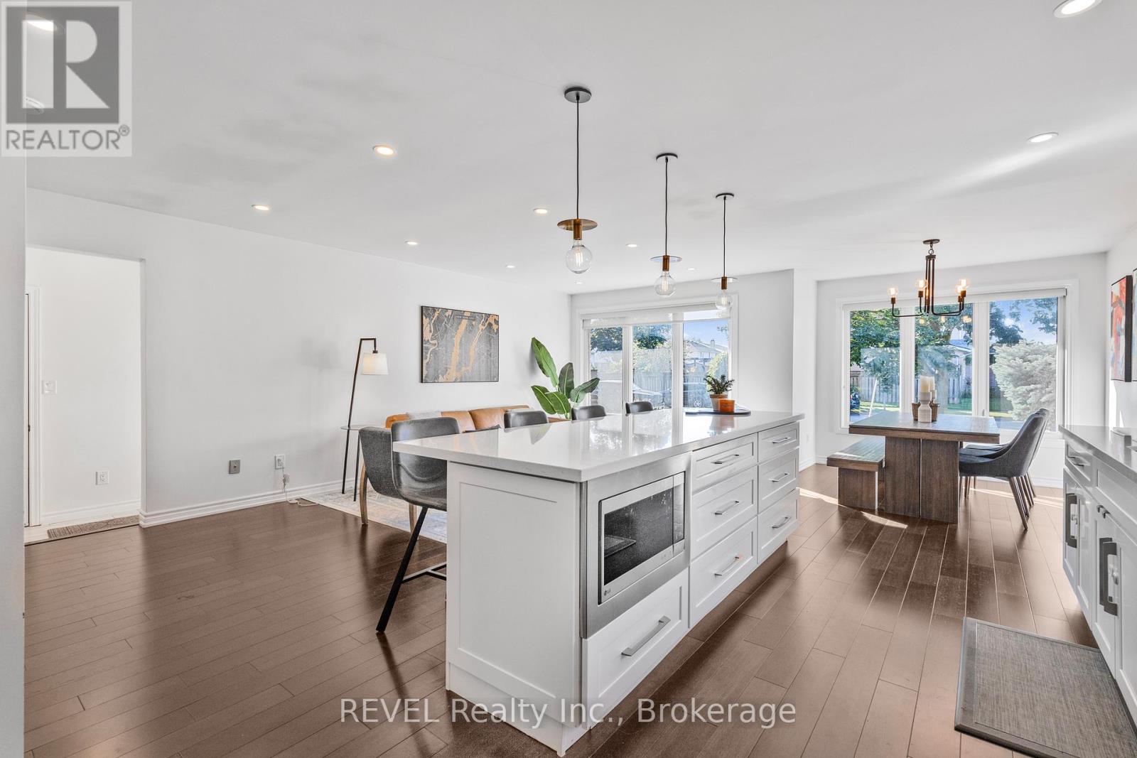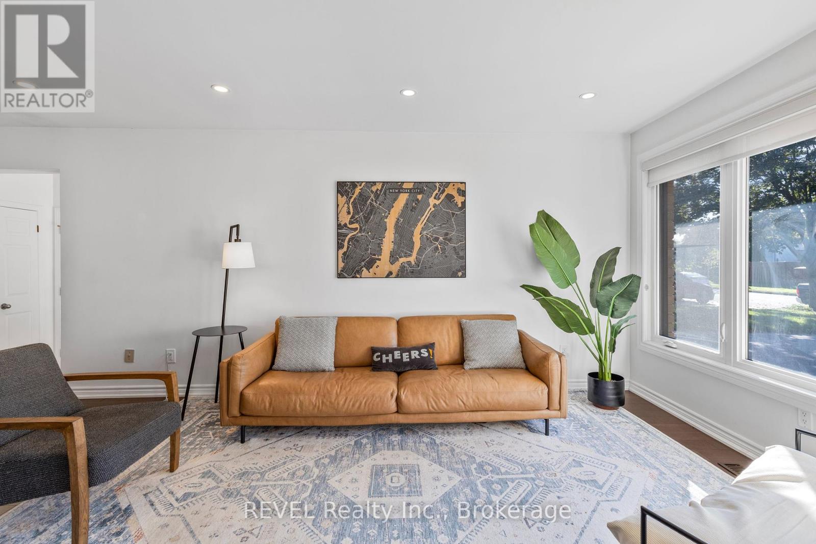 Welcome to this fully remodelled 4-level back-split in a great family friendly neighbourhood! Professionally renovated top to bottom in 2018, this home offers an open-concept main floor with a 9-foot island, quartz counters, stainless steel appliances, and a gorgeous custom kitchen. Upstairs youll find 3 bright bedrooms, including a primary with a custom walk-in closet and ensuite access to a 5-piece bathroom with a double vanity. The lower level boasts a spacious family room with high ceilings, a cozy floor-to-ceiling brick fireplace, and a walk-up to the oversized patio (2018). The basement features a large den/office, custom laundry room (2018), cold storage, and plenty of extra storage. Additional upgrades: bamboo engineered hardwood and upgraded staircase (2018), roof (2017), furnace (2016). Move in and enjoy with peace of mind knowing the big-ticket items are done! (id:51158)