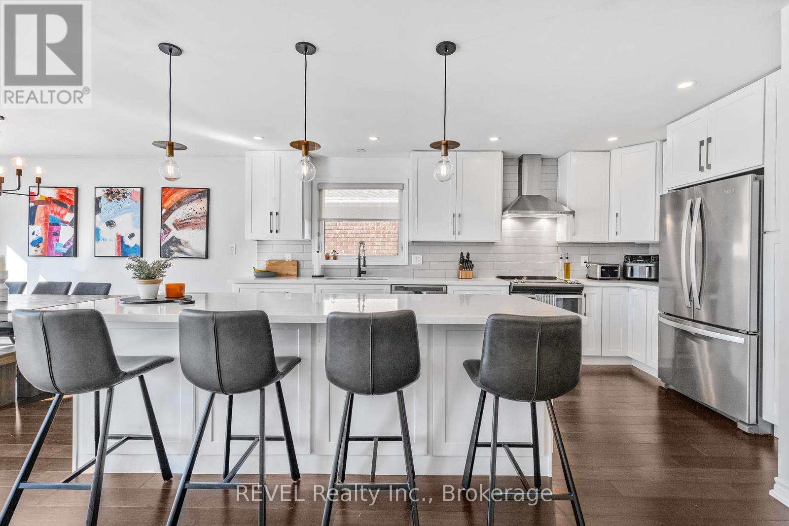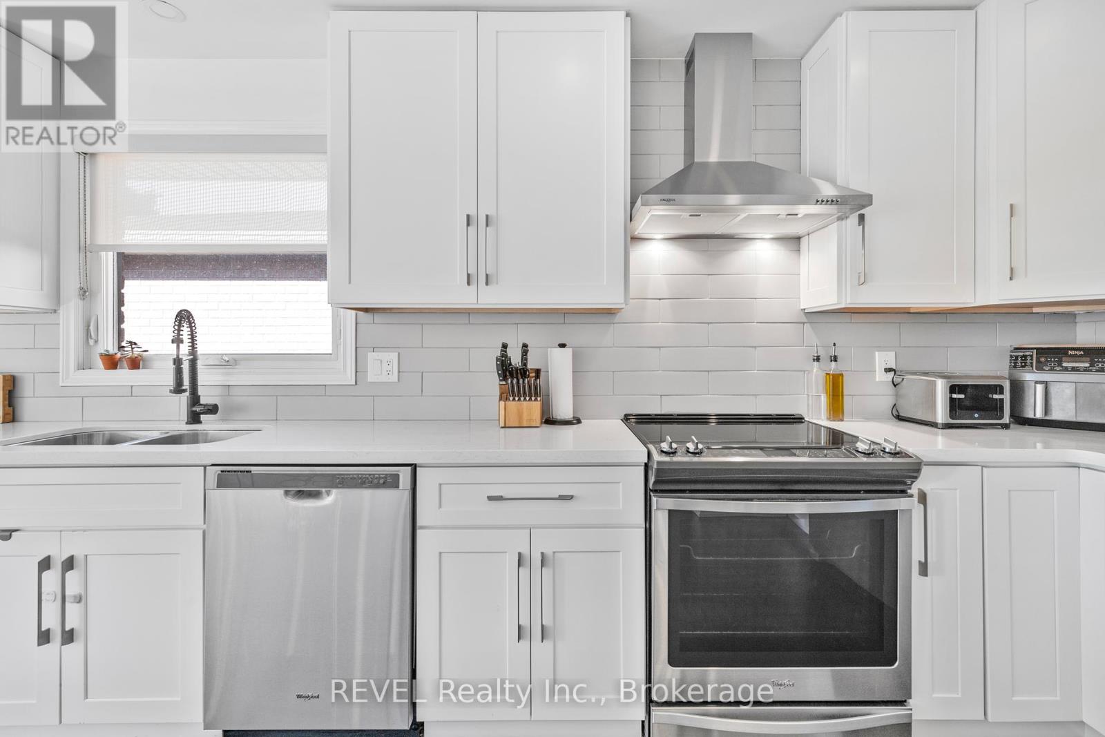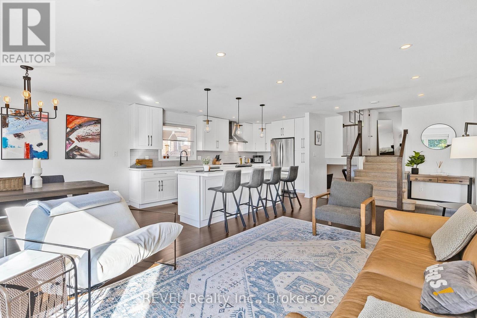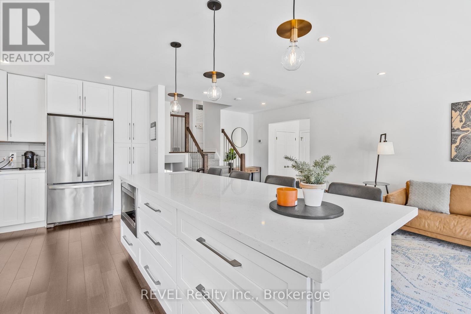 Welcome to this fully remodelled 4-level back-split in a great family friendly neighbourhood! Professionally renovated top to bottom in 2018, this home offers an open-concept main floor with a 9-foot island, quartz counters, stainless steel appliances, and a gorgeous custom kitchen. Upstairs youll find 3 bright bedrooms, including a primary with a custom walk-in closet and ensuite access to a 5-piece bathroom with a double vanity. The lower level boasts a spacious family room with high ceilings, a cozy floor-to-ceiling brick fireplace, and a walk-up to the oversized patio (2018). The basement features a large den/office, custom laundry room (2018), cold storage, and plenty of extra storage. Additional upgrades: bamboo engineered hardwood and upgraded staircase (2018), roof (2017), furnace (2016). Move in and enjoy with peace of mind knowing the big-ticket items are done! (id:51158)