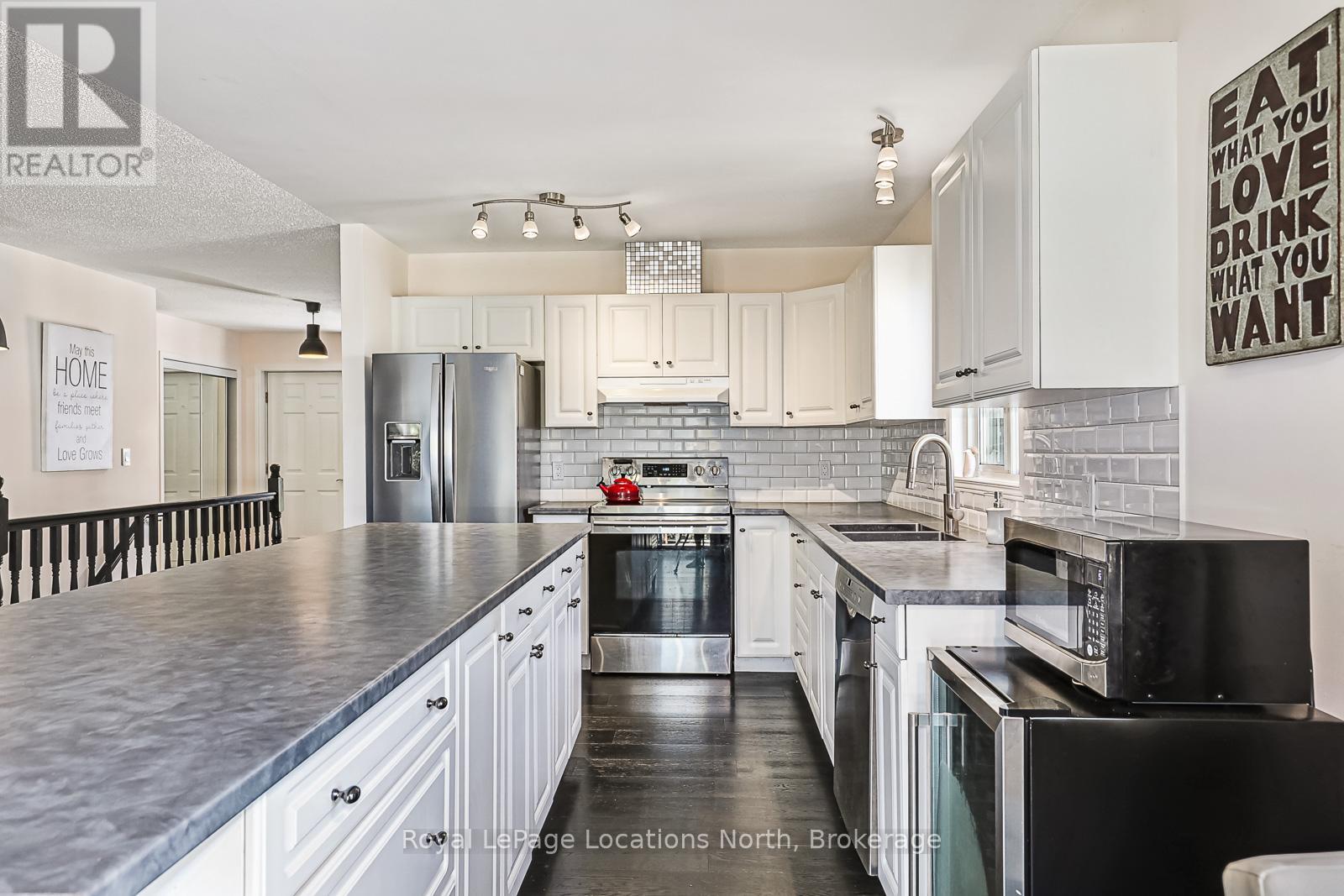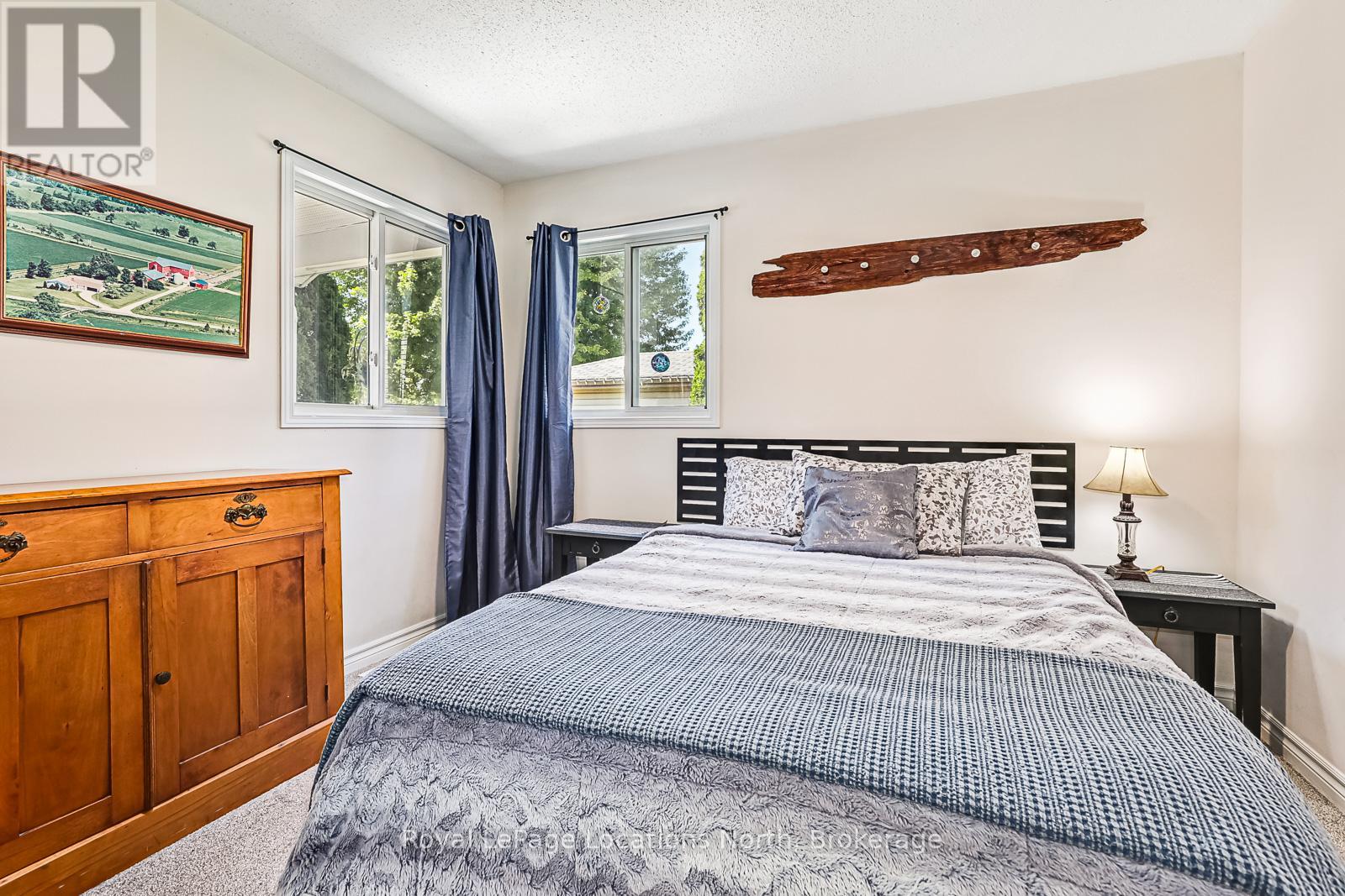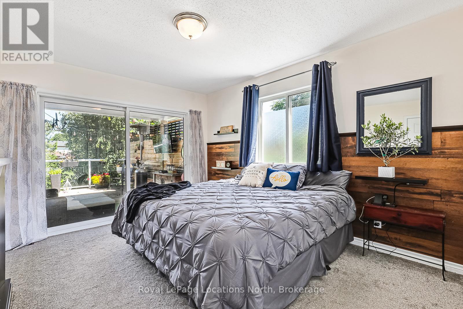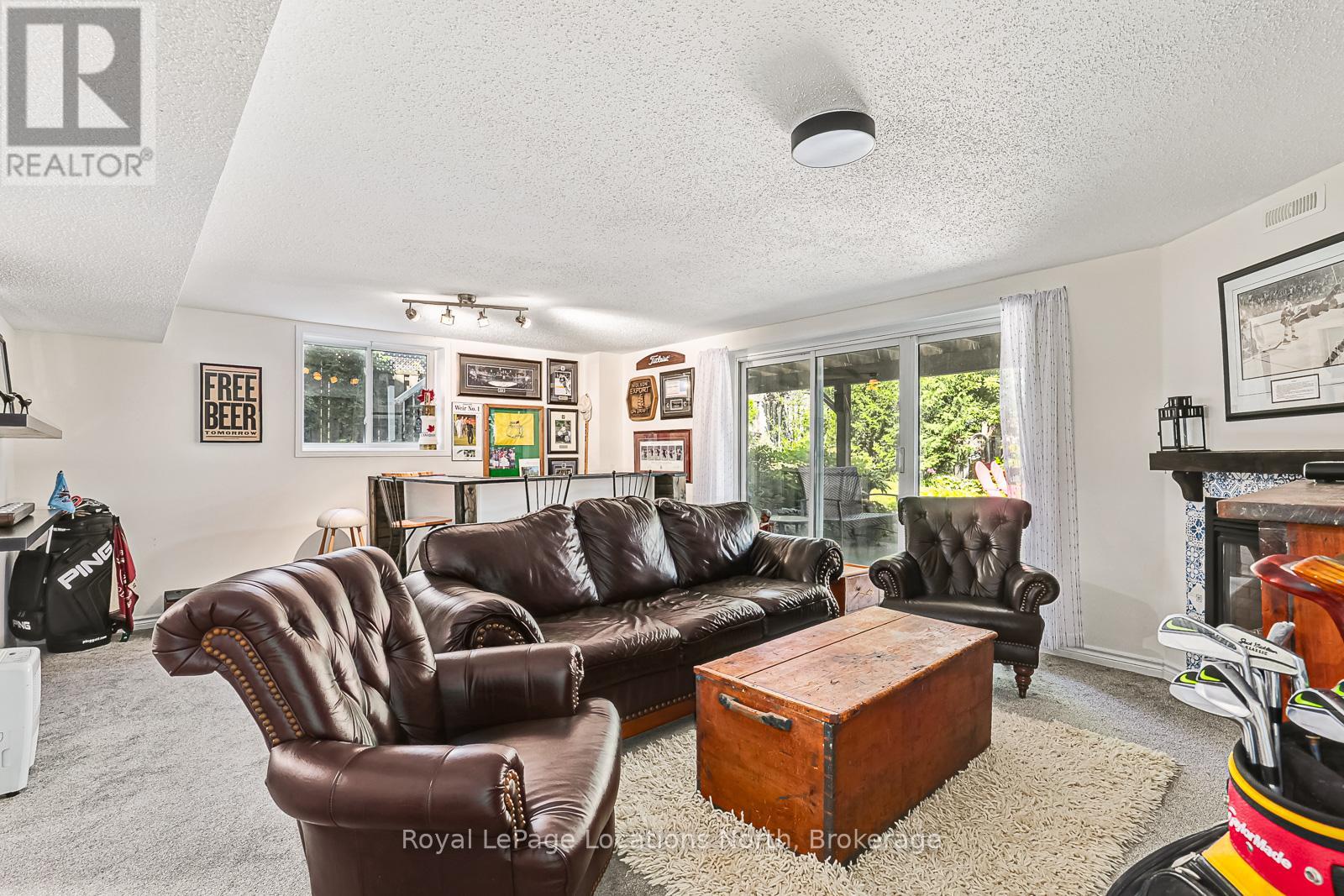 4 bedroom bungalow (2+2) with 2 1/2 baths in a fantastic central Collingwood location. On a quiet street with quick access to the trail system; a short walk/bike ride to the YMCA and Central Park, the public library, schools, shops, restaurants and Sunset Point Park. Spacious main-floor primary with en-suite and walkout to a covered portion of the large deck. Open concept kitchen/living/dining with SS appliances, huge island, electric fireplace and another walkout to the deck that has plenty of room for dining and lounging. Also on the main floor, a second bedroom (or office), two piece bathroom, laundry and access to 2 car garage. Two more bedrooms in the basement with a 4-piece bathroom, workout room and a large family room with a gas fireplace, bar and walkout to landscaped and very private backyard. Welcoming front entry with recently upgraded hardscaping. Very comfortable home with an oasis-like outdoor space and parking for 6! Book your private viewing today! (id:51158)
