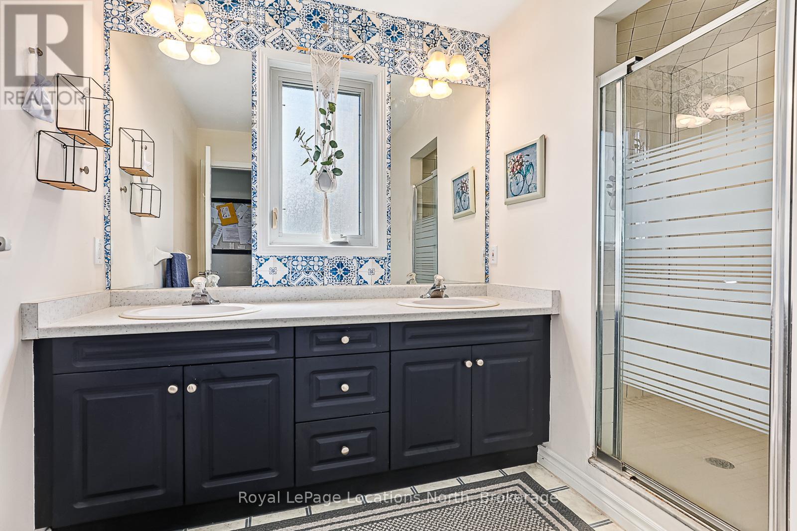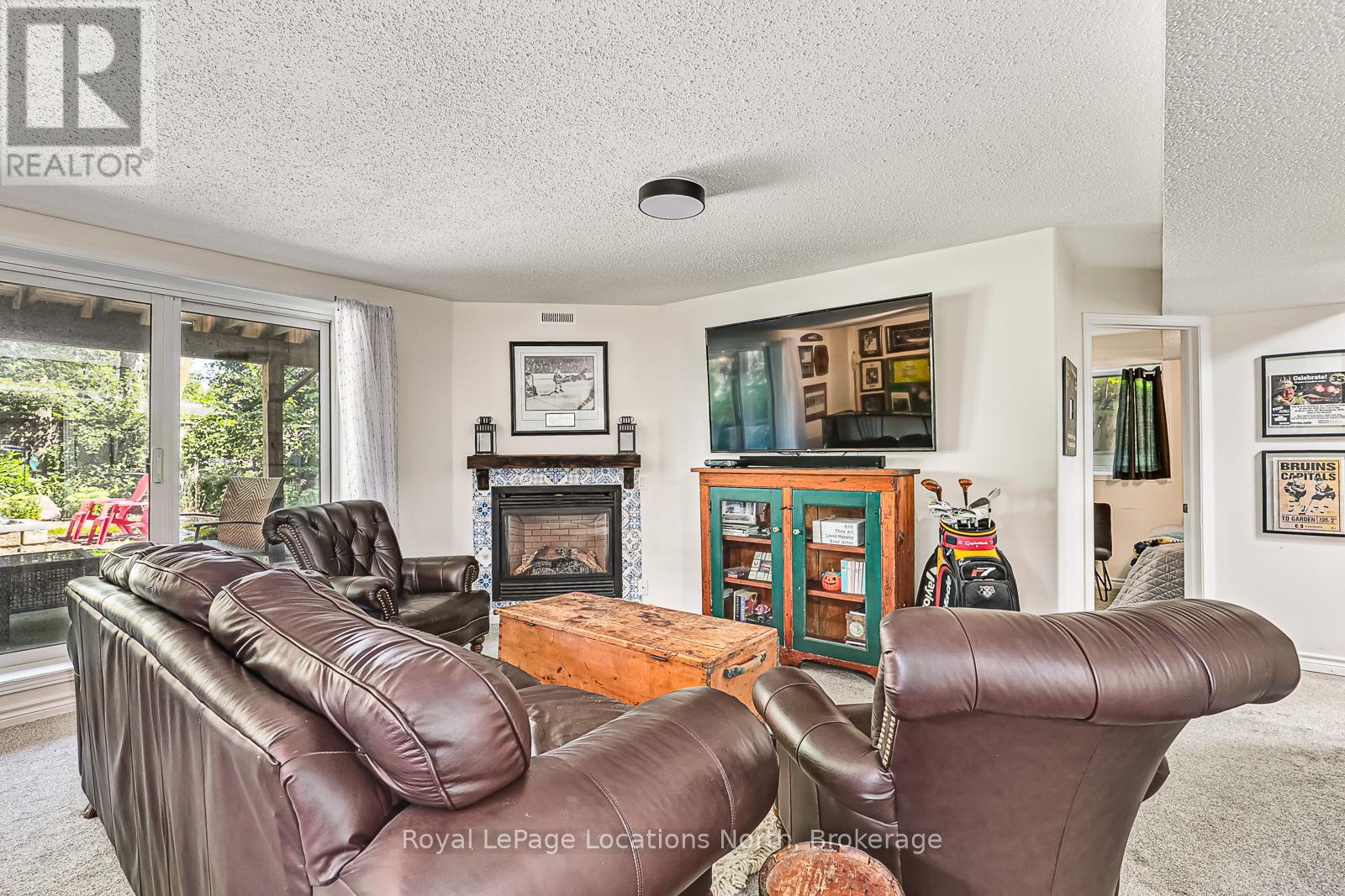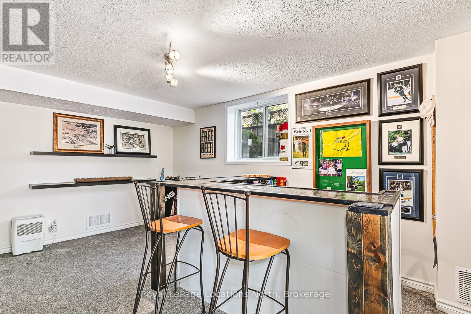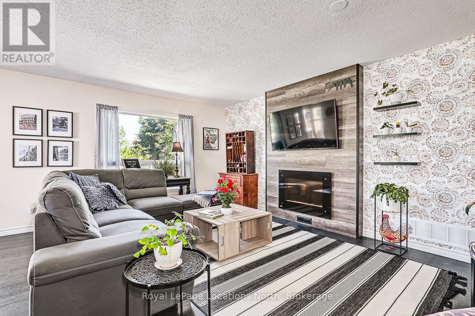 4 bedroom bungalow (2+2) with 2 1/2 baths in a fantastic central Collingwood location. On a quiet street with quick access to the trail system; a short walk/bike ride to the YMCA and Central Park, the public library, schools, shops, restaurants and Sunset Point Park. Spacious main-floor primary with en-suite and walkout to a covered portion of the large deck. Open concept kitchen/living/dining with SS appliances, huge island, electric fireplace and another walkout to the deck that has plenty of room for dining and lounging. Also on the main floor, a second bedroom (or office), two piece bathroom, laundry and access to 2 car garage. Two more bedrooms in the basement with a 4-piece bathroom, workout room and a large family room with a gas fireplace, bar and walkout to landscaped and very private backyard. Welcoming front entry with recently upgraded hardscaping. Very comfortable home with an oasis-like outdoor space and parking for 6! Book your private viewing today! (id:51158)