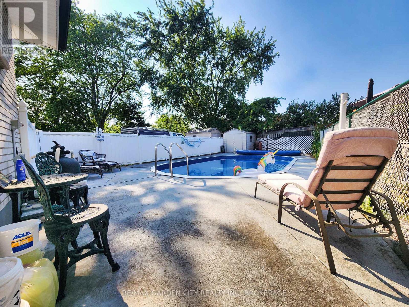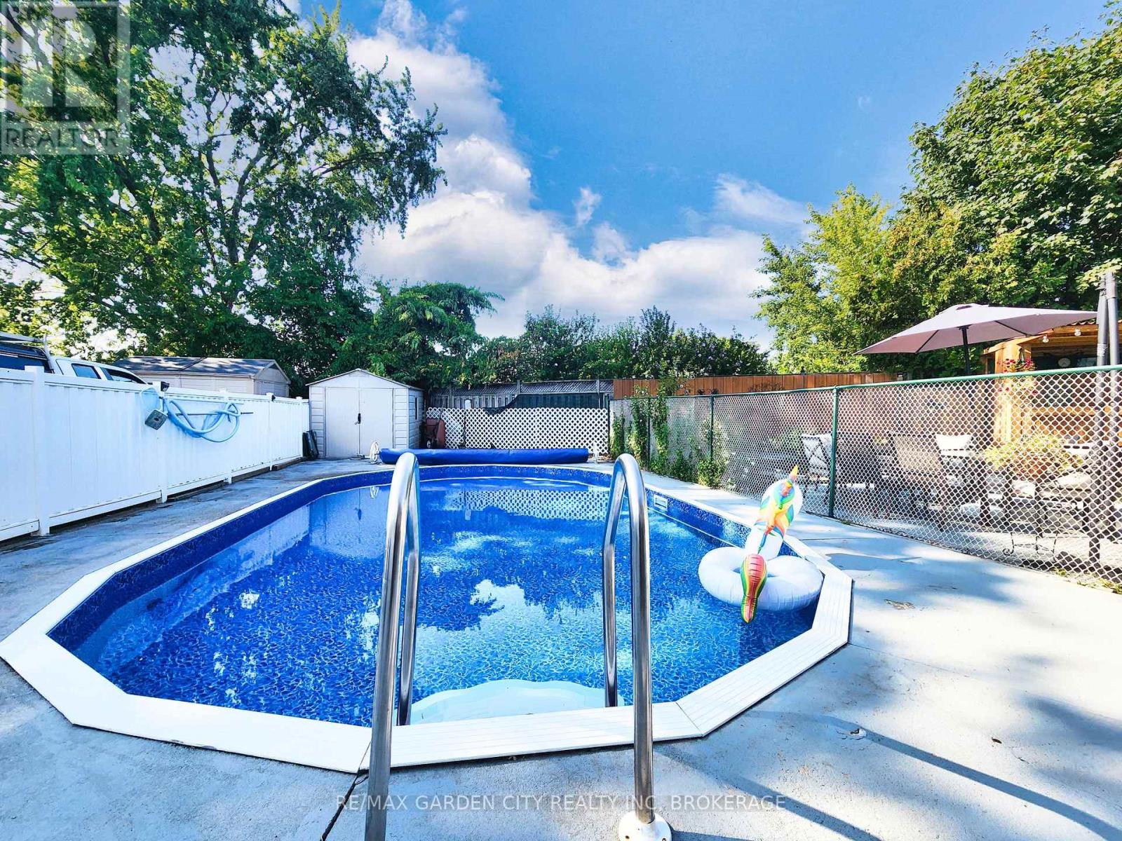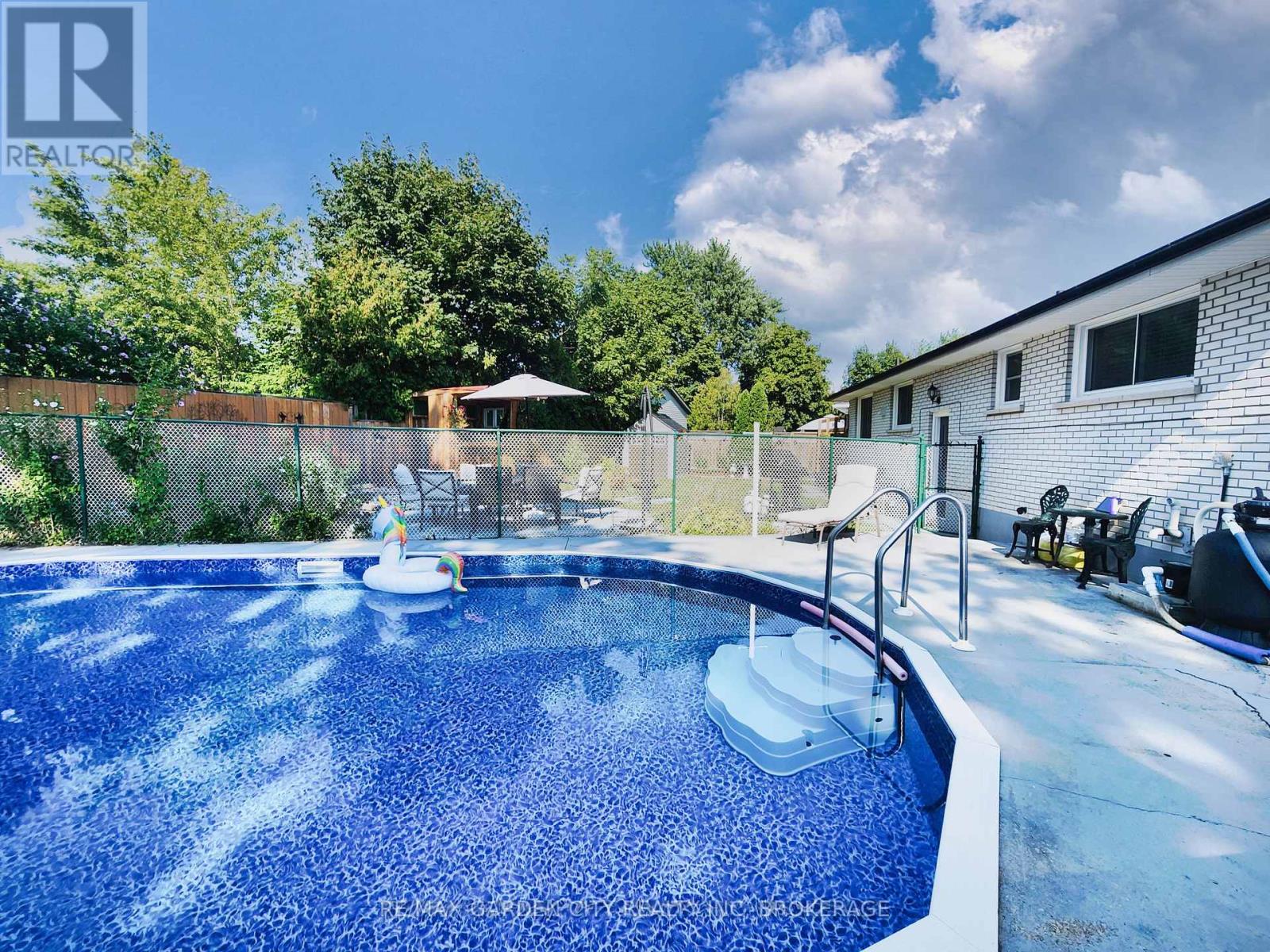 Welcome to this stunning 4-bed, 3-bath bungalow nestled in the highly sought-after North End location on quiet cul-de-sac. Beautifully updated top to bottom with fully fenced yard & separately fenced in ground pool with new liner. Once inside, you realize there is absolutely nothing to do but move in. Main floor features 3 bedrooms, full 4 piece bathroom modern kitchen with maple cabinetry and separate dining & living room with bay window. It doesn't end there, downstairs is newly finished with beautiful family room featuring electric fireplace, and bar area. Laundry and 3-piece bathroom are located conveniently at the bottom of the stairs. Strategically located at the other end is a beautiful large bedroom with walk-in closet and 3-piece en-suite along with egress window, creating a bright private space. New HE Gas Furnace 2025. Plenty of storage too under the stairs and in the furnace room. ** This is a linked property.** (id:51158)