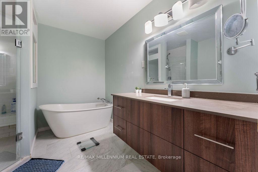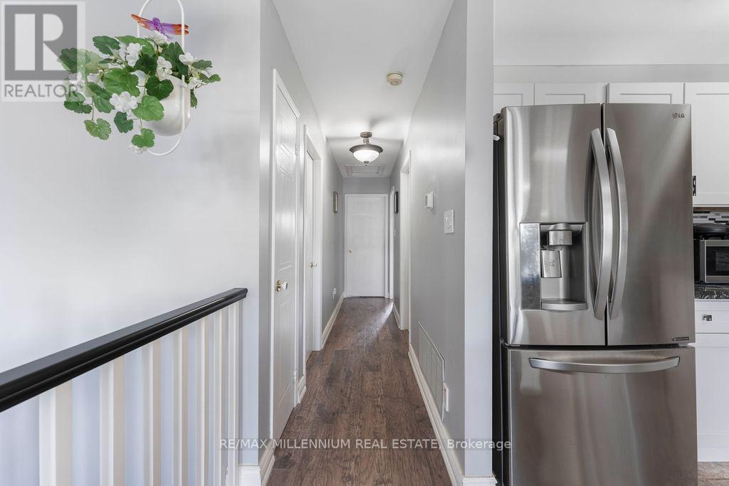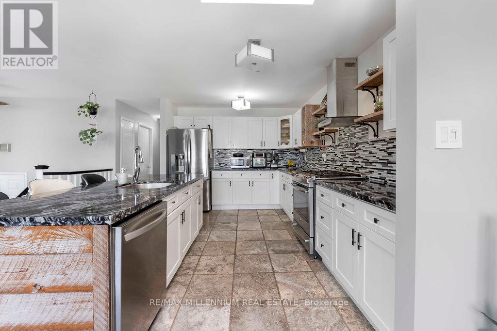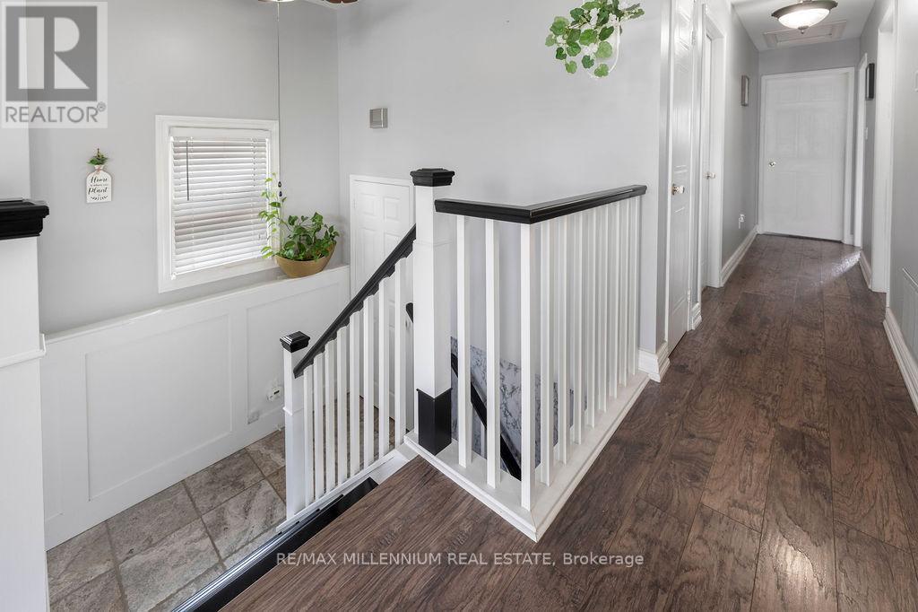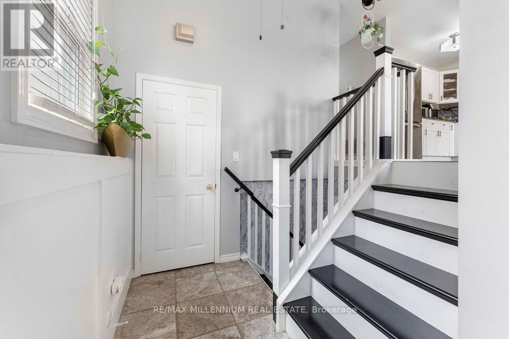 This stunning custom-designed home with walk-out lower level 1 bedroom suite offers exceptional curb appeal and a thoughtfully renovated interior with modern upgrades throughout. Located in highly desirable Courtice neighbourhood, the property backs directly onto serene parkland, providing privacy and a beautiful natural backdrop.The main level features an open-concept living and dining area with wide plank laminate flooring, an elegant remodelled staircase, and an inviting foyer accented with designer wall details and travertine stone flooring. The fully updated kitchen boasts travertine tile floors a skylight, stylish backsplash, granite countertops, a centre island, and a breakfast bar-perfect for entertaining and family gatherings. The spacious primary bedroom includes a semi-ensuite bath and a generous closet.The fully finished walk-out lower level is another world in itself and offers a bright Living room with a cozy fireplace and above-grade windows, an additional bedroom, a full bathroom and a small kitchen. There is a separate entrance to the walkout apartment on the above ground lower level with a great rental potential.Exterior highlights include a private, fenced backyard with gate access to the park, a large deck with hot tub, new insulated garage doors, a widened driveway, and a double-car garage.Some recent renovations include a brand new roof with 15 years warranty, full bathroom remodelling (in the walkout unit) and new washer and dryer.Priced to sell. ** This is a linked property.** (id:51158)