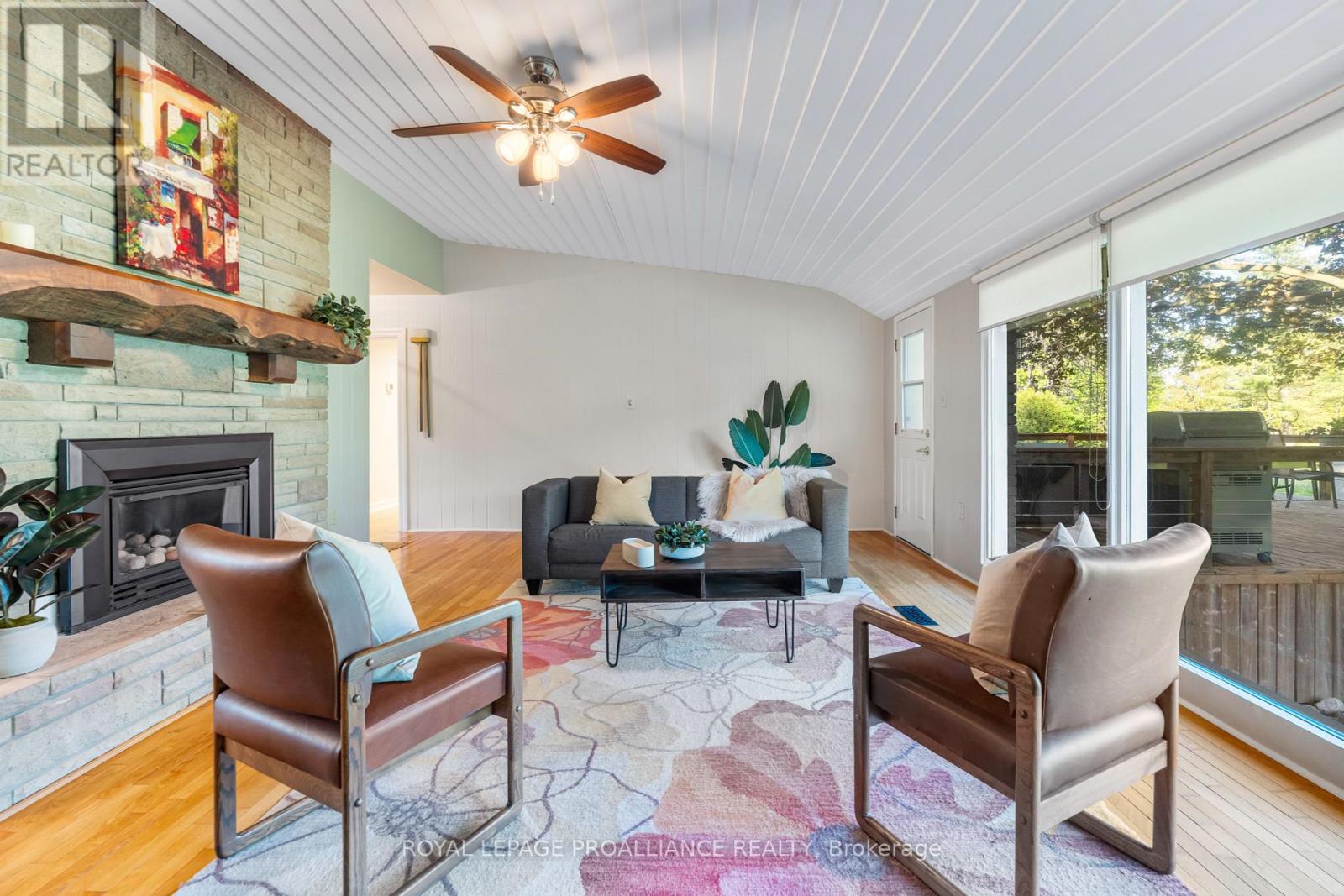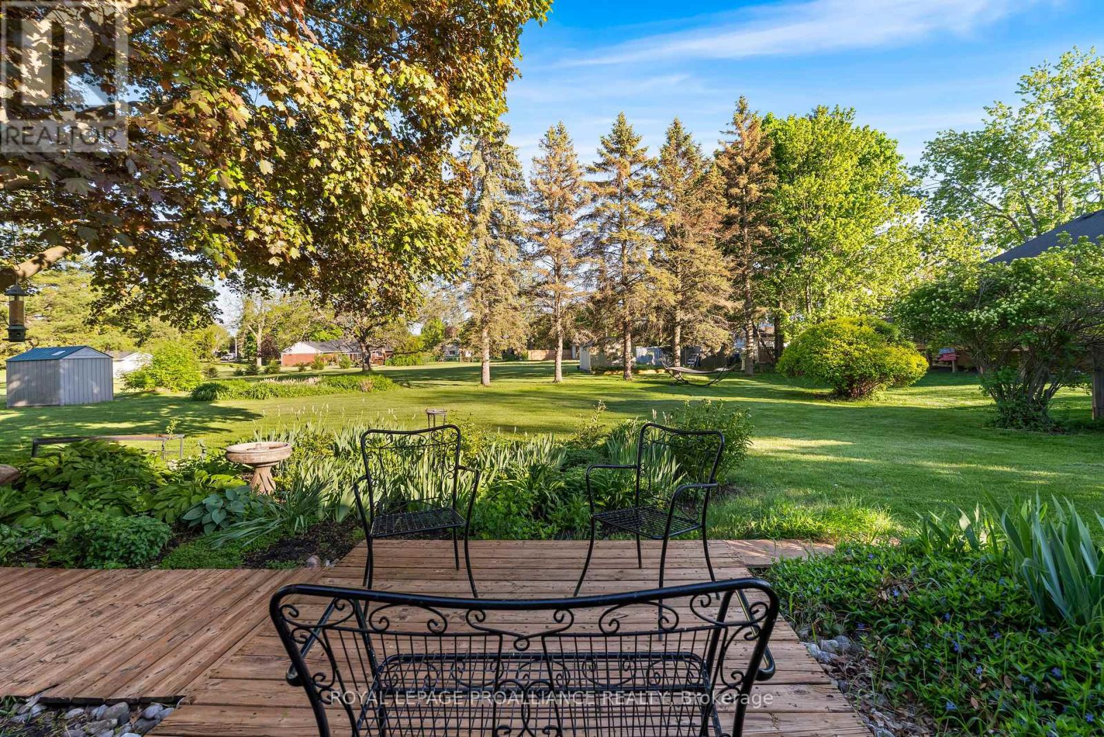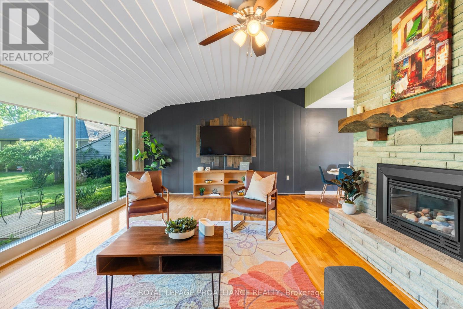 Stately bungalow nestled on a generous lot in a prime west end location. This elegant one-level home offers barrier-reduced living with thoughtfully designed accessibility features, ensuring ease of access both inside and out. The sun-filled living room boasts floor to ceiling windows, a vaulted ceiling, gleaming hardwood floors, and a cozy gas fireplace with a custom wood mantel. Enjoy seamless indoor-outdoor living with a spacious deck and patio set beneath the canopy of mature trees-perfect for bird watching or relaxing summer evenings. Large garage with walk-in to main level and a finished recreation room in the basement. A rare opportunity to own a beautifully maintained home in a sought-after neighborhood. (id:51158)