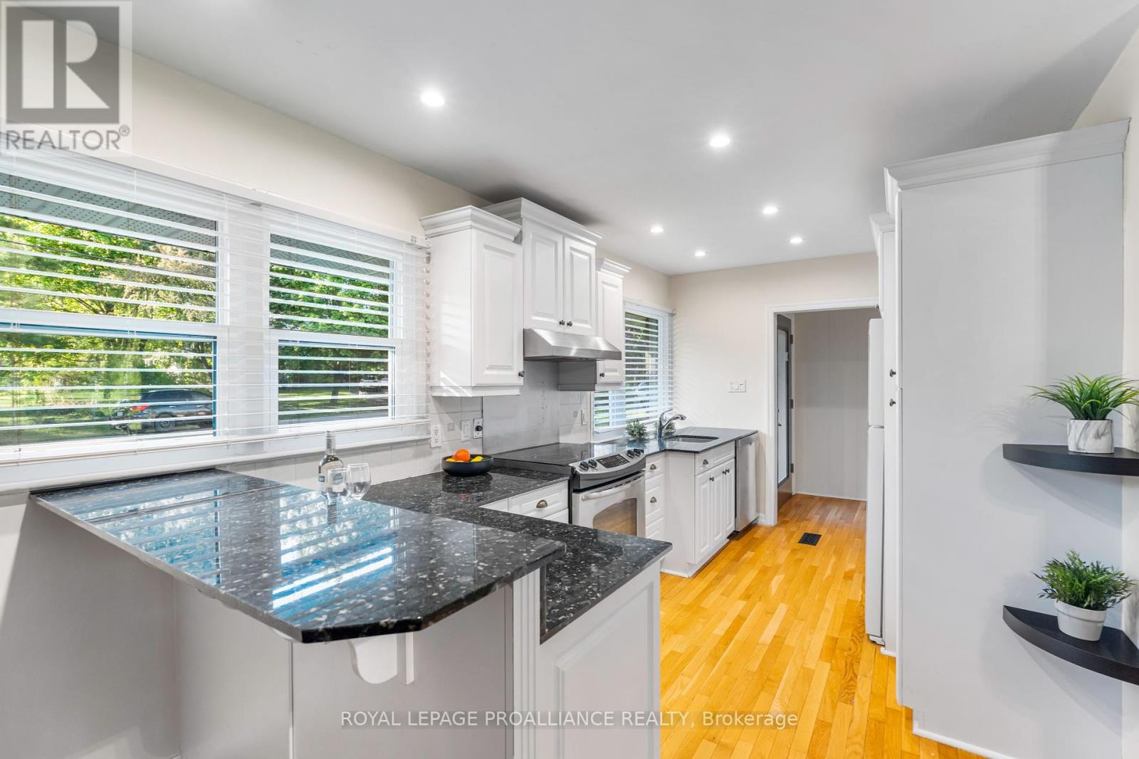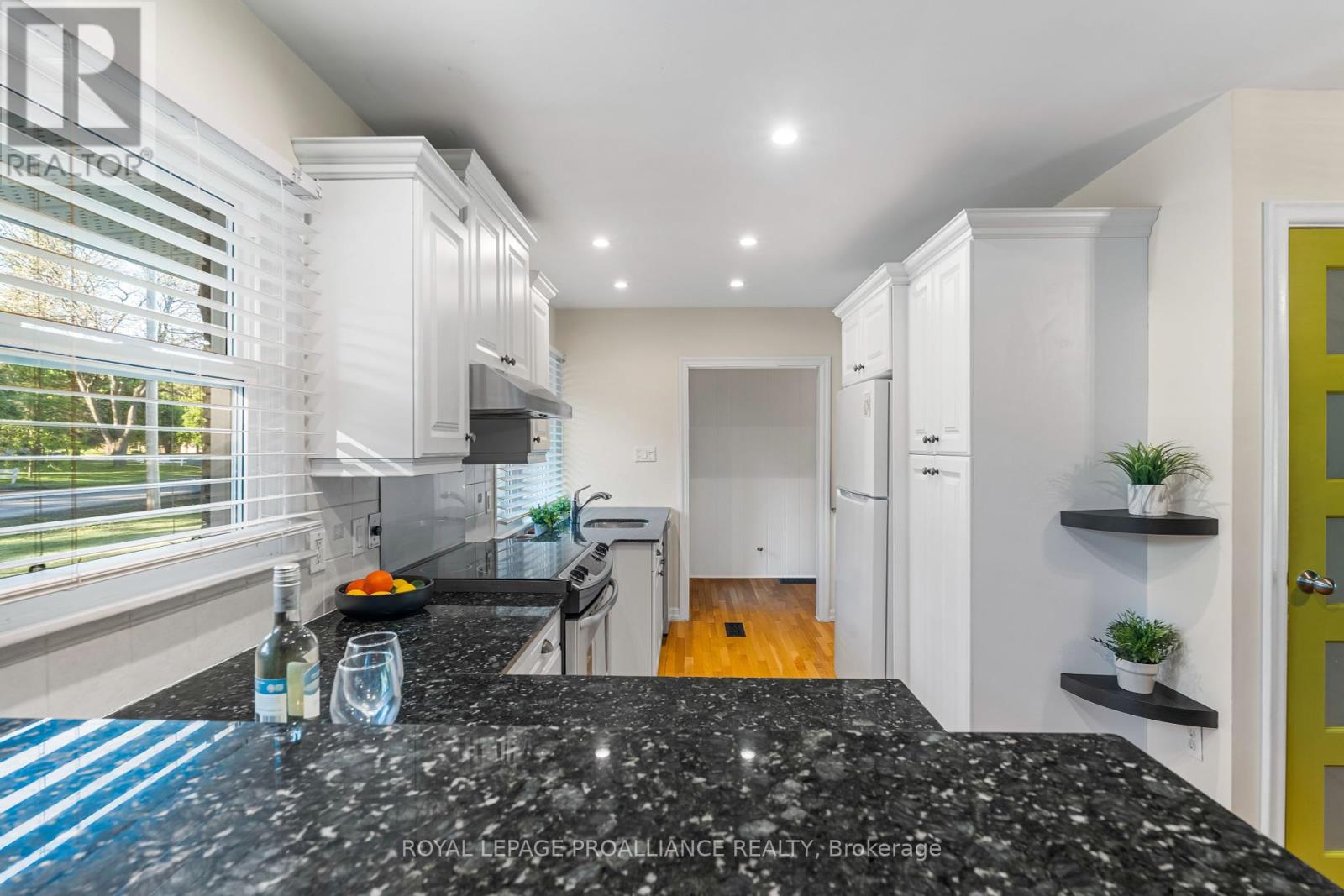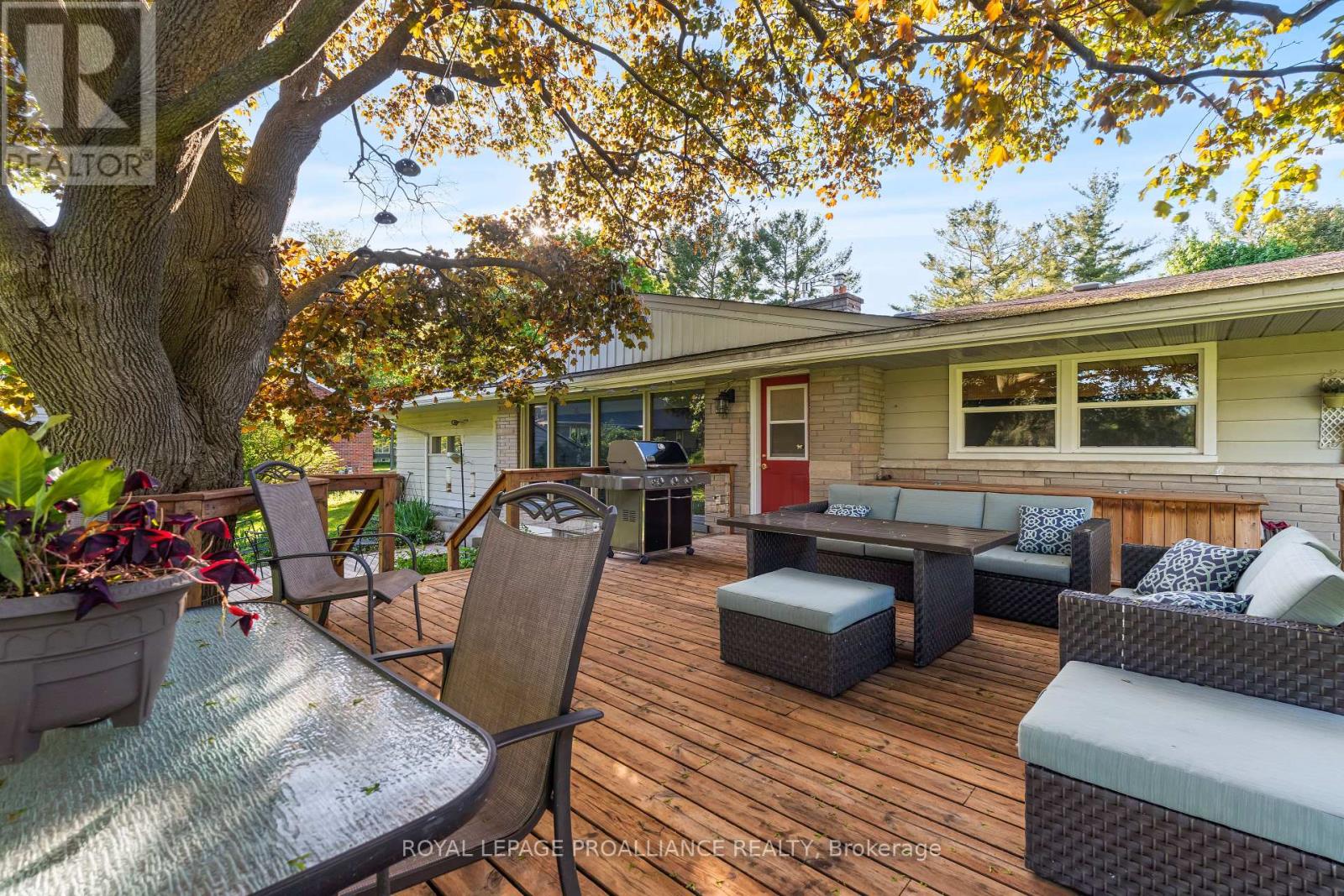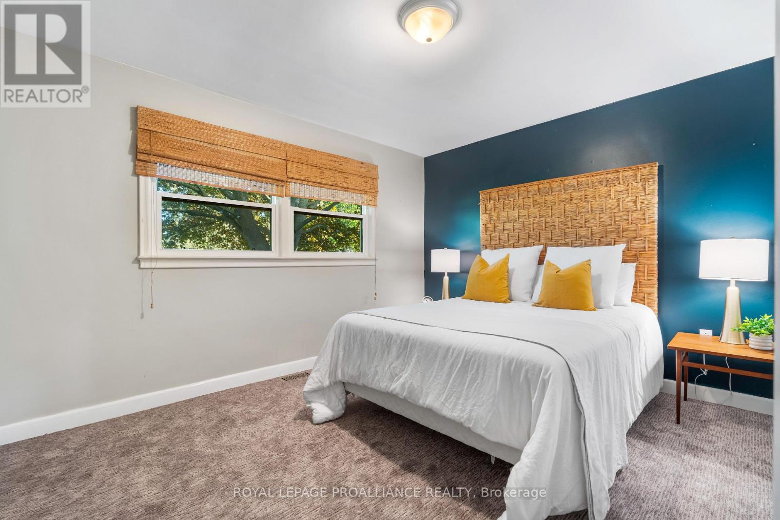 Stately bungalow nestled on a generous lot in a prime west end location. This elegant one-level home offers barrier-reduced living with thoughtfully designed accessibility features, ensuring ease of access both inside and out. The sun-filled living room boasts floor to ceiling windows, a vaulted ceiling, gleaming hardwood floors, and a cozy gas fireplace with a custom wood mantel. Enjoy seamless indoor-outdoor living with a spacious deck and patio set beneath the canopy of mature trees-perfect for bird watching or relaxing summer evenings. Large garage with walk-in to main level and a finished recreation room in the basement. A rare opportunity to own a beautifully maintained home in a sought-after neighborhood. (id:51158)
