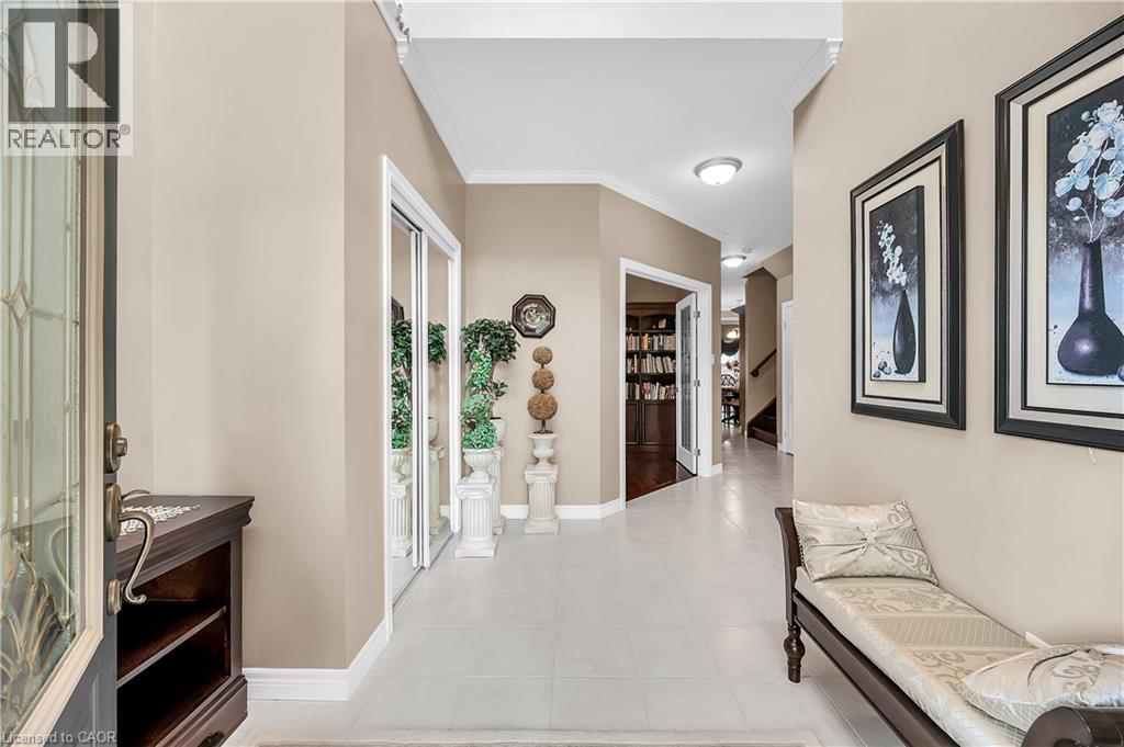Gorgeous Executive Home in Prime Hamilton Mountain Location!Welcome to this stunning 2,500 sq. ft. executive home situated on a quiet cul-de-sac in one of Hamilton Mountains most desirable neighborhoods. Featuring a modern open-concept layout with 9 ft. ceilings, this thoughtfully designed 4-bedroom, 3-bathroom home offers both luxury and practicality for todays family living. Step into a spacious foyer that flows seamlessly into the main living area. The inviting living room is centered around a cozy fireplace with custom built-in storage, accented by beautiful hardwood floors and multiple windows with plantation shutters for optimal light control. A striking coffered ceiling adds architectural elegance and enhances the airy, open feel. The chef-inspired kitchen is perfect for entertaining, featuring rich walnut cabinetry, a walk-in pantry, and built-in wine storage. A separate dining room provides an ideal setting for formal meals, while a dedicated main-floor office offers flexibility for remote work or study. Upstairs, you'll find generously sized bedrooms and a luxurious primary suite complete with a walk-in closet and a 4-piece ensuite featuring a corner jacuzzi tub your own private retreat. Outside, enjoy a mix of comfort and function with a covered deck, concrete porch, and a large exposed aggregate driveway leading to a double garage. A well-built garden shed offers additional storage or workshop space. Located in a family-friendly community with easy highway access, this home is close to top-rated schools, parks, shopping, and all essential amenities. A must-see home! (id:51158)