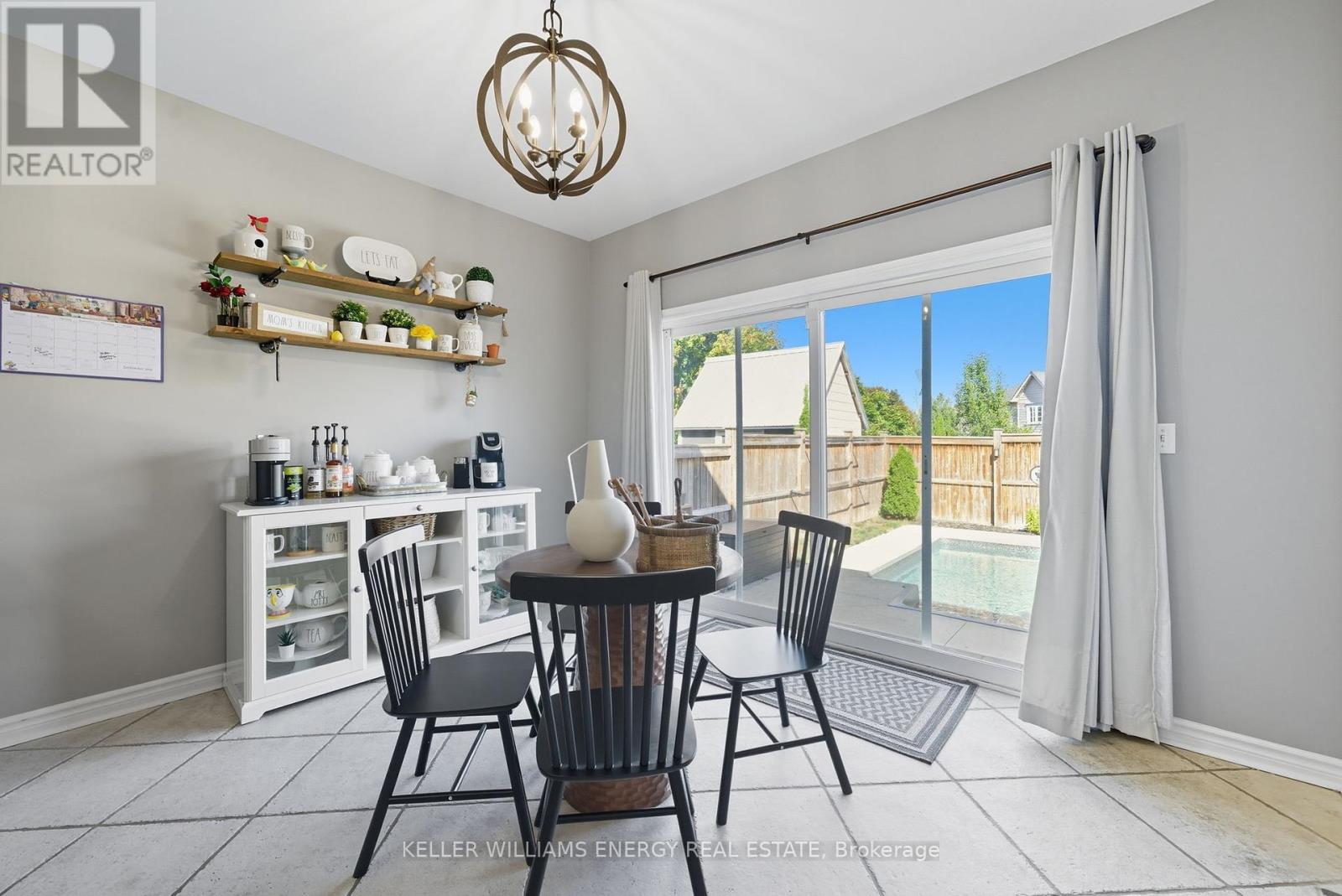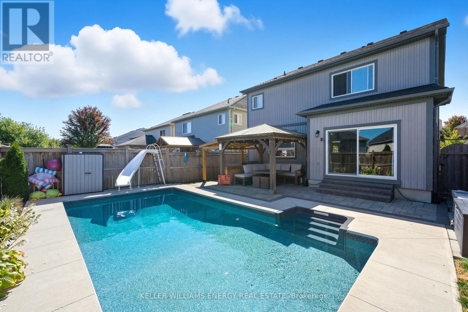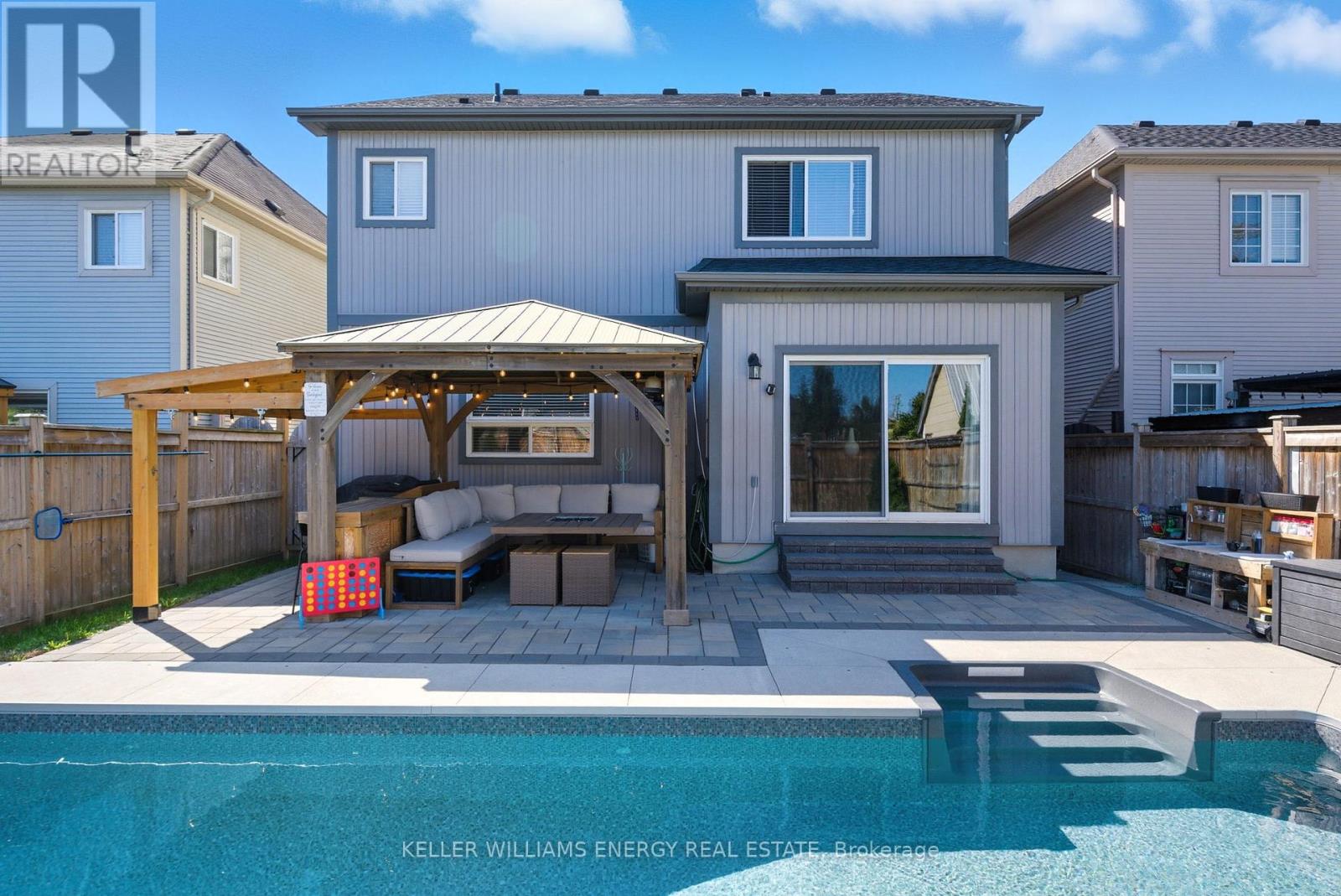 Welcome to this beautifully maintained detached 2-storey home, offering the perfect blend of comfort, style, and functionality. Located in the Bowmanville neighbourhood, this spacious home features 4+1 bedrooms, 3 bathrooms, and a fully finished basement, ideal for growing families or entertaining guests. Step inside to an open-concept main floor with a bright and airy layout. The kitchen is a true highlight, featuring a breakfast bar, stainless steel appliances, and an eat-in area that flows seamlessly into the living room. Upstairs, you'll find four bedrooms, including a luxurious primary suite with a 5-piece ensuite bath. One of the secondary bedrooms features a private balcony perfect for morning coffee or evening relaxation. For added convenience, the laundry is located on the upper level. The finished basement offers additional living space ideal for a home office, recreation room, and/or guest suite. There is a rough in for a bathroom in the basement. Enjoy your own private backyard retreat complete with an in-ground pool, built-in outdoor kitchen, and a charming gazebo perfect for entertaining and family gatherings. Don't miss your chance to own this incredible home in a family-friendly community. (id:51158)