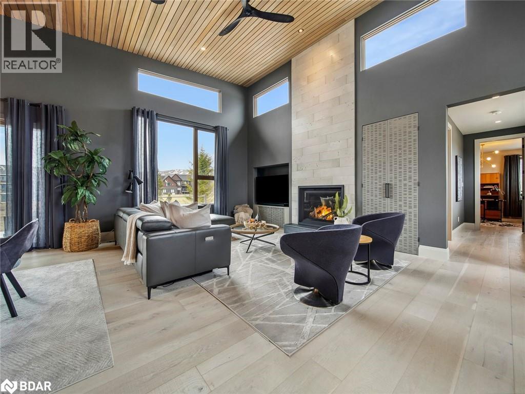 MODERN, ORGANIC & TIMELESS CUSTOM-BUILT BUNGALOW AVAILABLE FOR SEASONAL LEASE FEATURING OVER 5,500 SQFT OF COMFORT-DRIVEN LIVING SPACE! Located in the equally coveted and convenient Windrose Estates, this bungalow for lease from December to March is just a short distance from all area amenities, including Osler Bluffs, Blue Mountain, and downtown Collingwood. Exceptional curb appeal with a triple-car garage and driveway parking for 12+ vehicles makes this residence as impressive on the outside as it is within. The open concept main level features a wood slat 12’-16’ vaulted ceiling, wide plank engineered oak flooring and oversized windows to take advantage of the natural light and escarpment views. Designed to gather in style with a European kitchen with built-in appliances and a separate coffee/wine bar, elevated grand piano lounge, integrated Elan entertainment system (14 zones/26 built-in speakers) and multiple walkouts to the 42’x14’ composite deck. Support your healthy and active lifestyle in the home gym, yoga studio, cedar/basswood glass-front HUUM sauna, 6-person hot tub, large music/games room, and with the bonus of an additional lower-level laundry/sports storage room for all your gear. After a long day of playing, cozy up in front of one of the three fireplaces and enjoy a movie in the theatre room, great room or with a book in the chill lounge. Plenty of space for a large family with 3+2 bedrooms (one currently used as a home office) and 3.5 bathrooms. Experience the ultimate seasonal retreat in this exceptional Windrose Estates #HomeToStay! (id:51158)