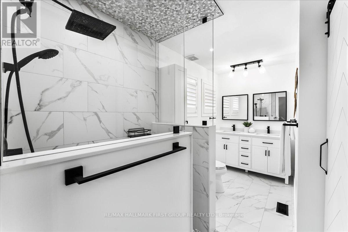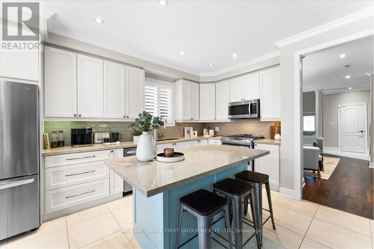 This beautifully updated all-brick family home is set on a quiet, highly desirable Brooklin street. The main floor is well laid out, with a separate living room and family room, a formal dining space accented with stylish wainscotting, 9-foot ceilings, elegant crown mouldings, pot lights, and California shutters. The renovated kitchen features a large centre island and a spacious breakfast area overlooking the beautiful backyard. Enjoy the convenience of main-floor laundry and direct access to the two-car garage. Upstairs, the spacious primary bedroom includes a newly renovated ensuite. The fully finished, open-concept basement with a 3-piece washroom provides excellent additional living space. The backyard is beautifully landscaped and highlighted by a four-year-old inground swimming pool. The home also offers parking for four cars on the driveway in addition to the two-car garage, and is just a short walk to great schools, parks, and everyday amenities. (id:51158)